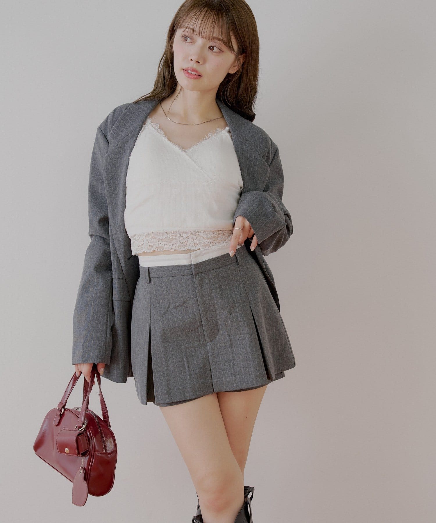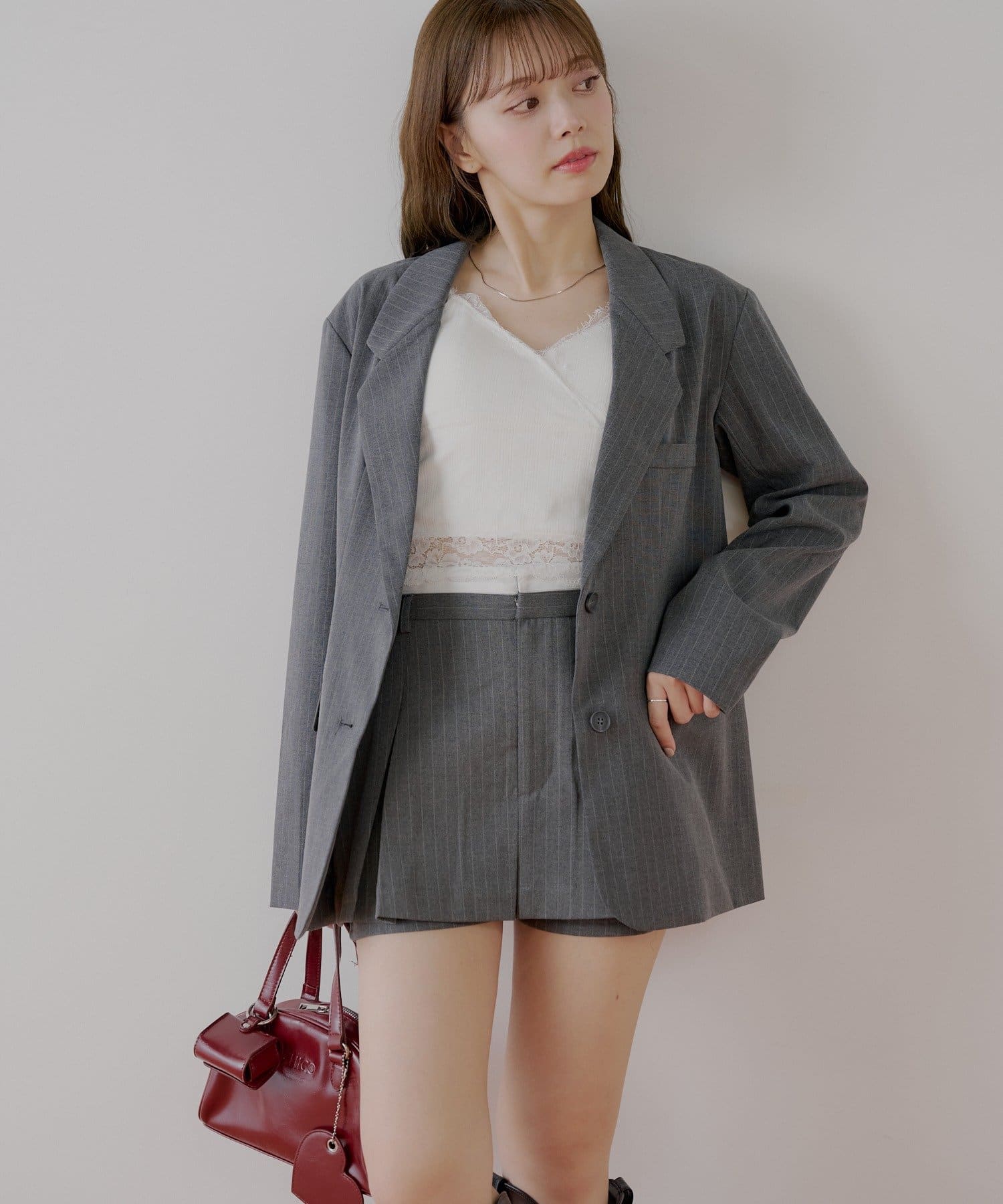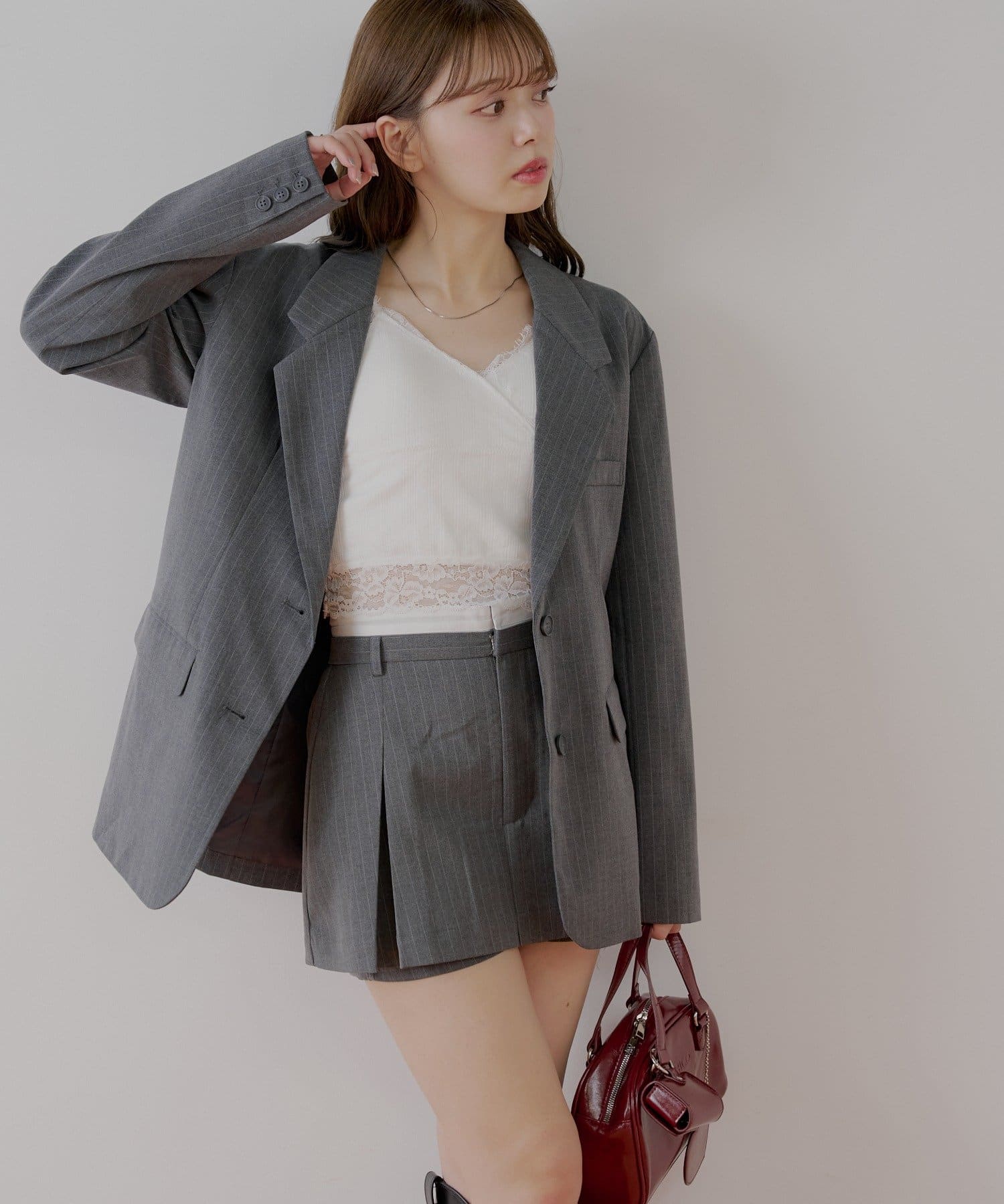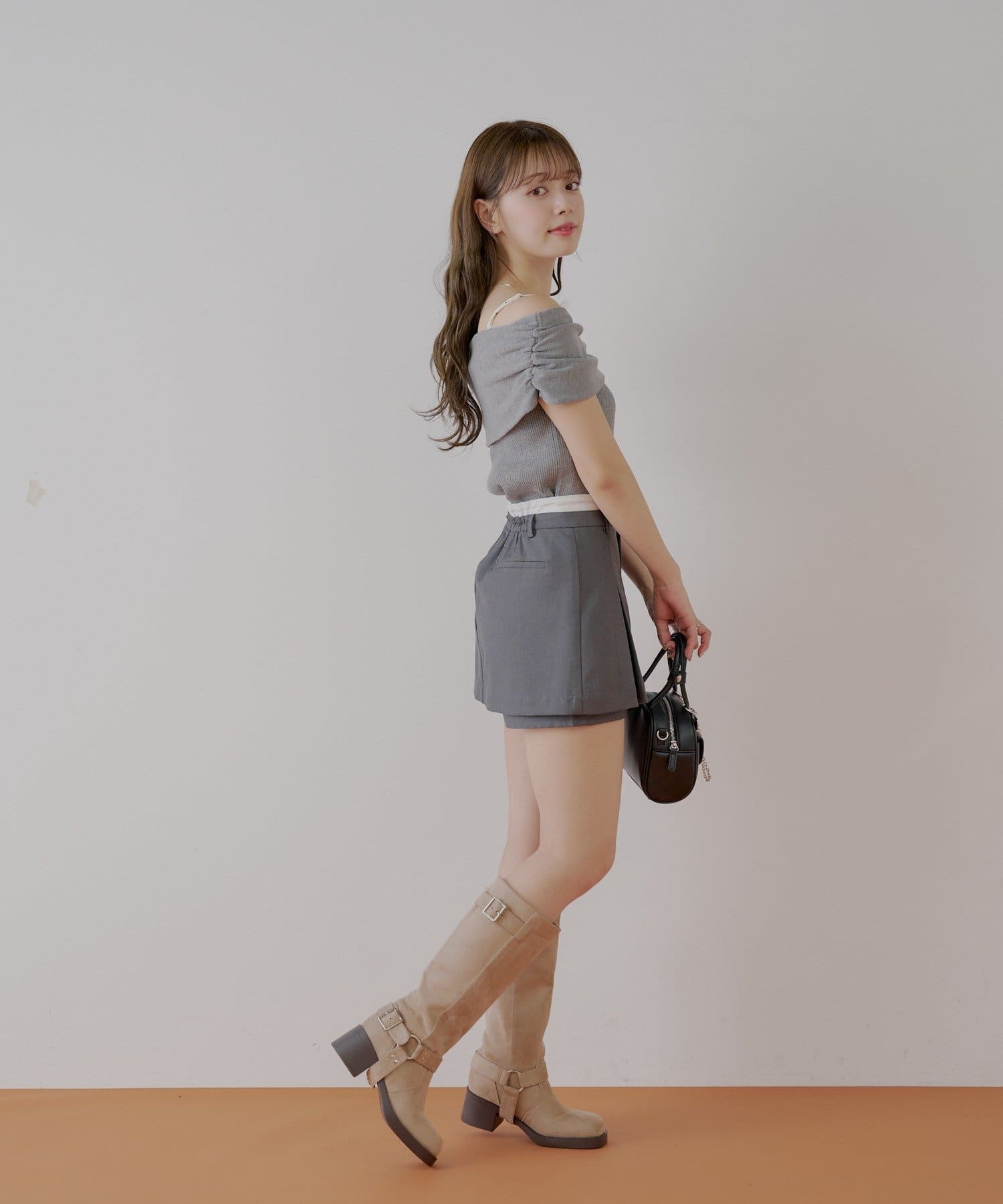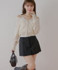 ・同素材のトップスと合わせてセットアップ風にして着るのもおすすめです。