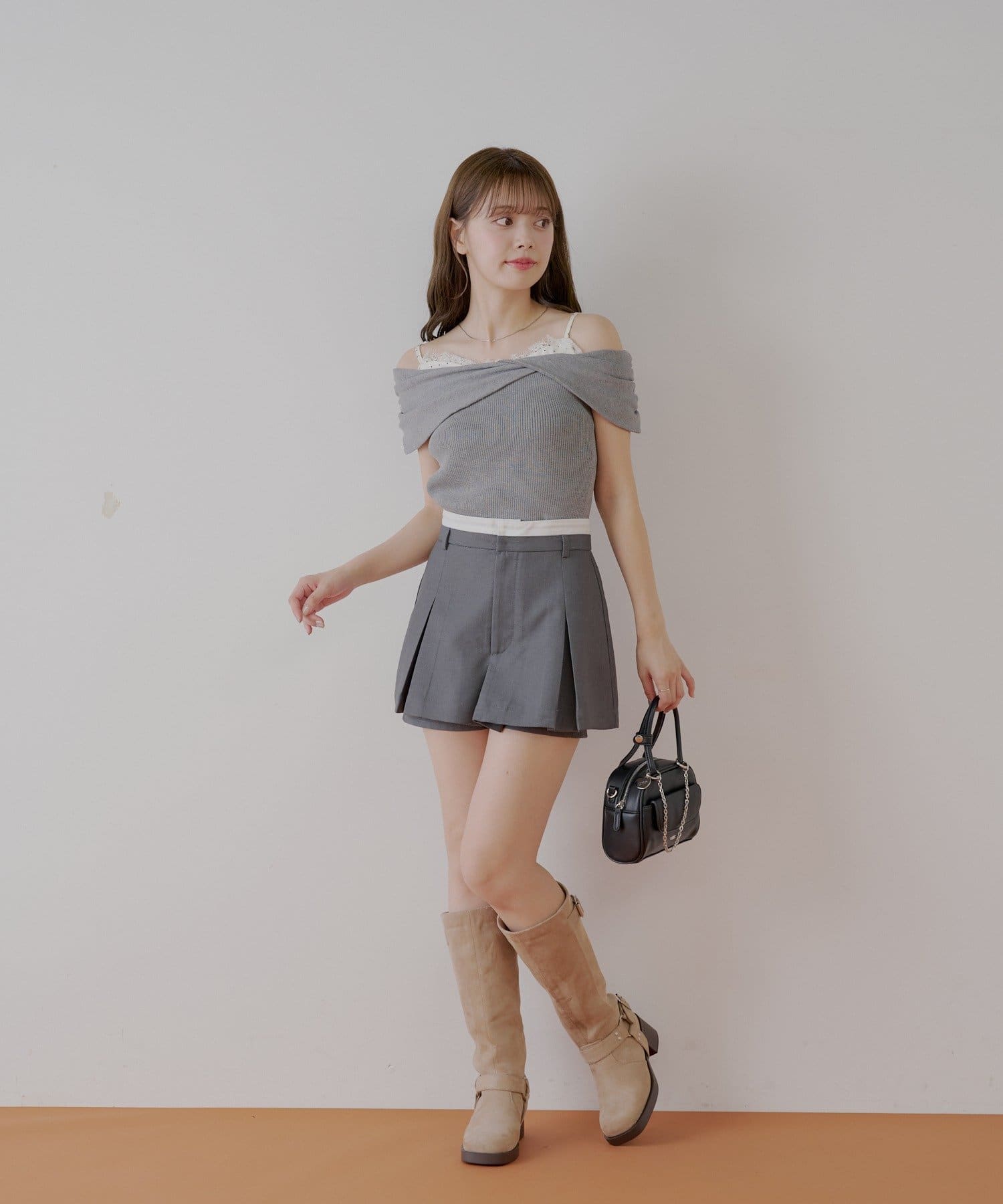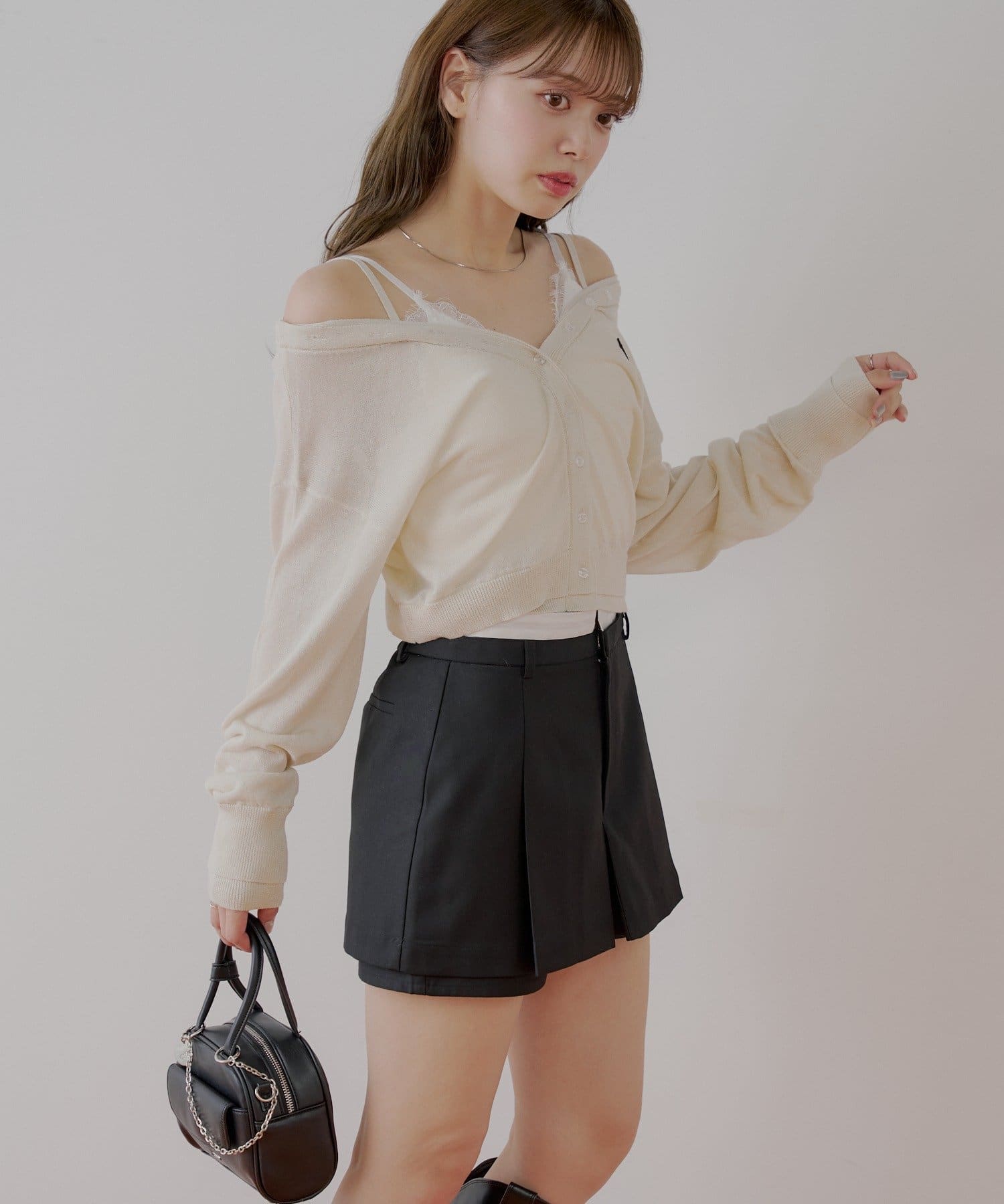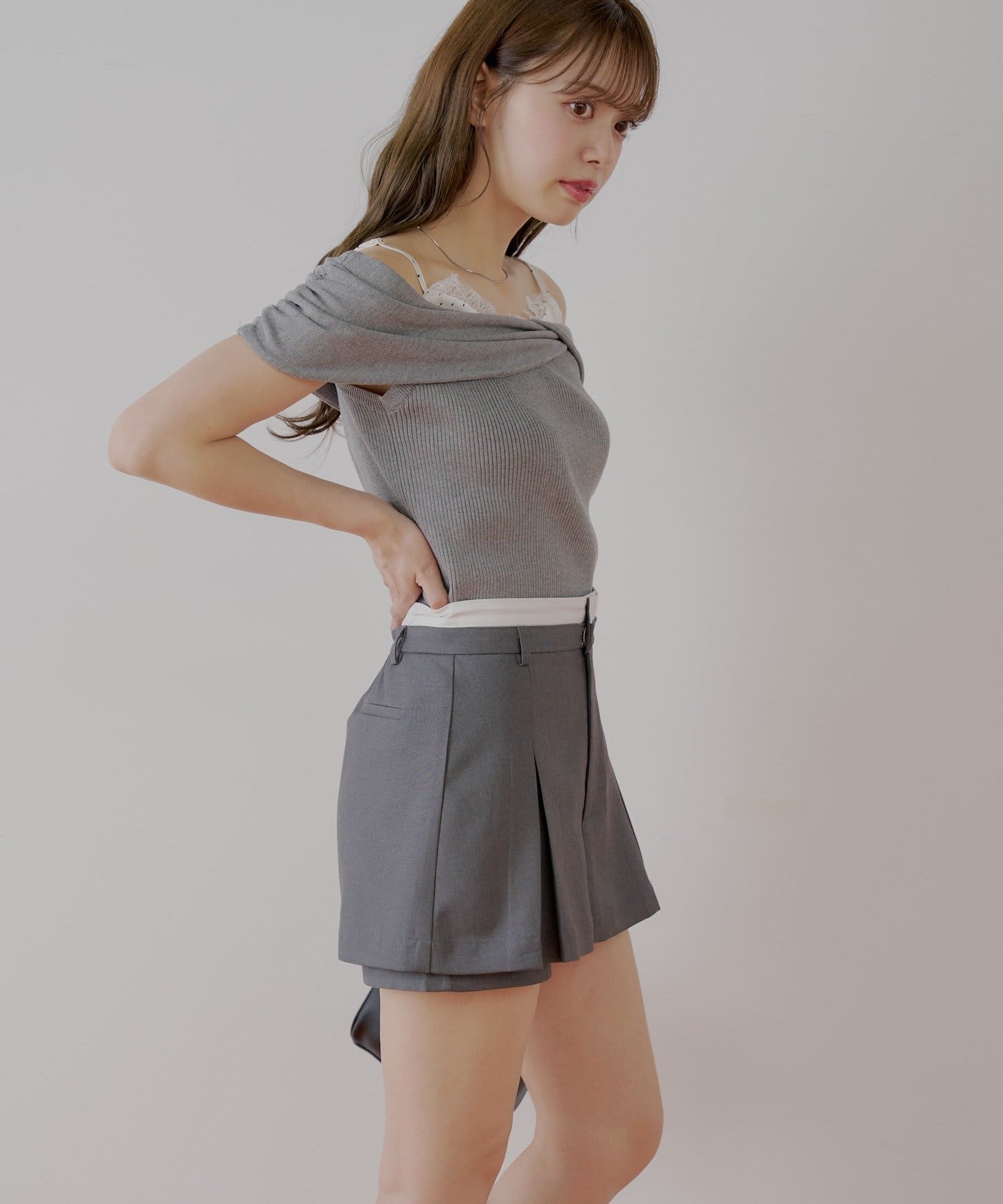 ・一枚でレイヤードが叶うボックスプリーツレイヤードスカパン。