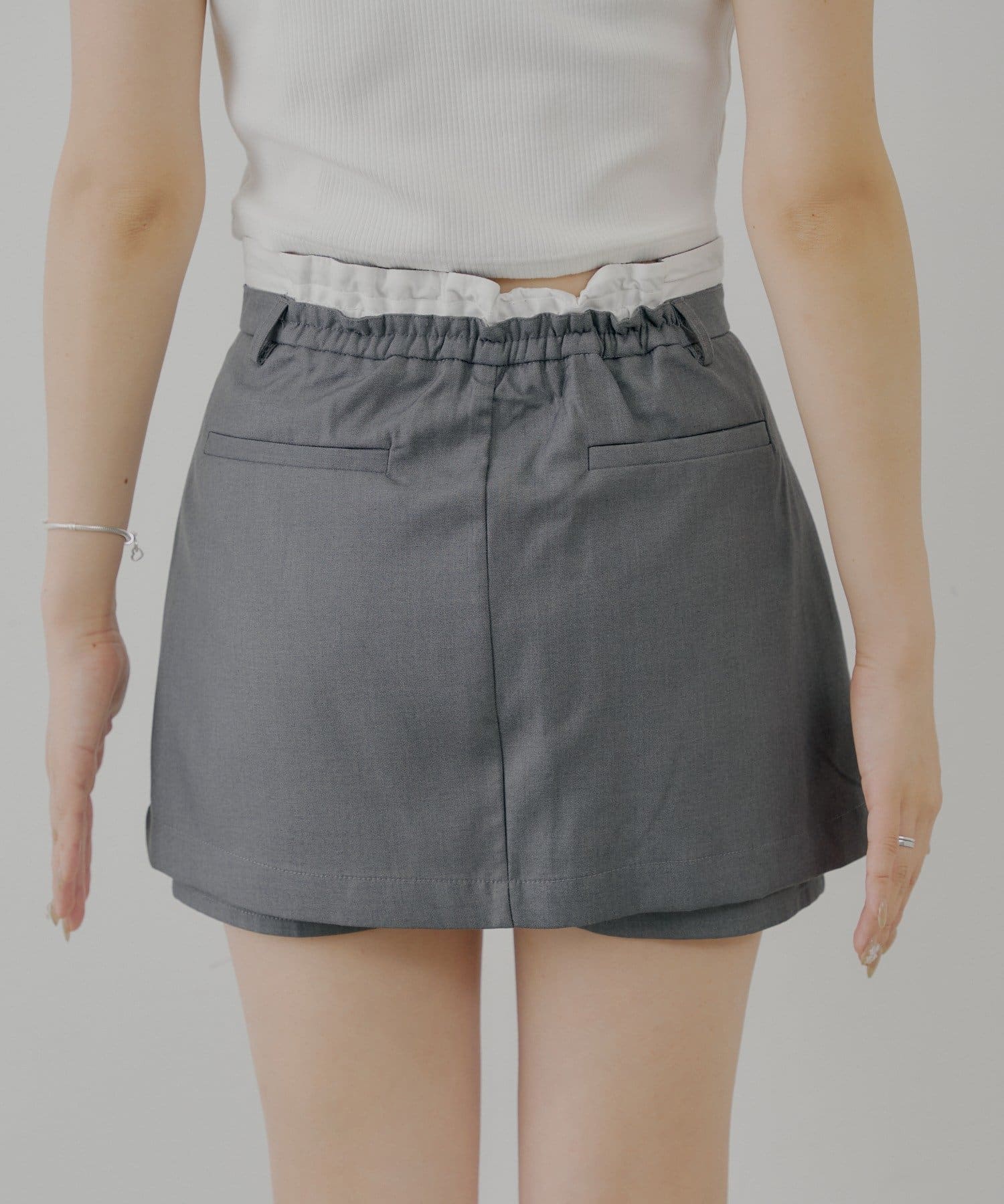 トレンドのレイヤードデザインが魅力のボックスプリーツレイヤードスカパン