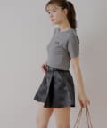 ・光沢感のあるサテン生地が、カジュアルながらも上品な印象を与えます。