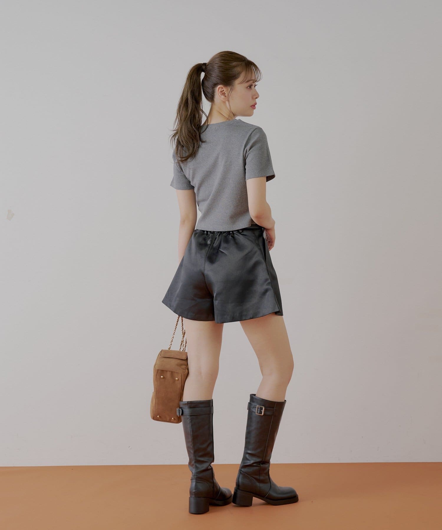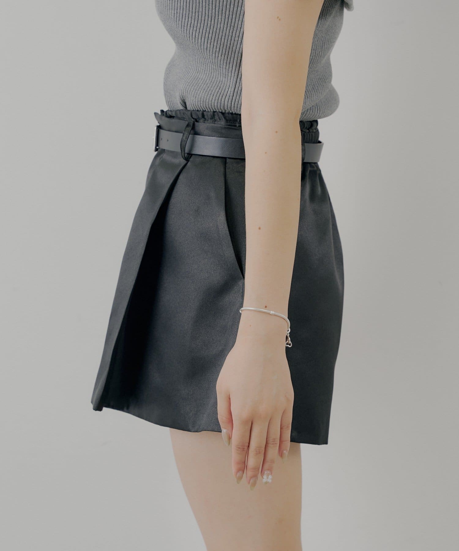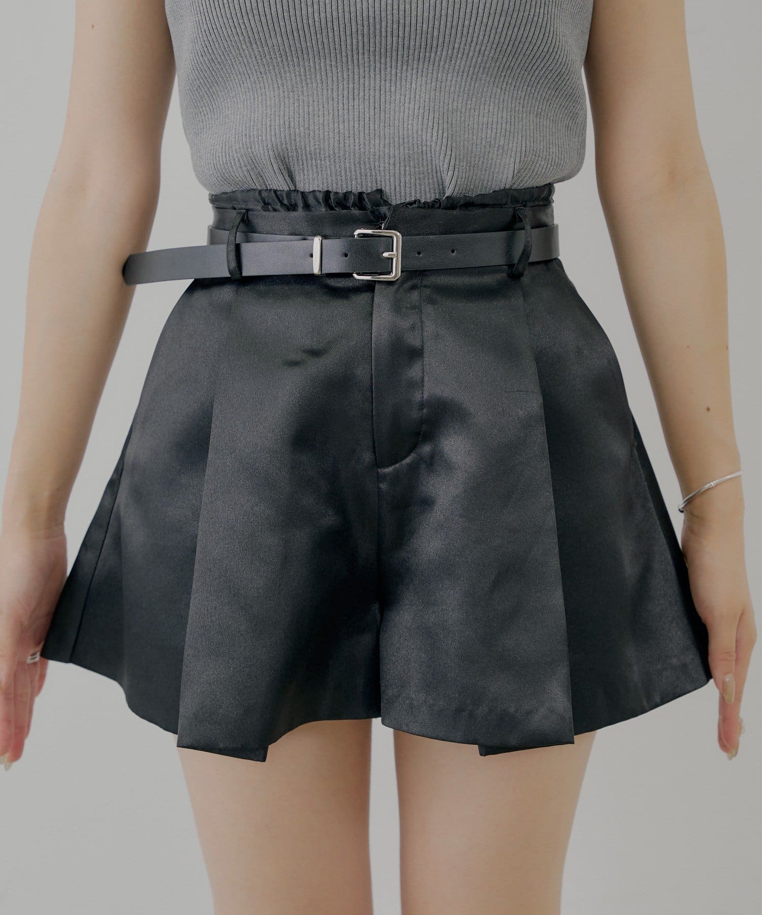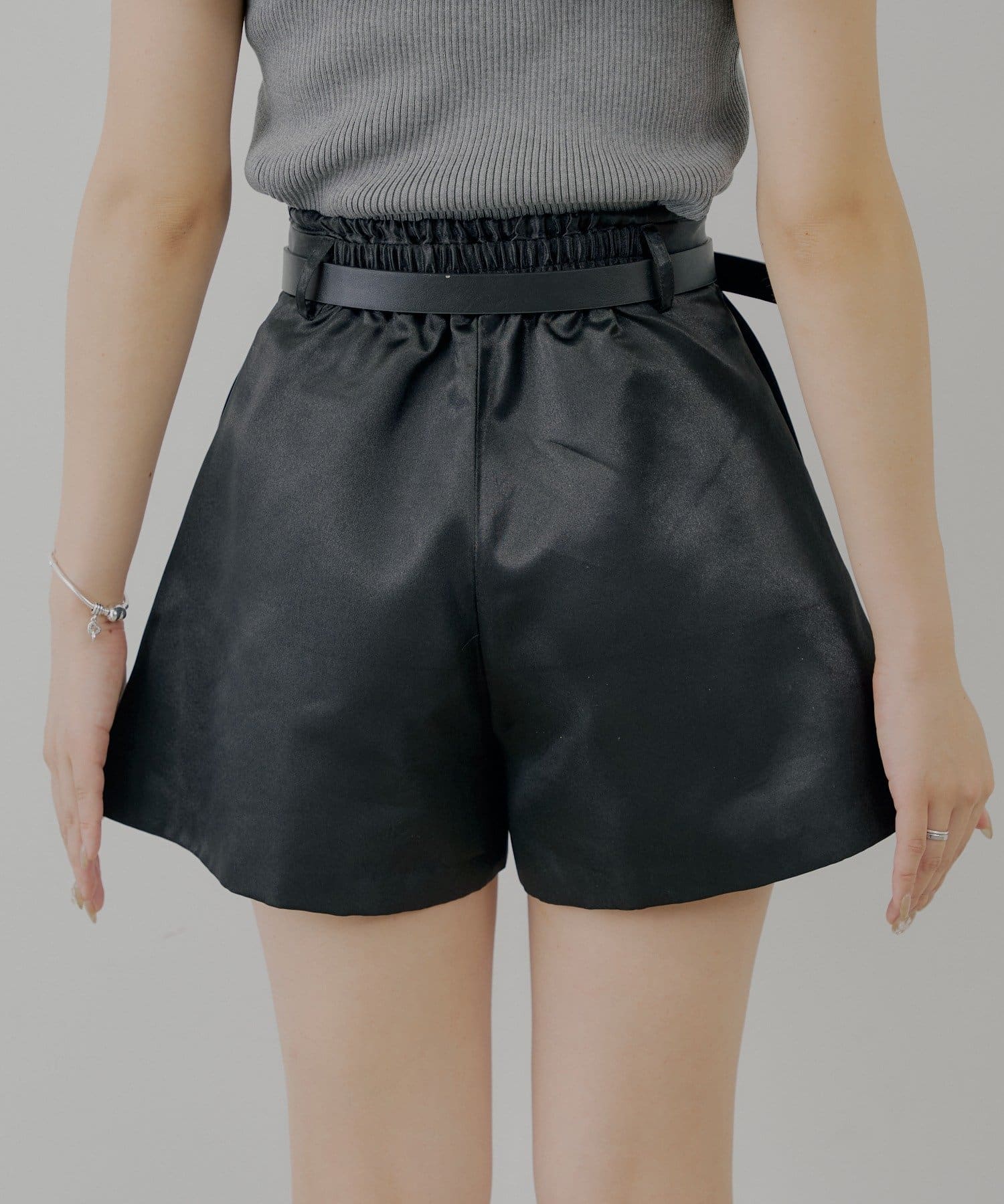 【Chico】ベルト付ボリュームサテンショートパンツ