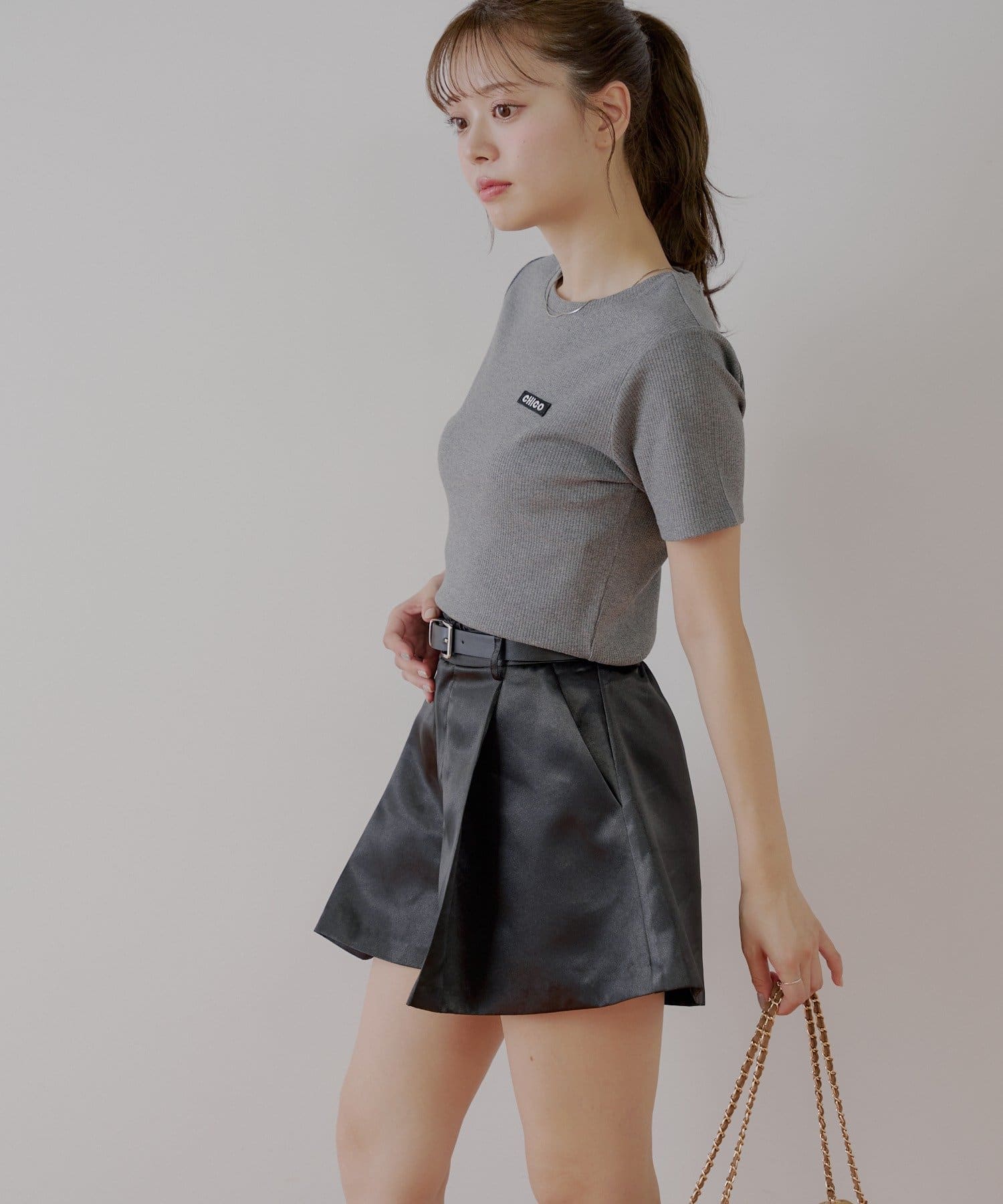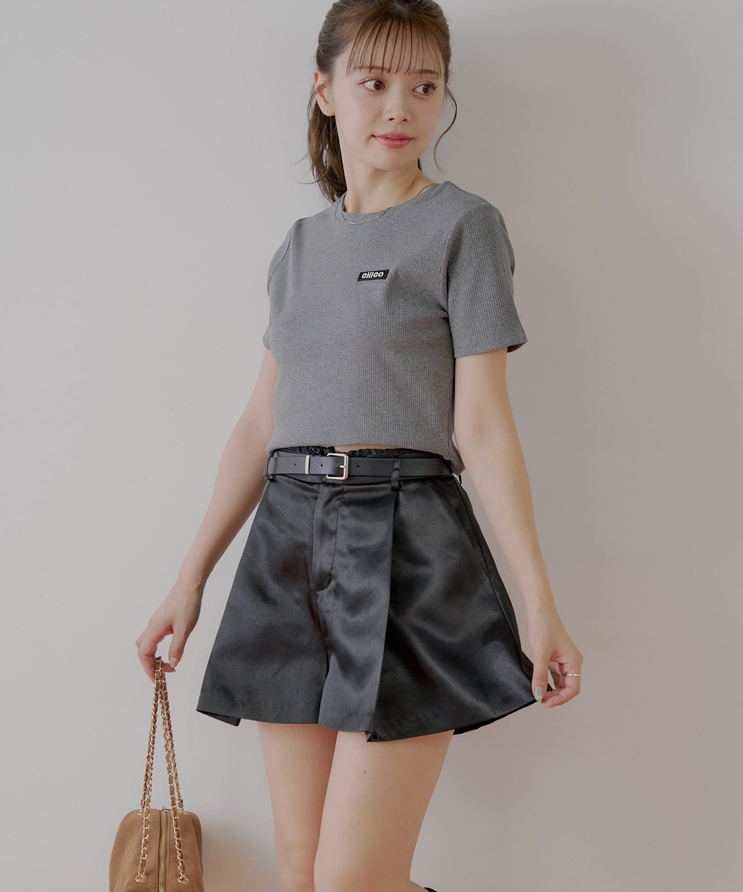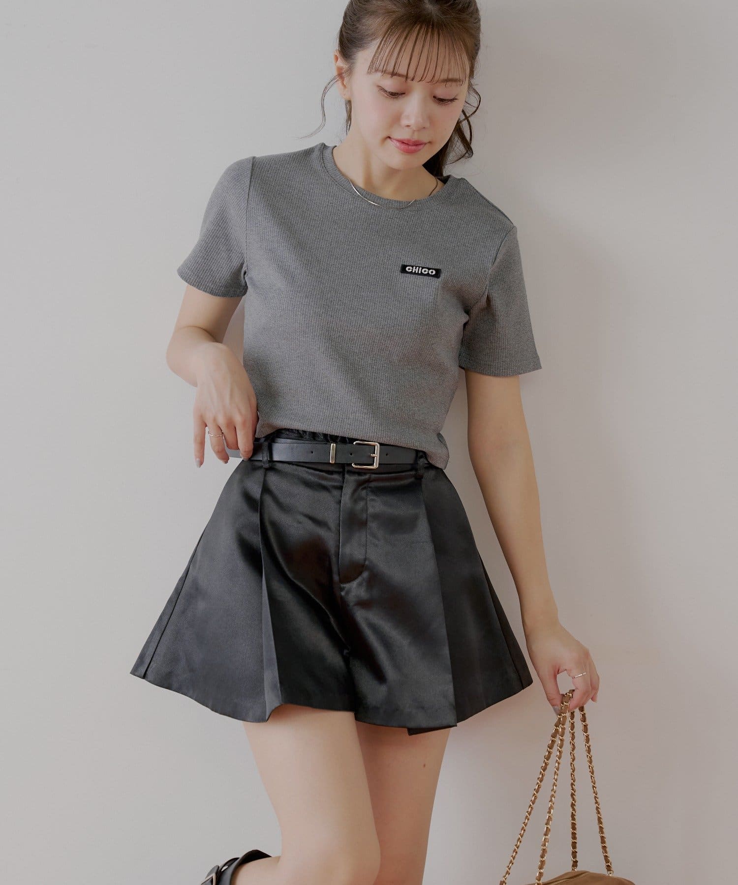 【Chico】ベルト付ボリュームサテンショートパンツ