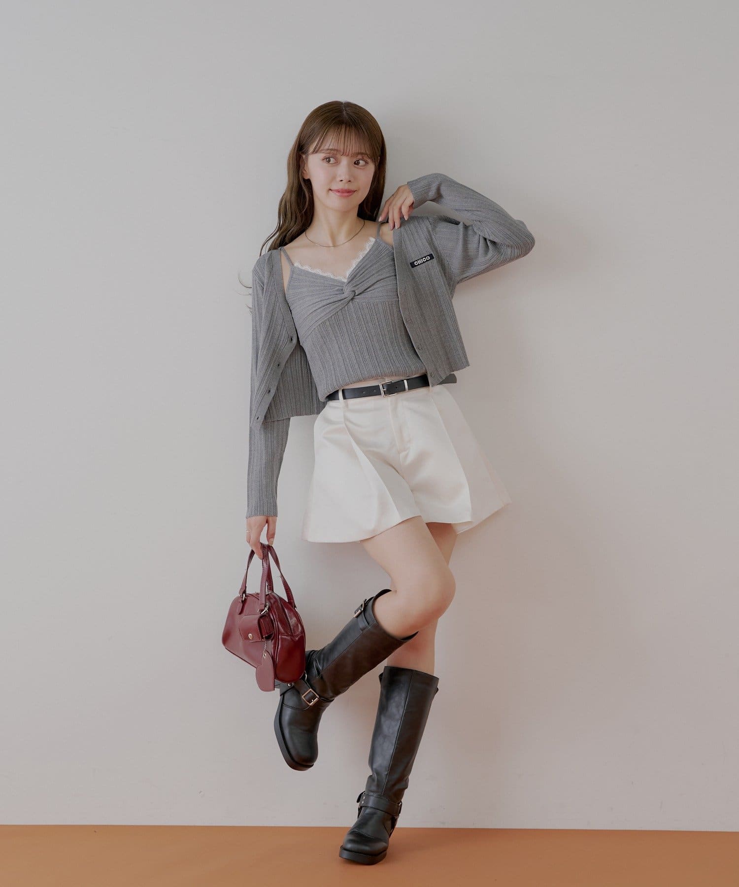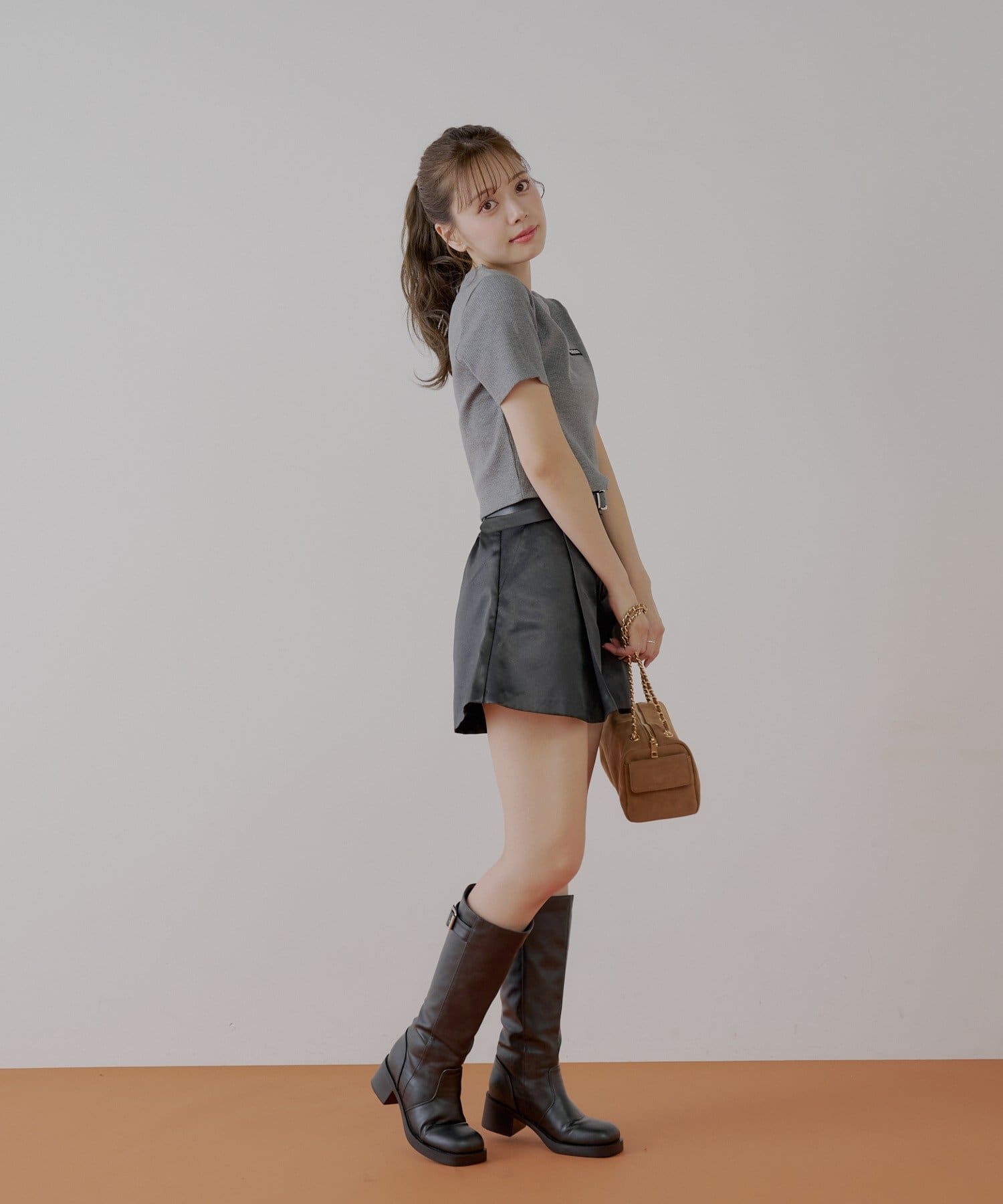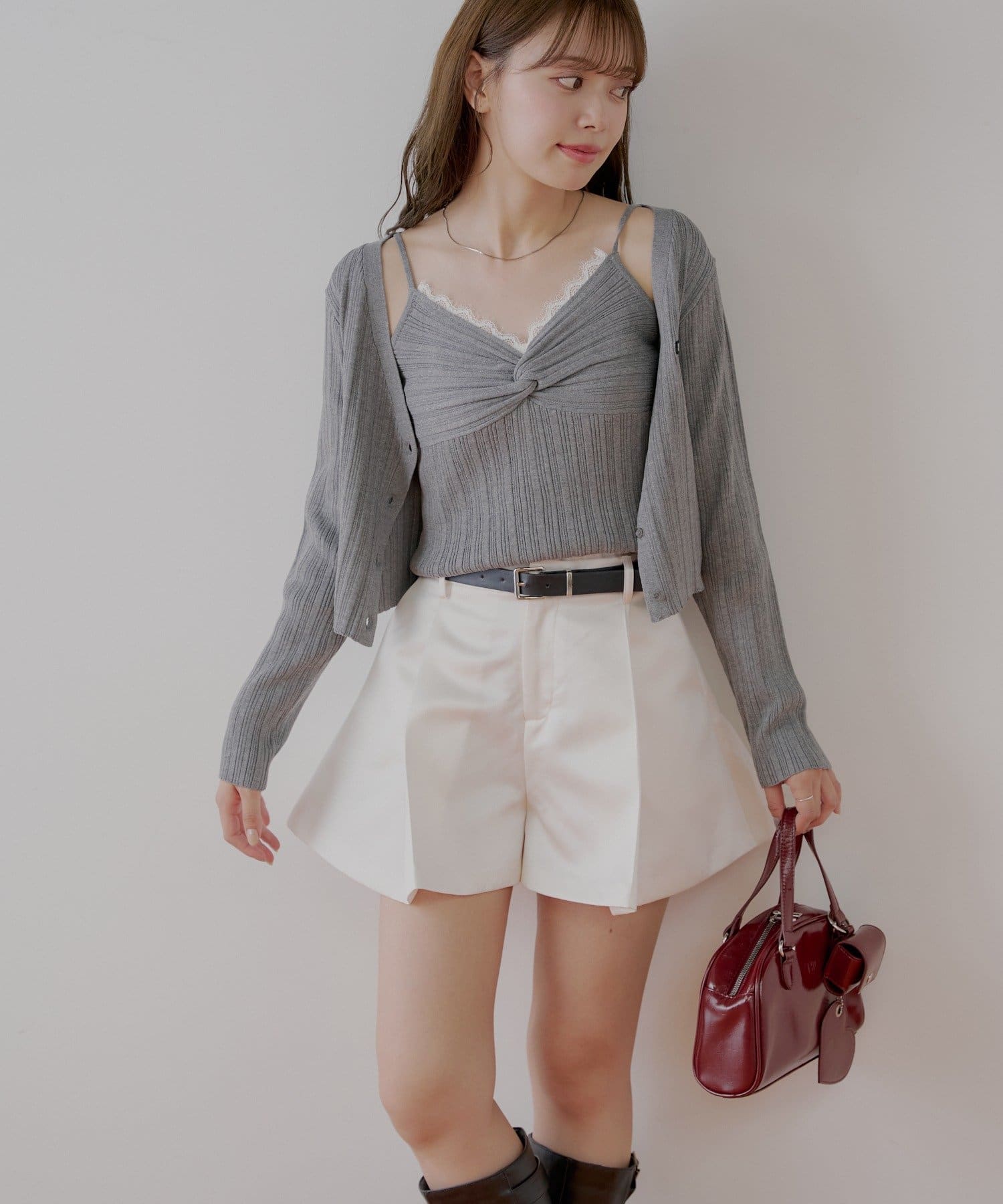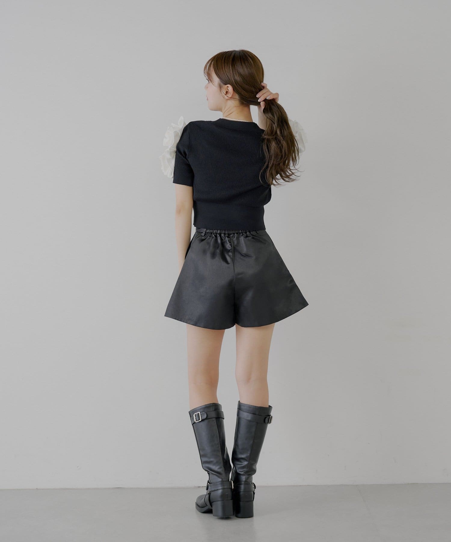 【Chico】ベルト付ボリュームサテンショートパンツ
