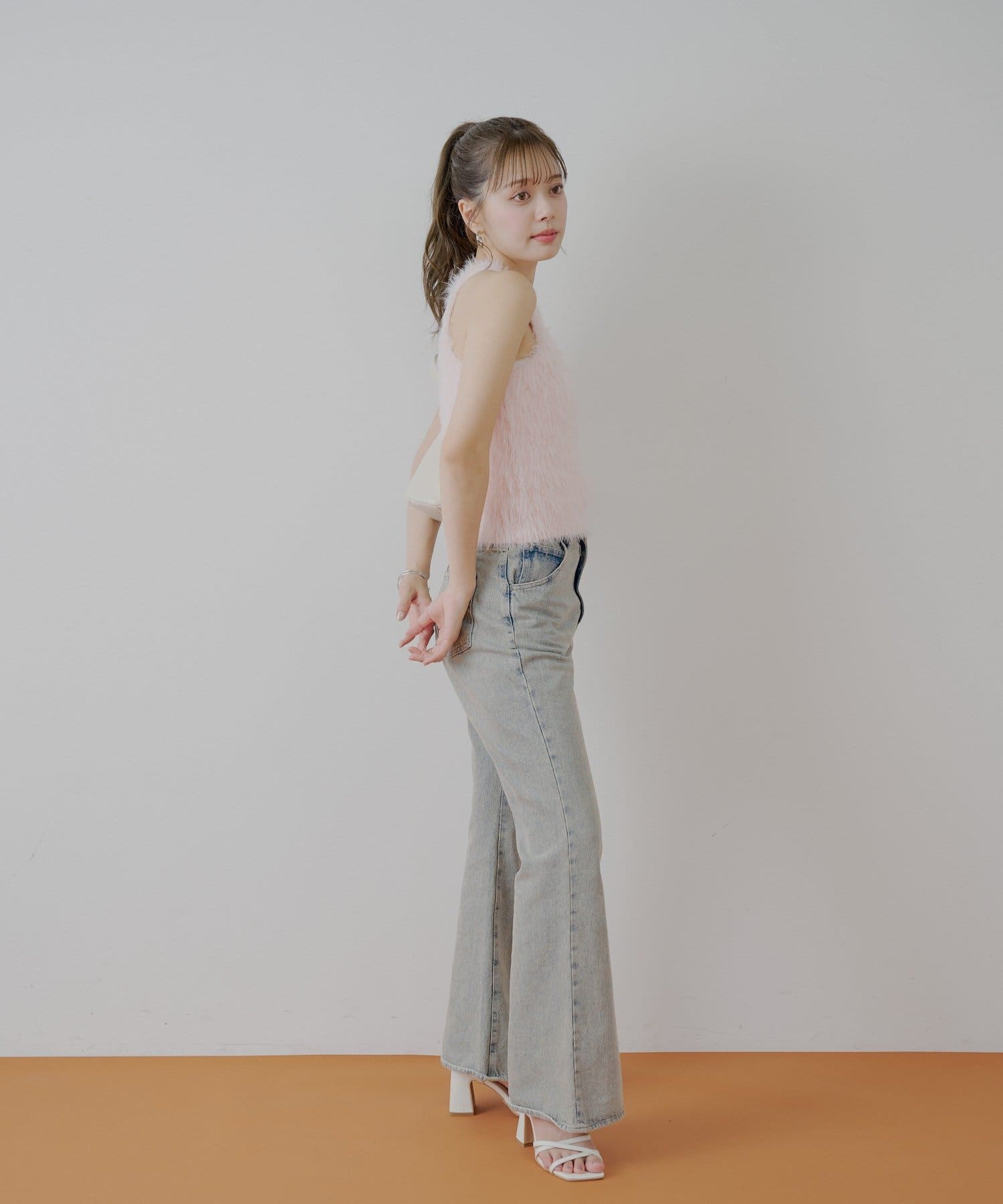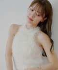 ・ミニボトムと合わせるとフェミニンなスタイルにも。