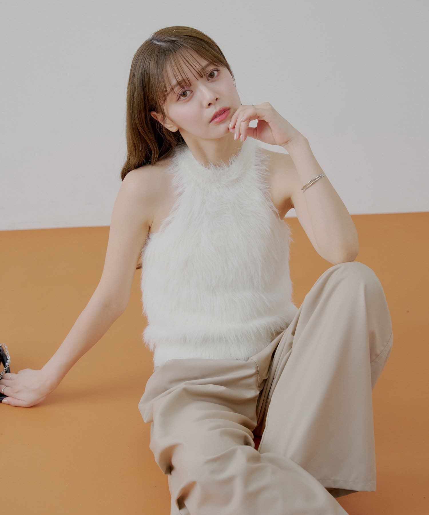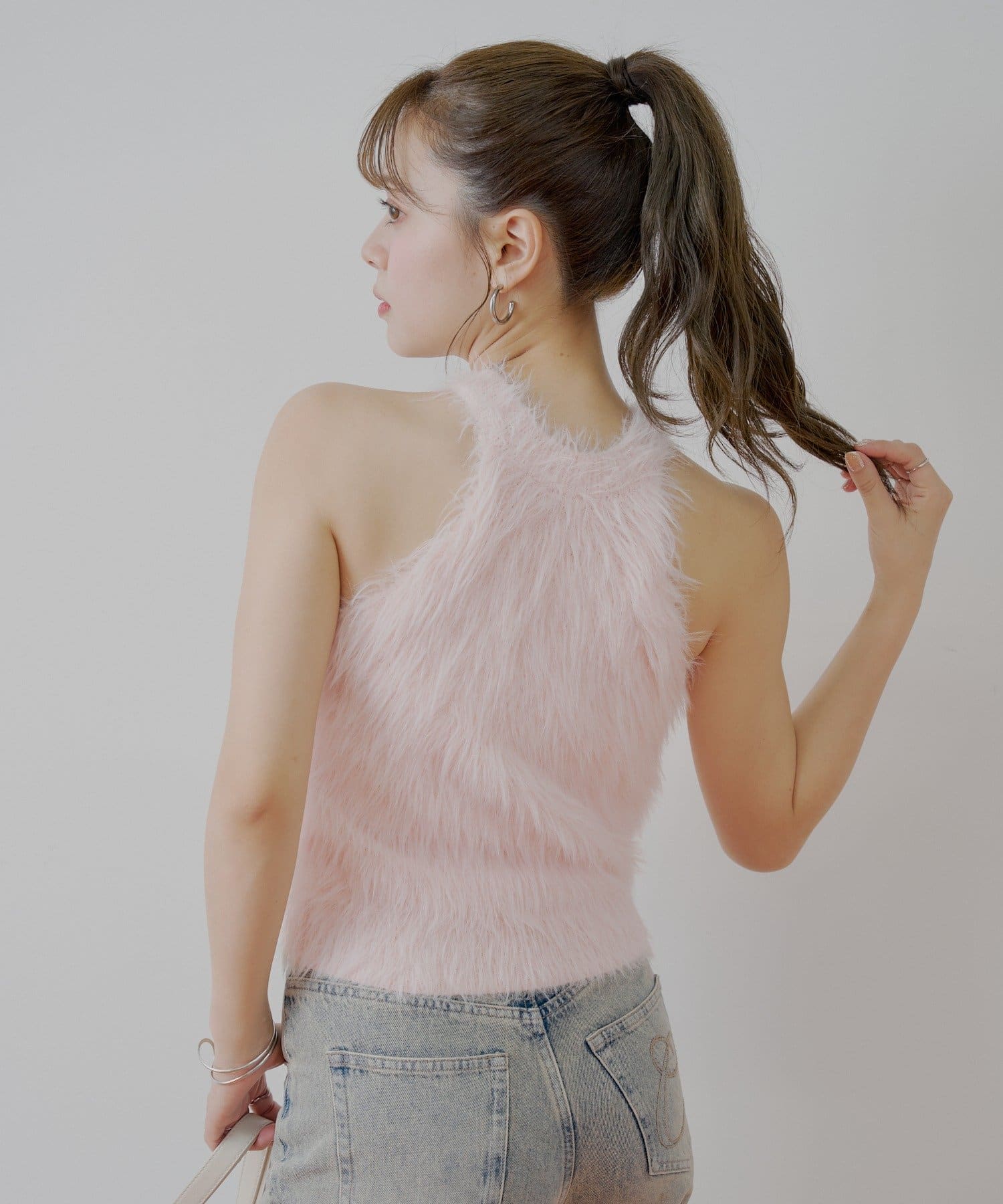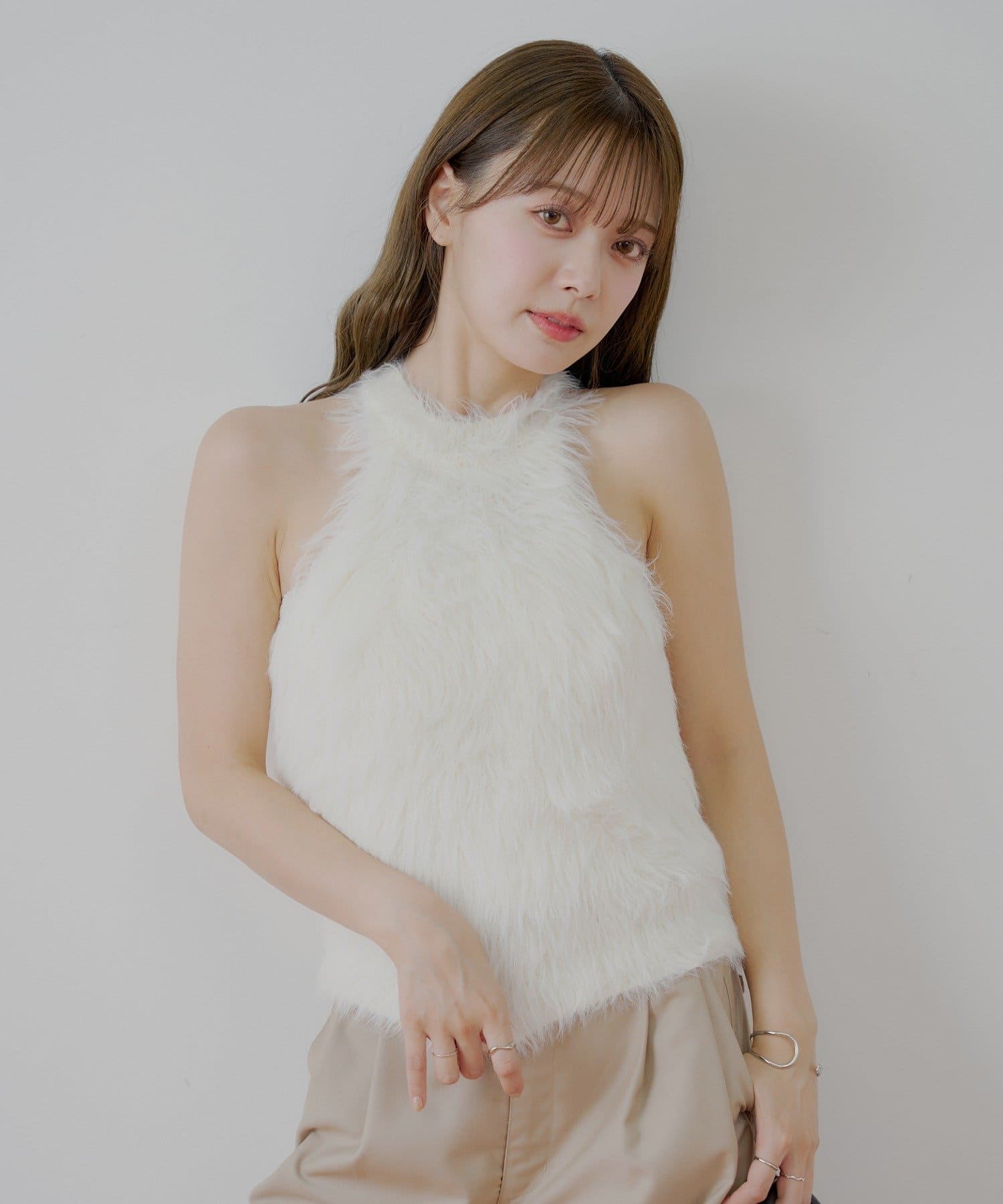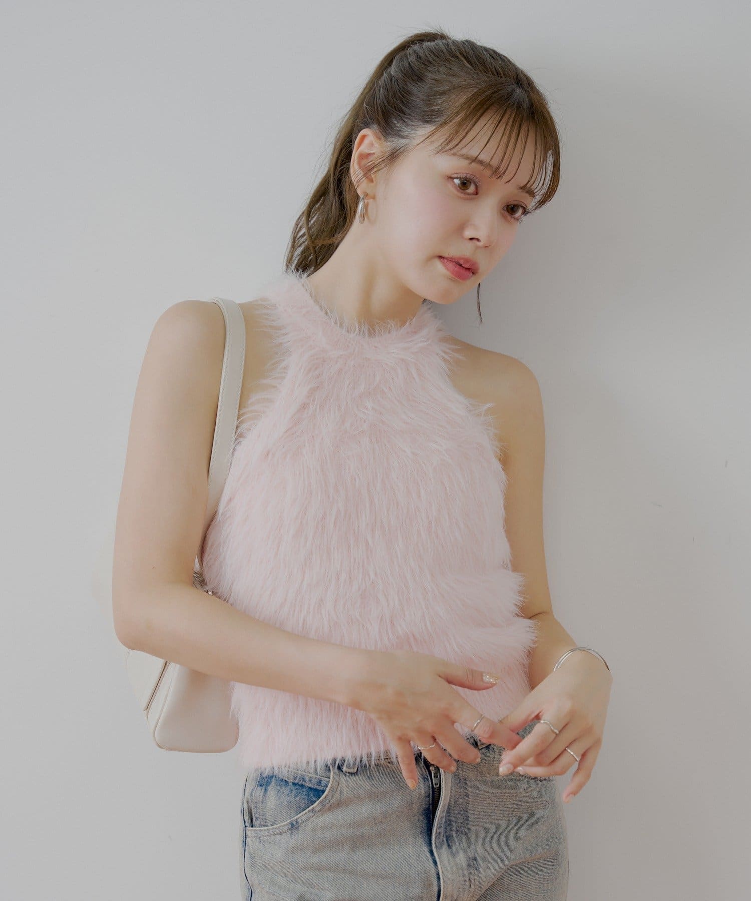 ・思わず触れたくなる、ふわふわのシャギー素材が魅力のアメスリニット。