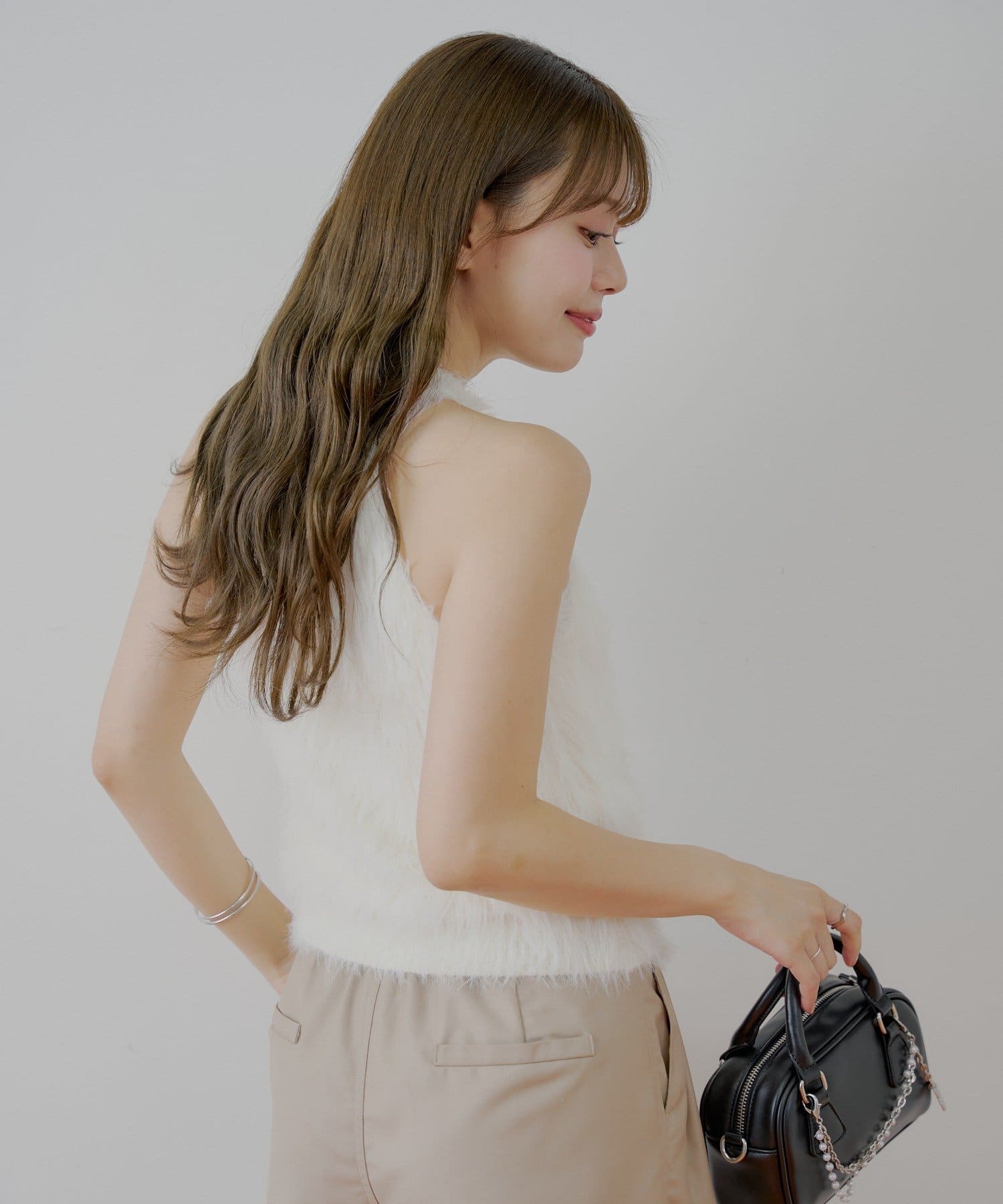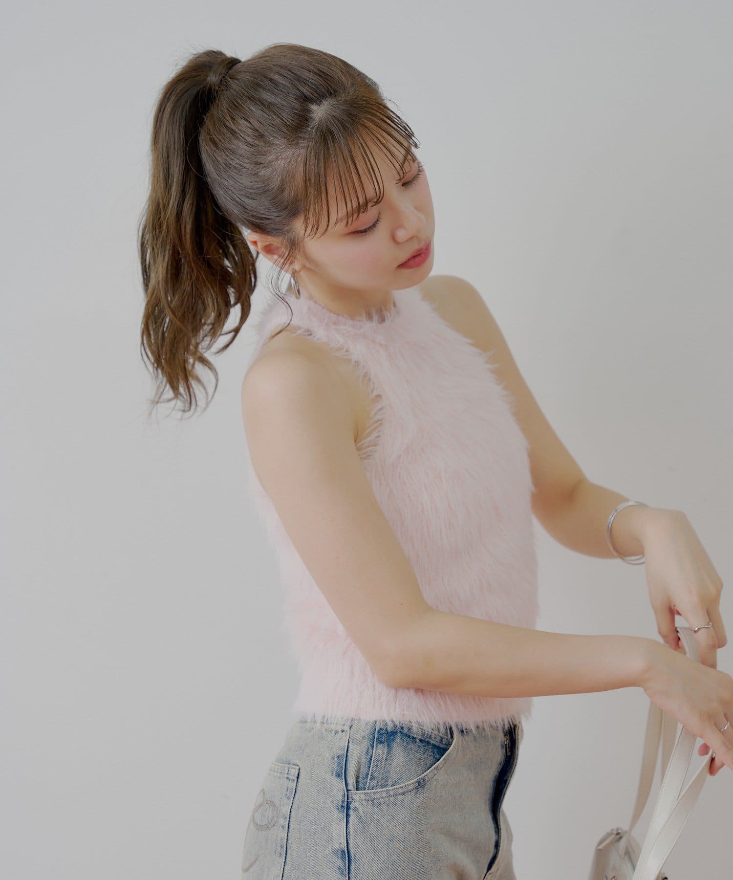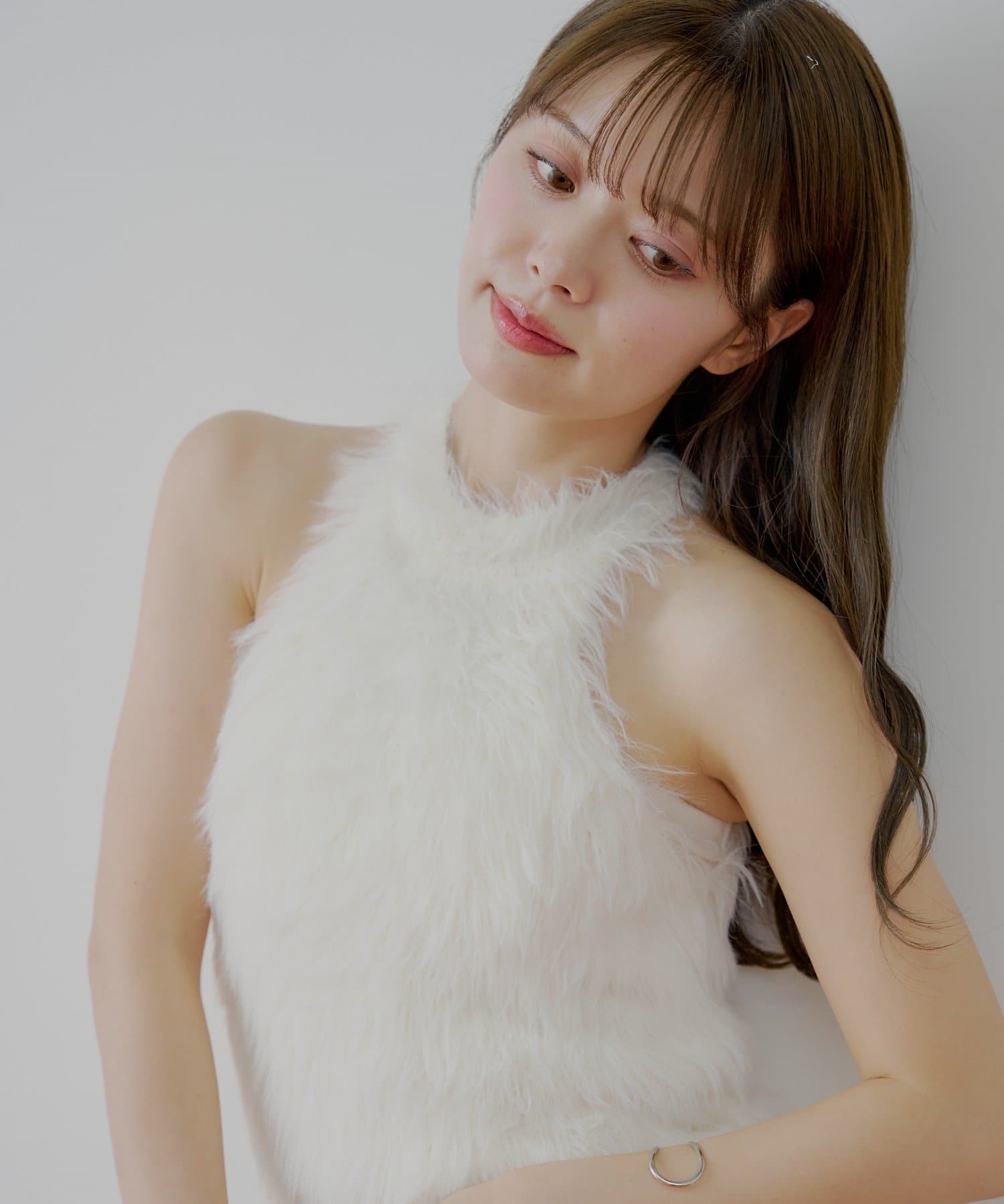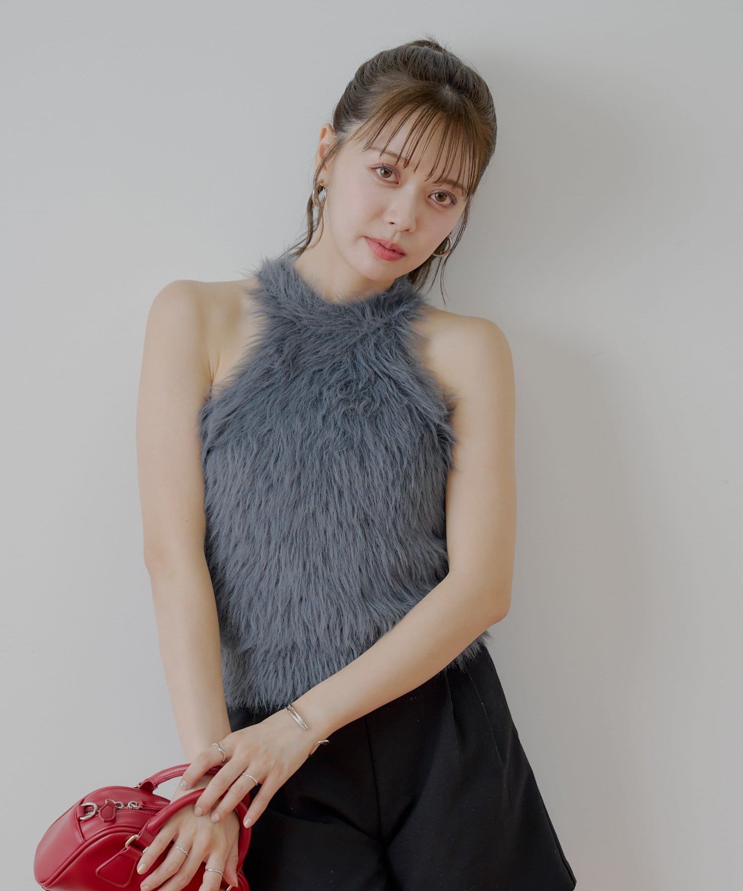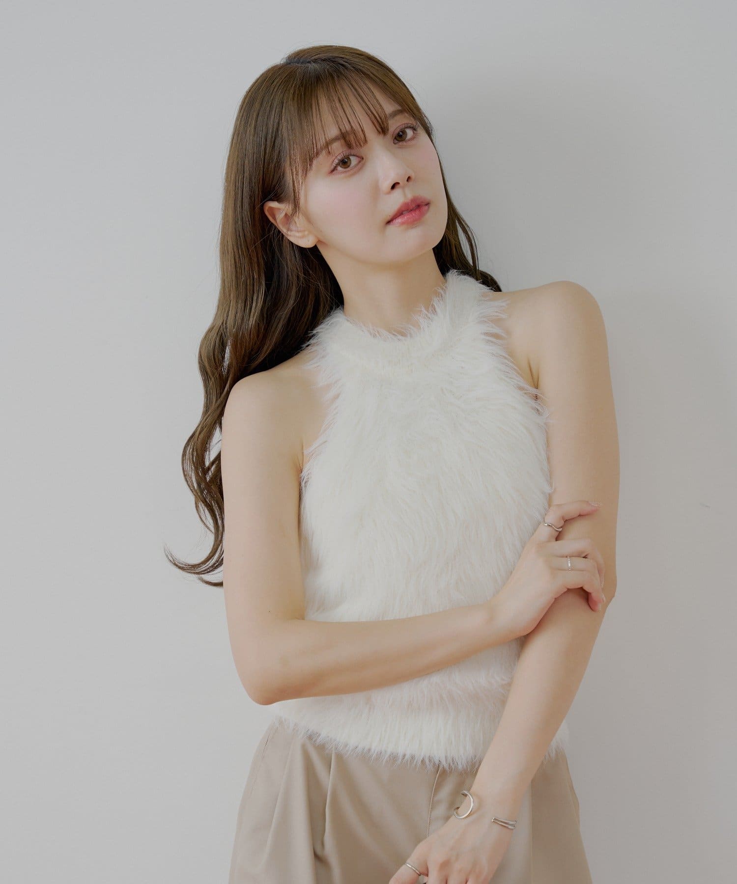 ・思わず触れたくなる、ふわふわのシャギー素材が魅力のアメスリニット。