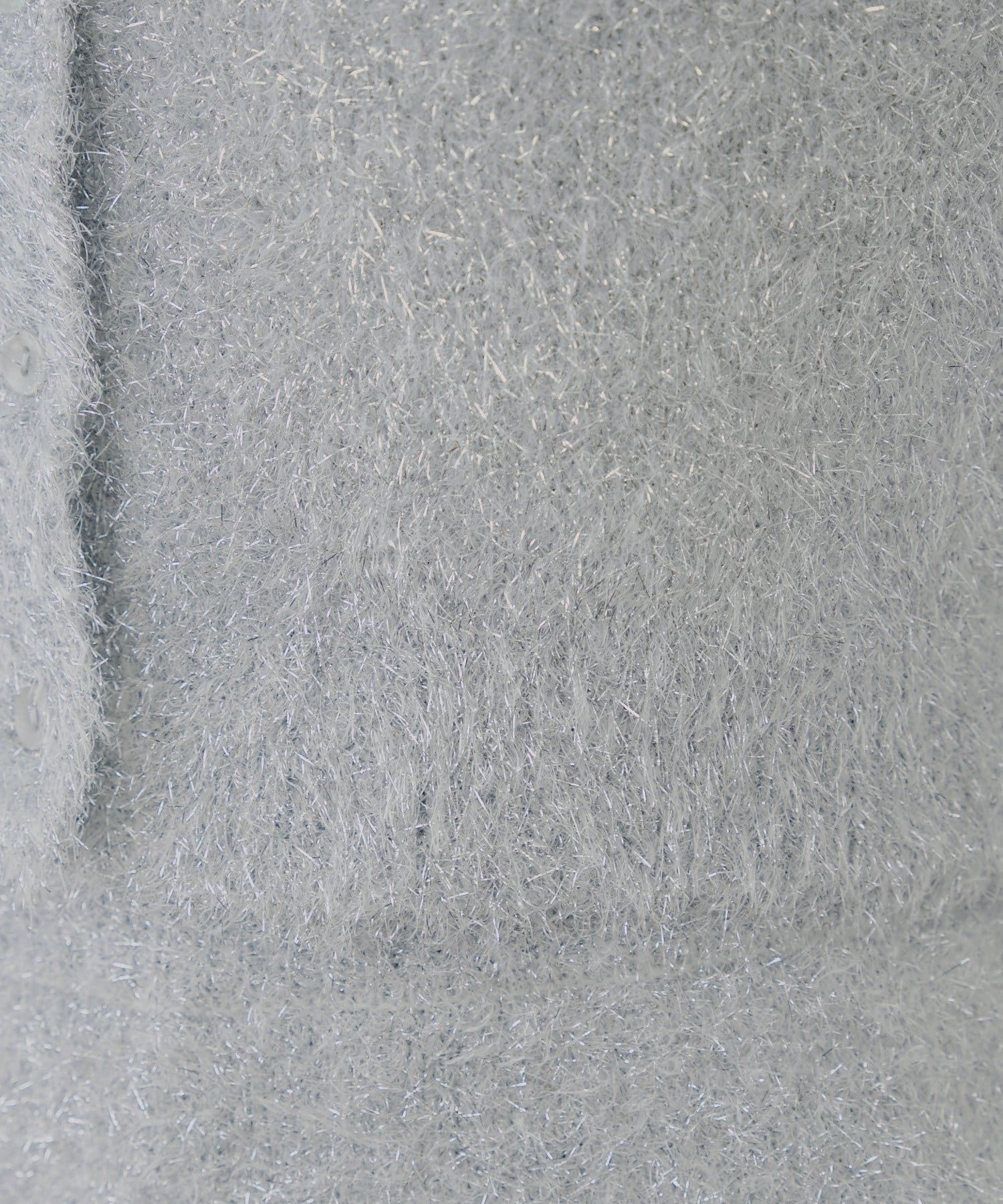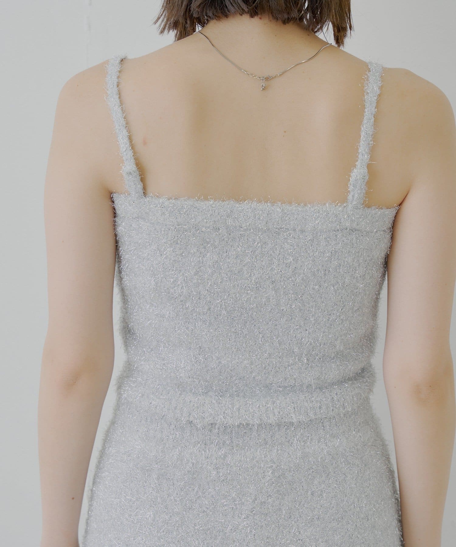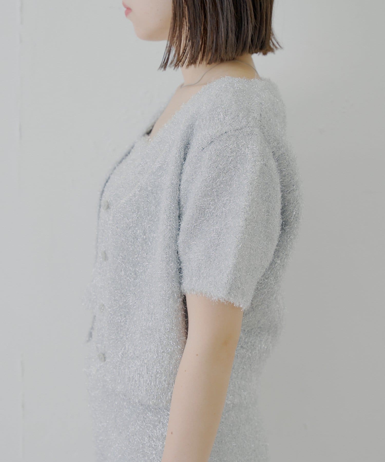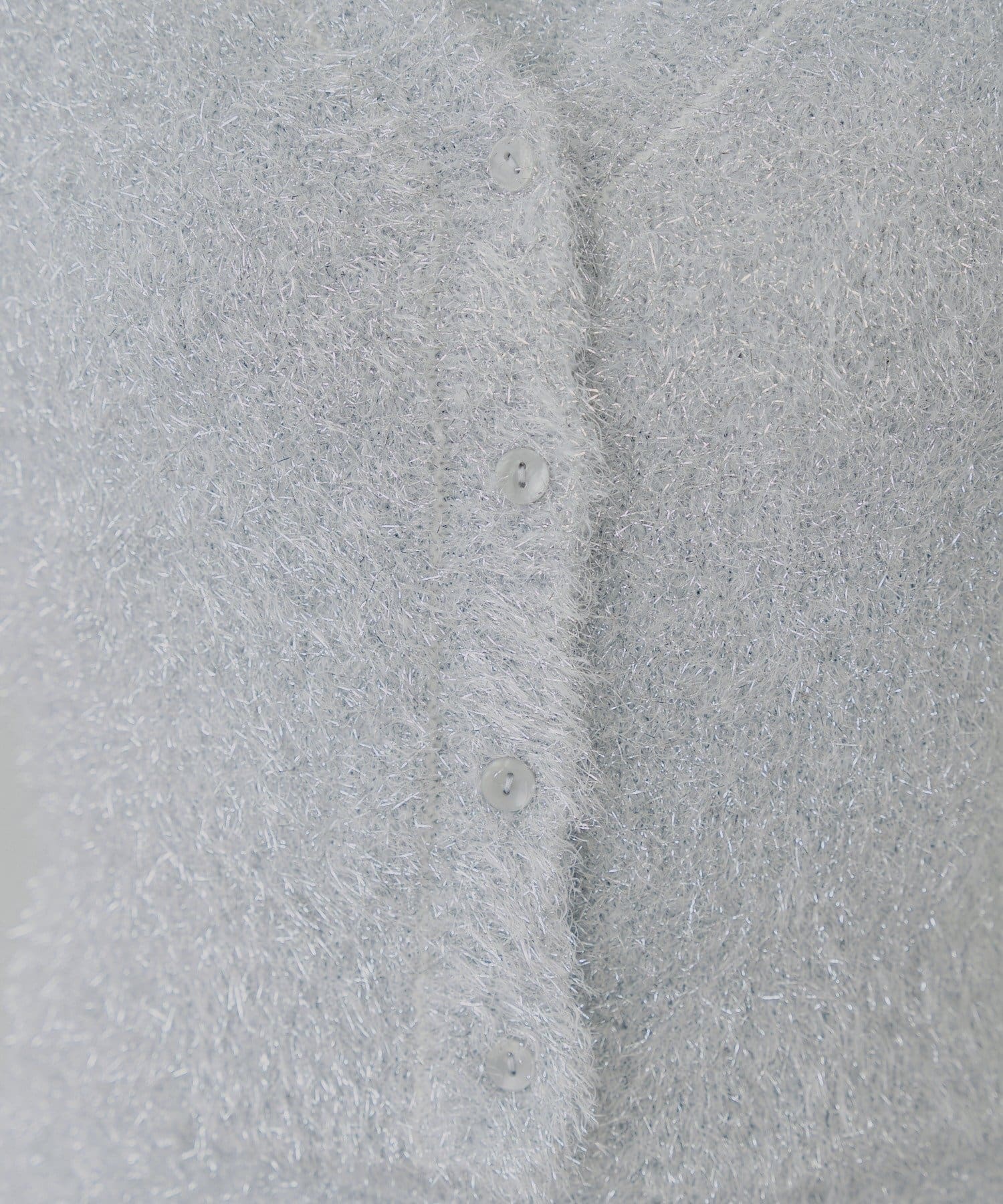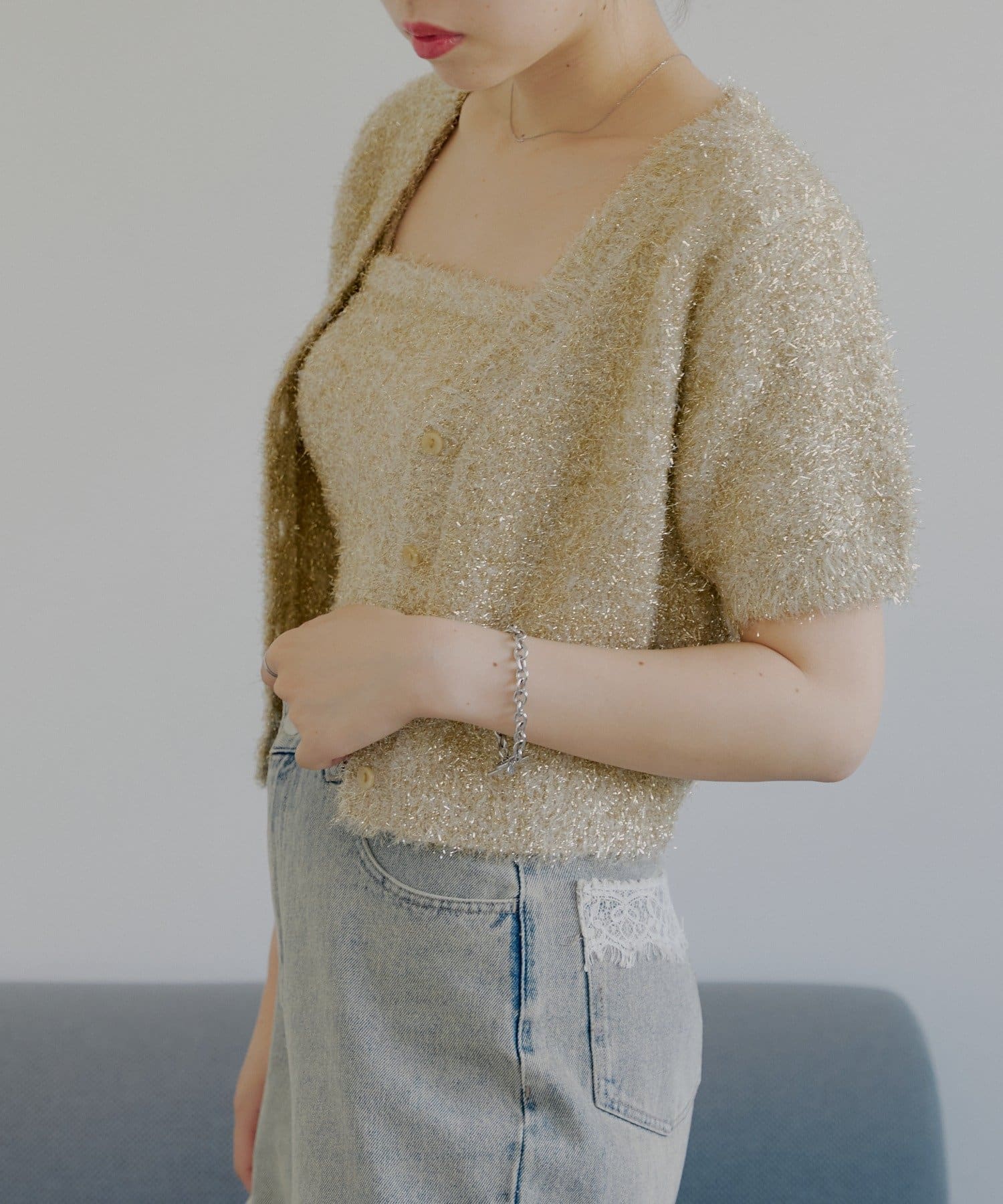 ふわふわのシャギーニットに繊細なラメを織り込んだカーディガン+ベアキャミセット