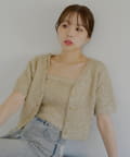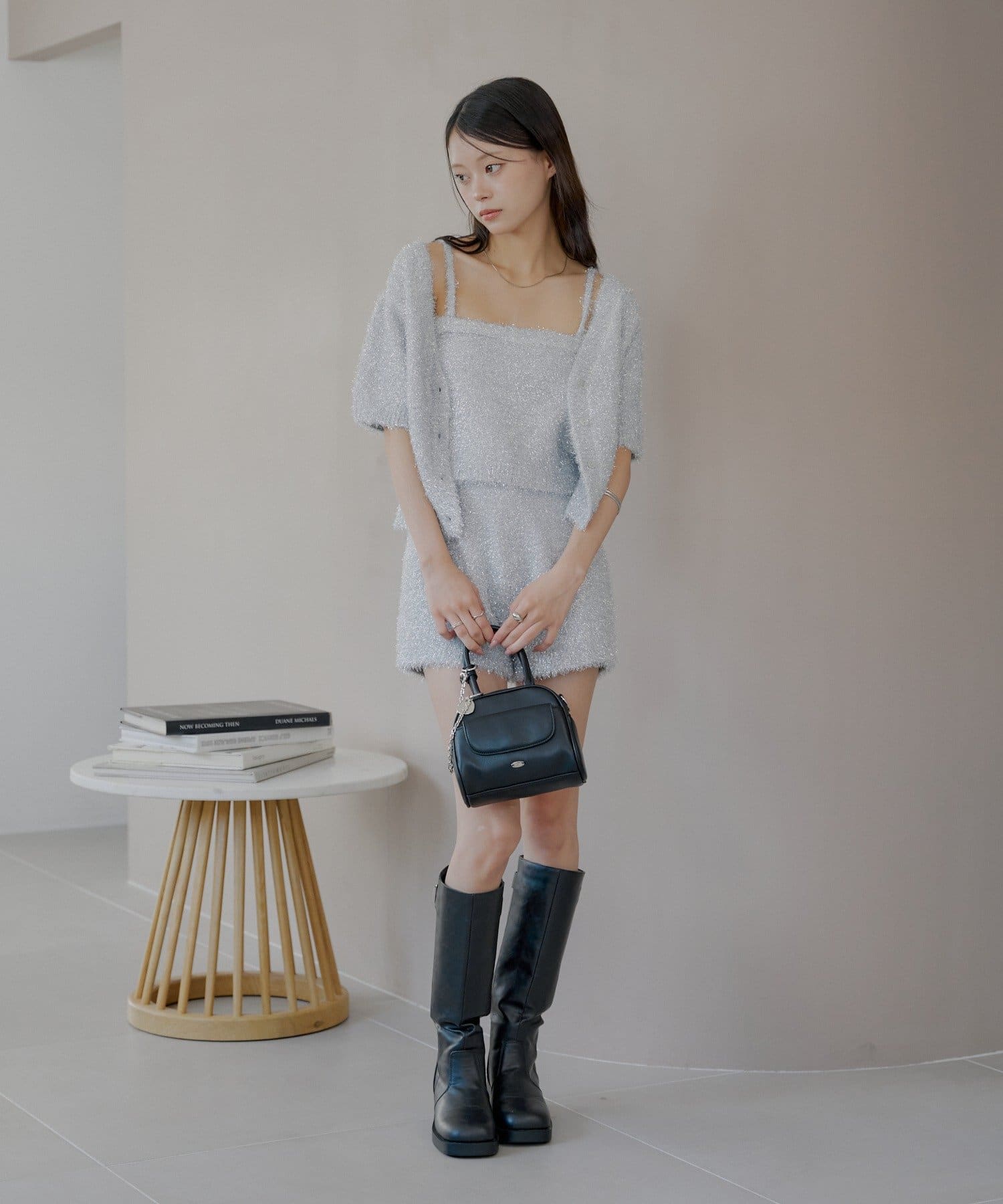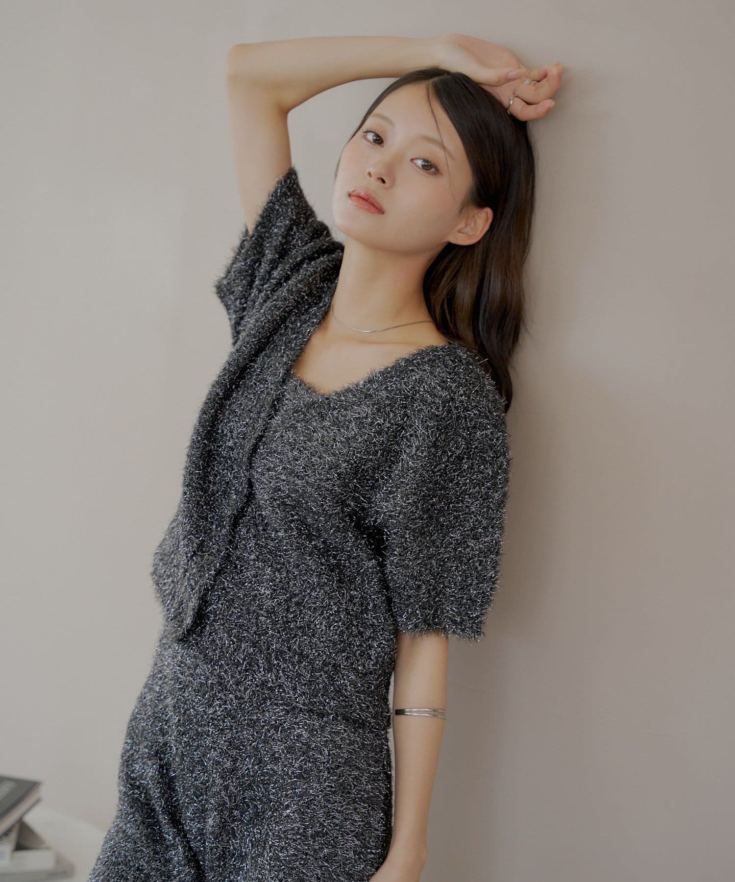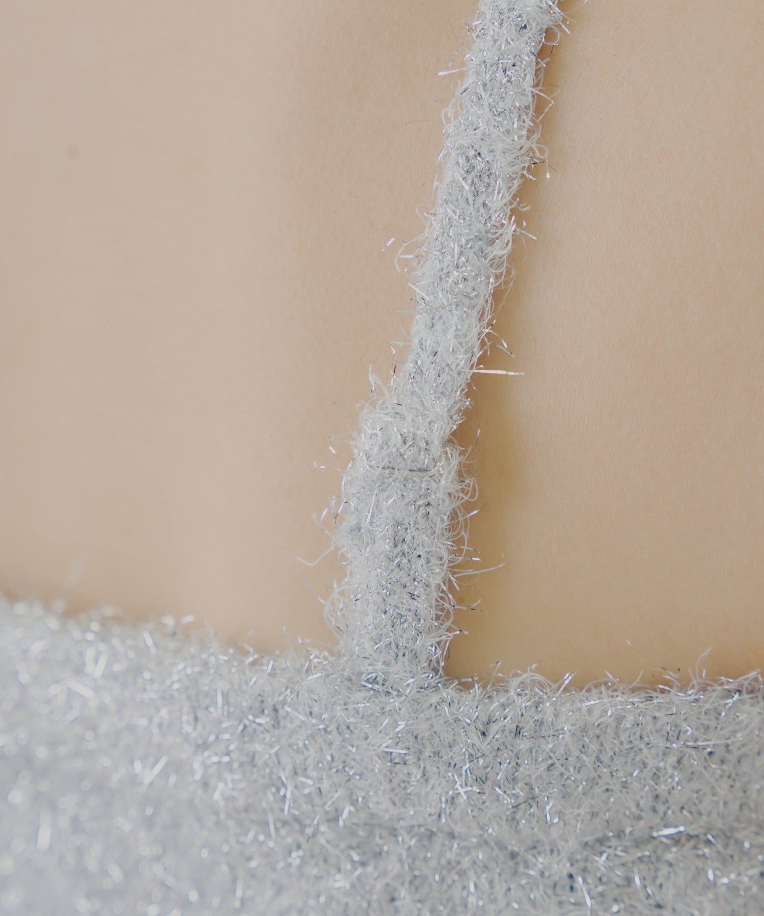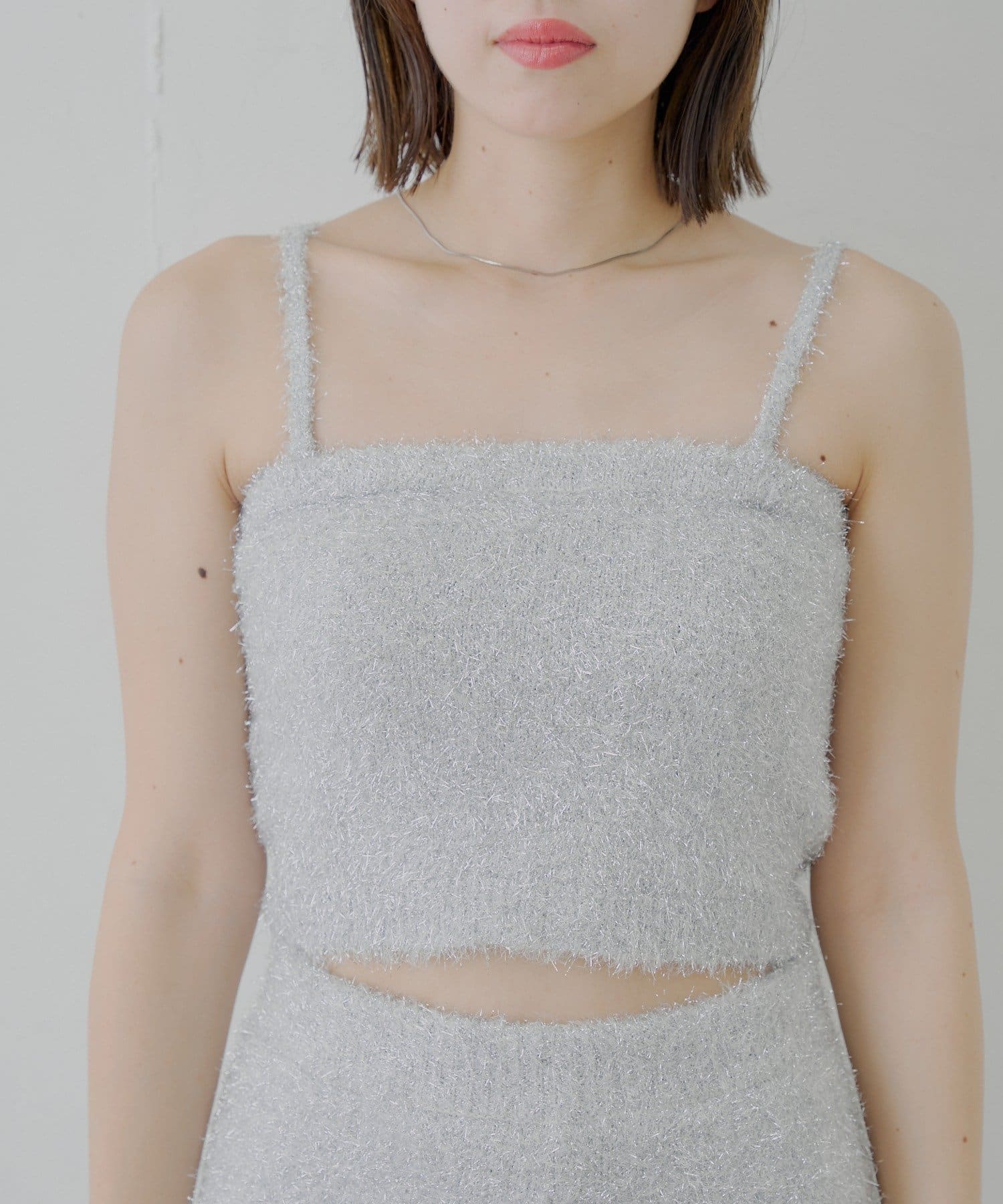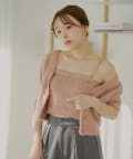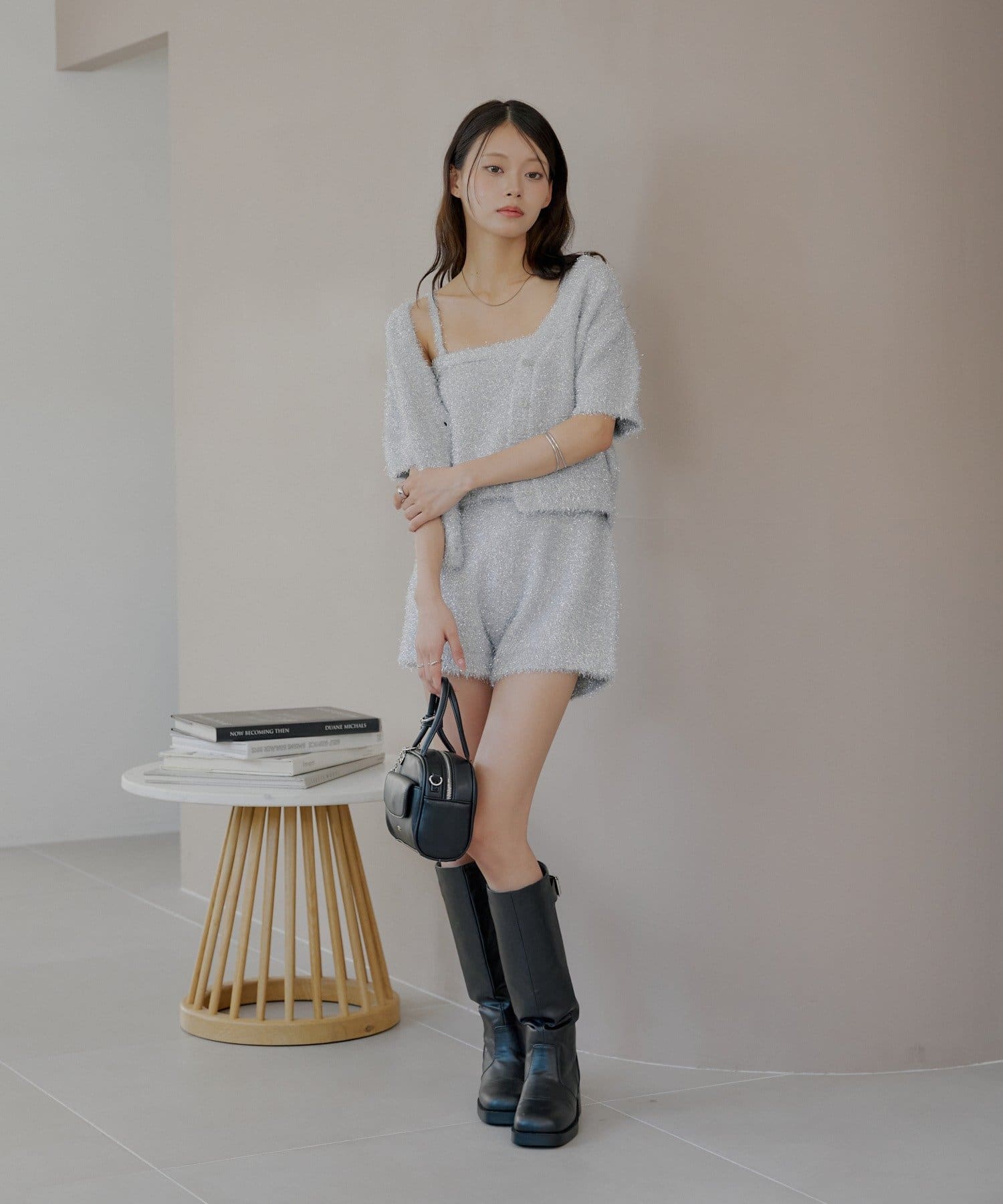 ふわふわのシャギーニットに繊細なラメを織り込んだカーディガン+ベアキャミセット