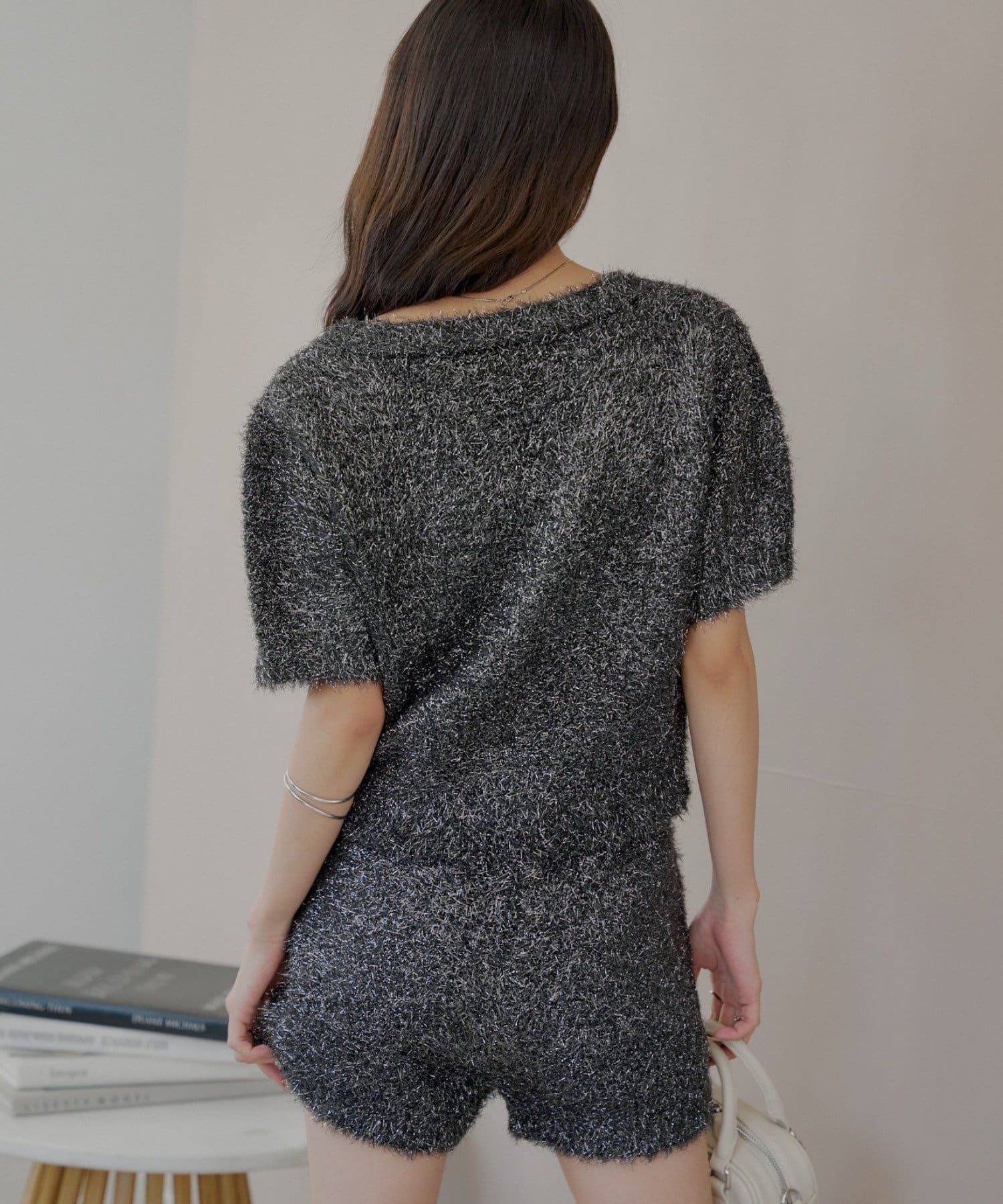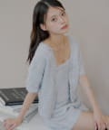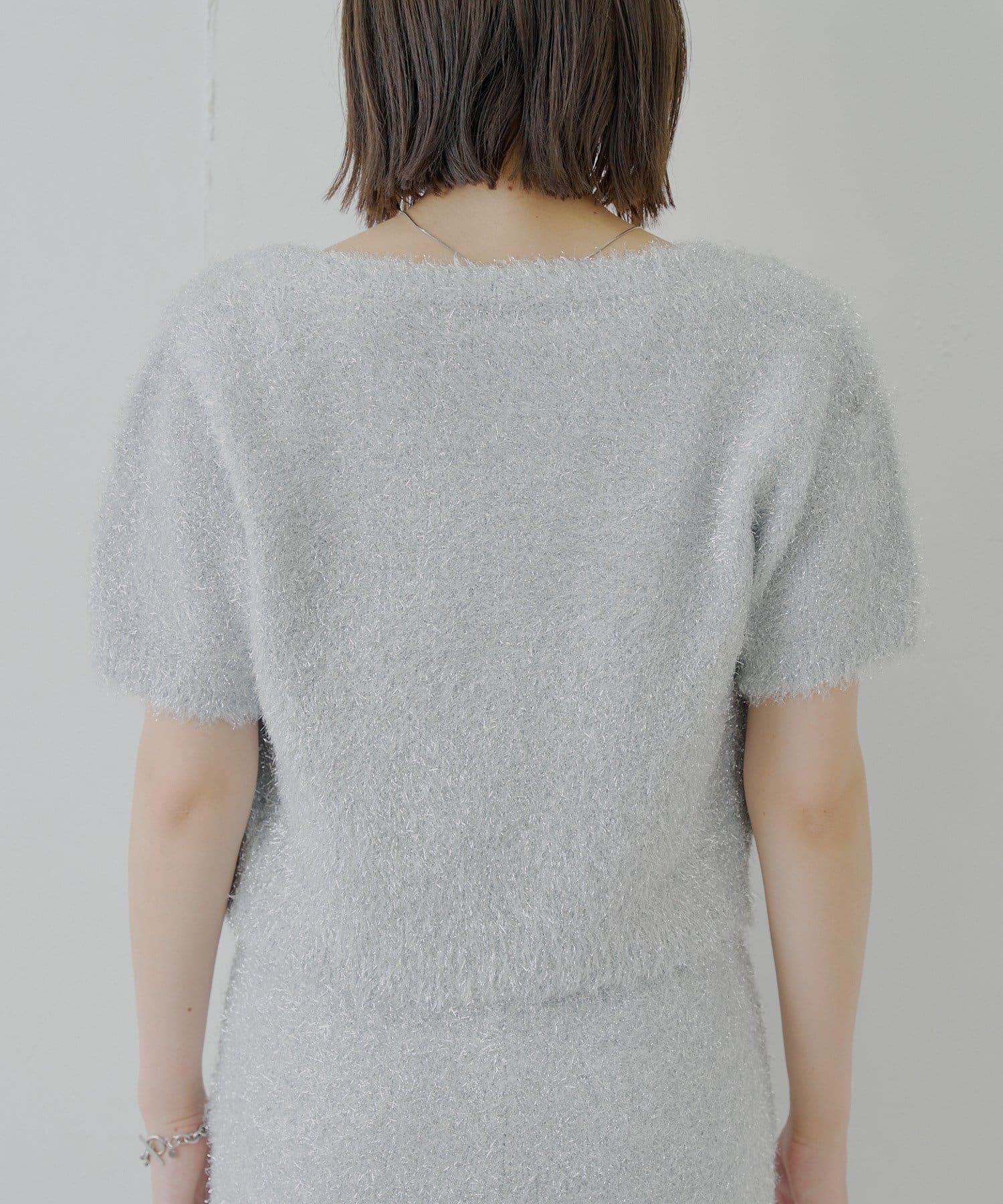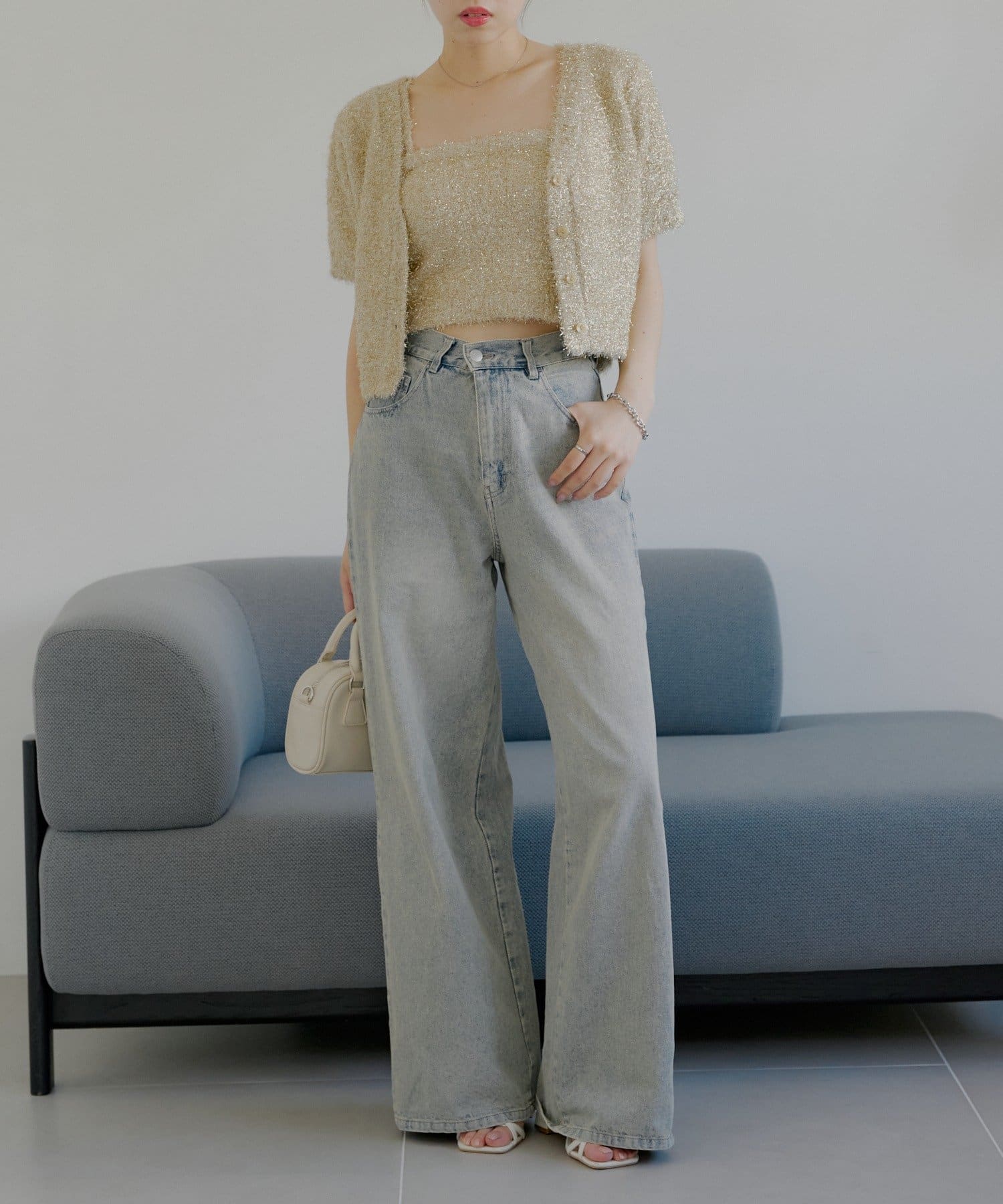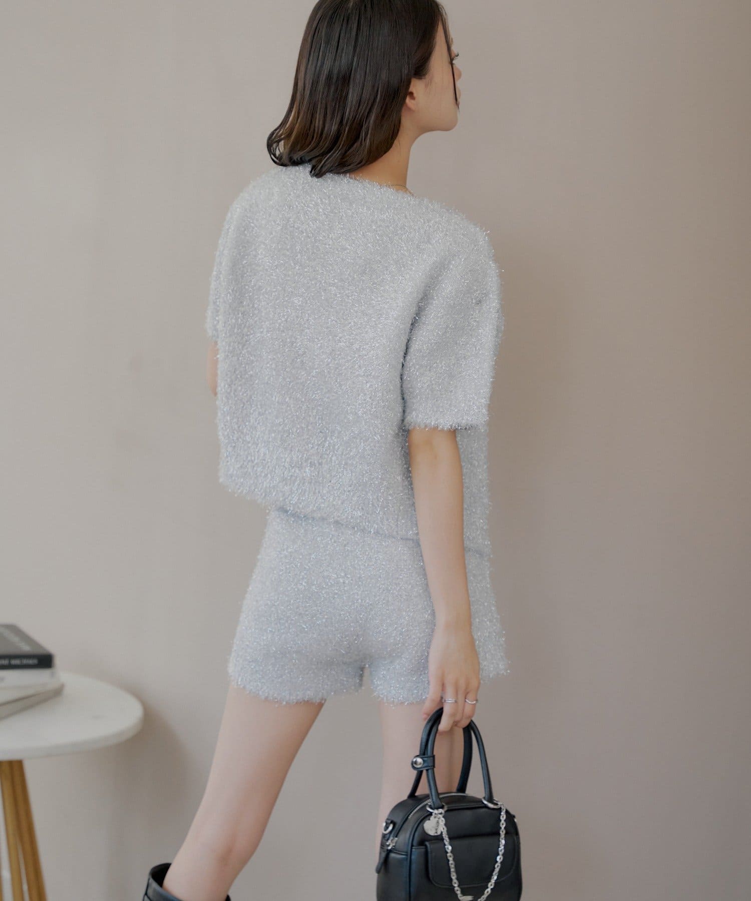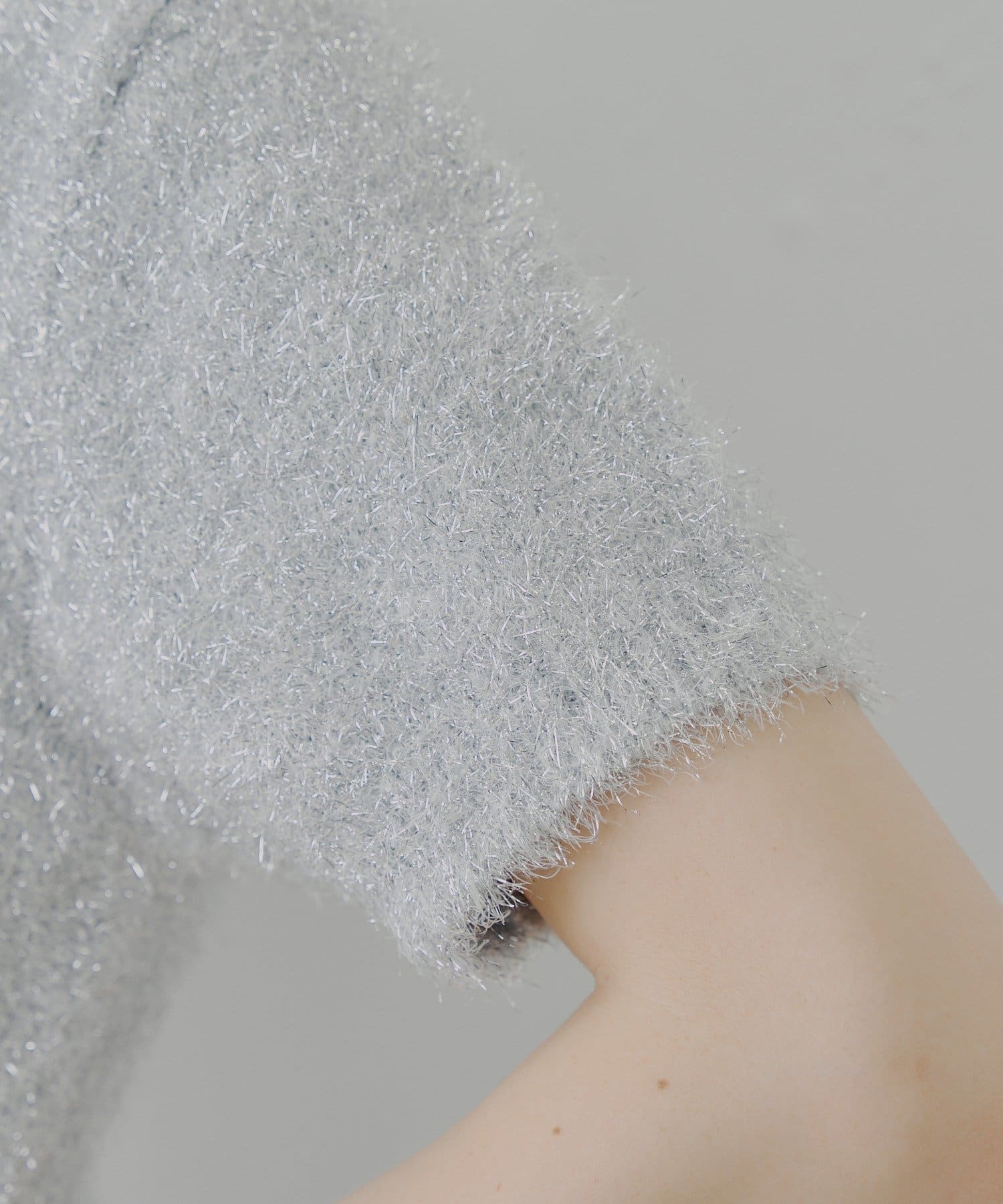 ふわふわのシャギーニットに繊細なラメを織り込んだカーディガン+ベアキャミセット