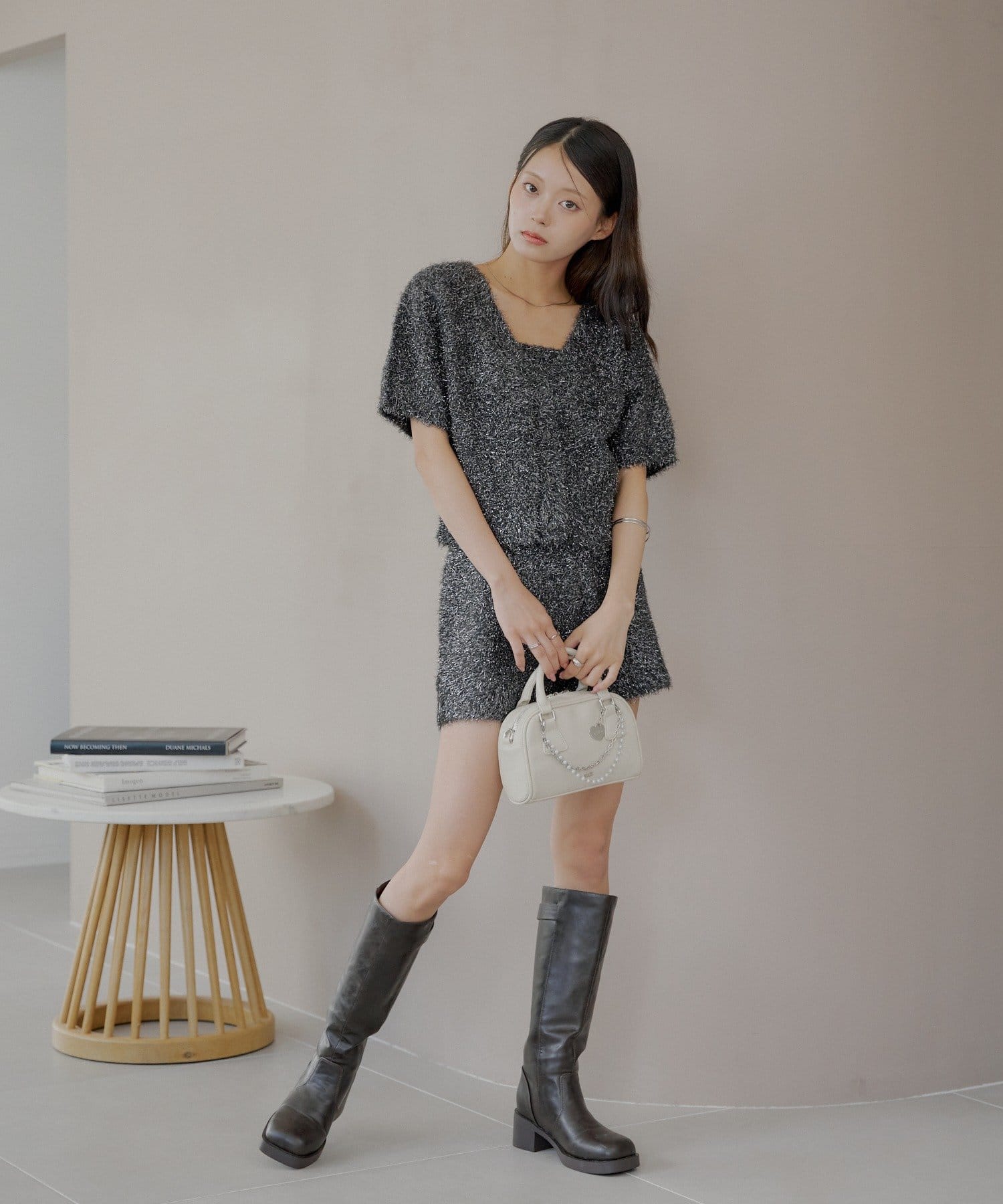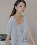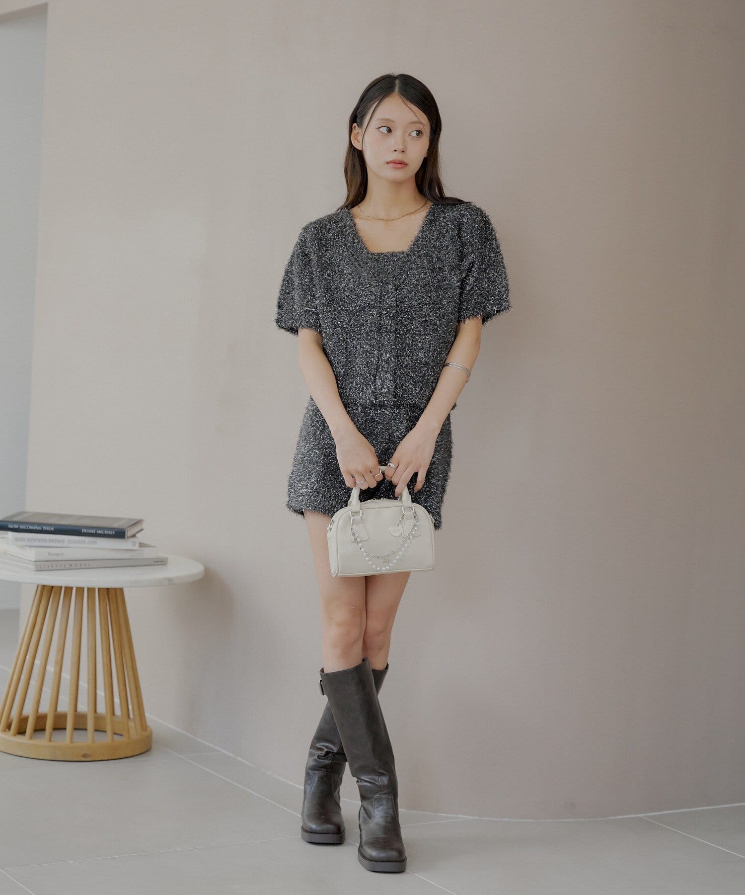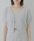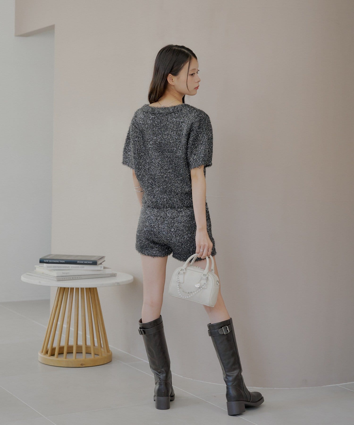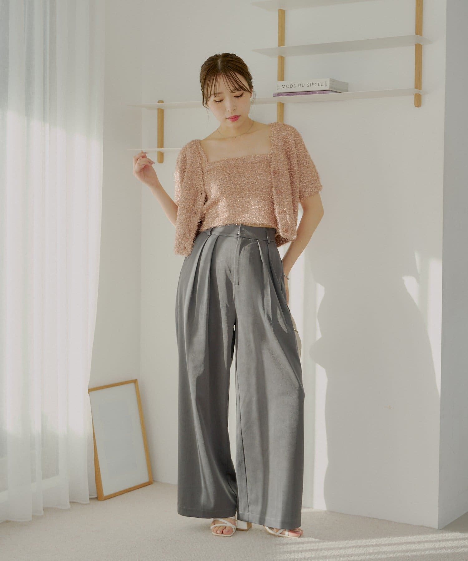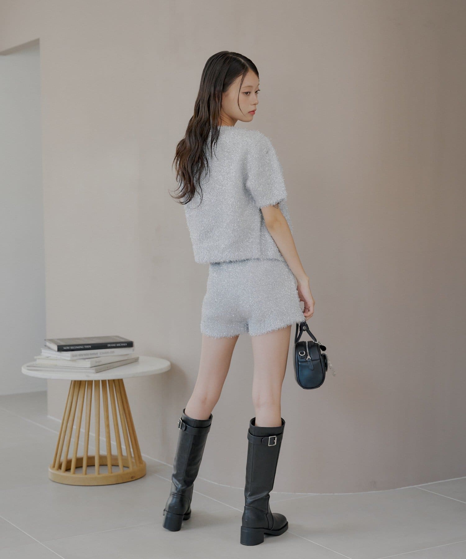 ふわふわのシャギーニットに繊細なラメを織り込んだカーディガン+ベアキャミセット