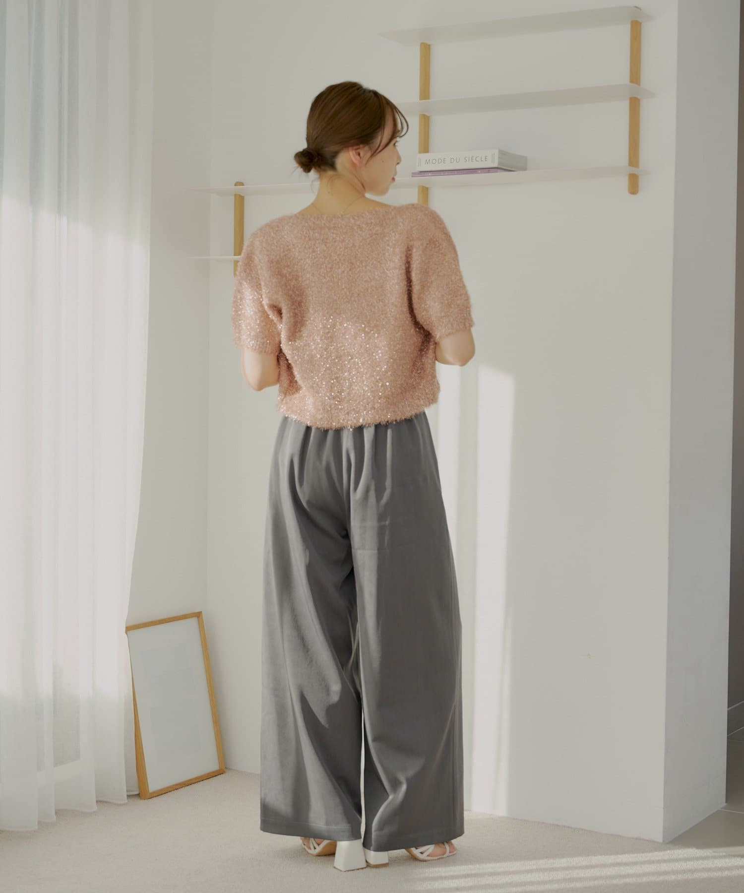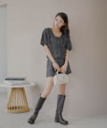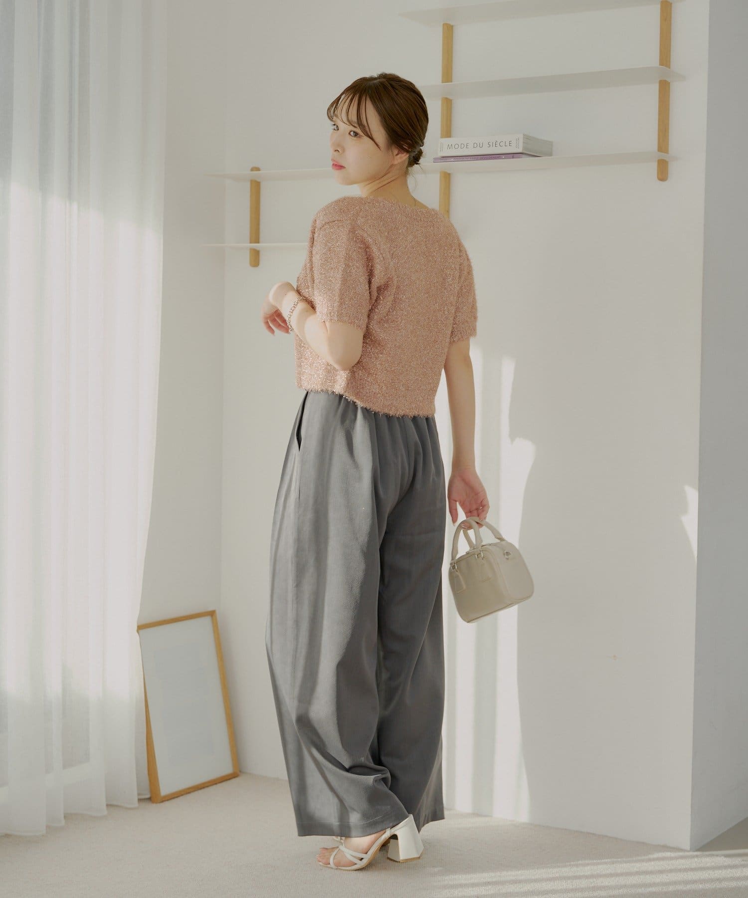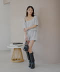 ・同素材のボトムスと合わせてセットアップ風にして着るのも可愛いです。