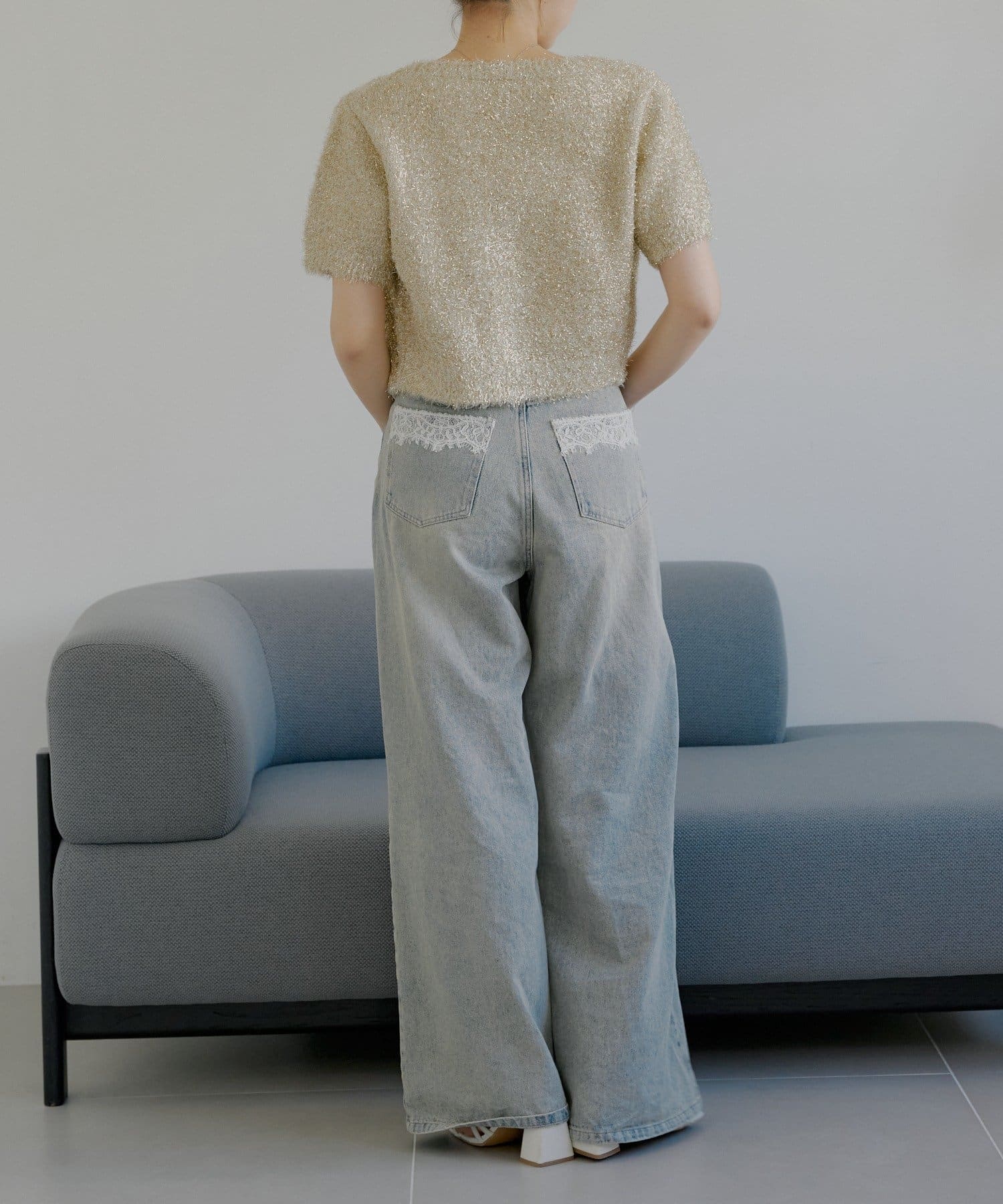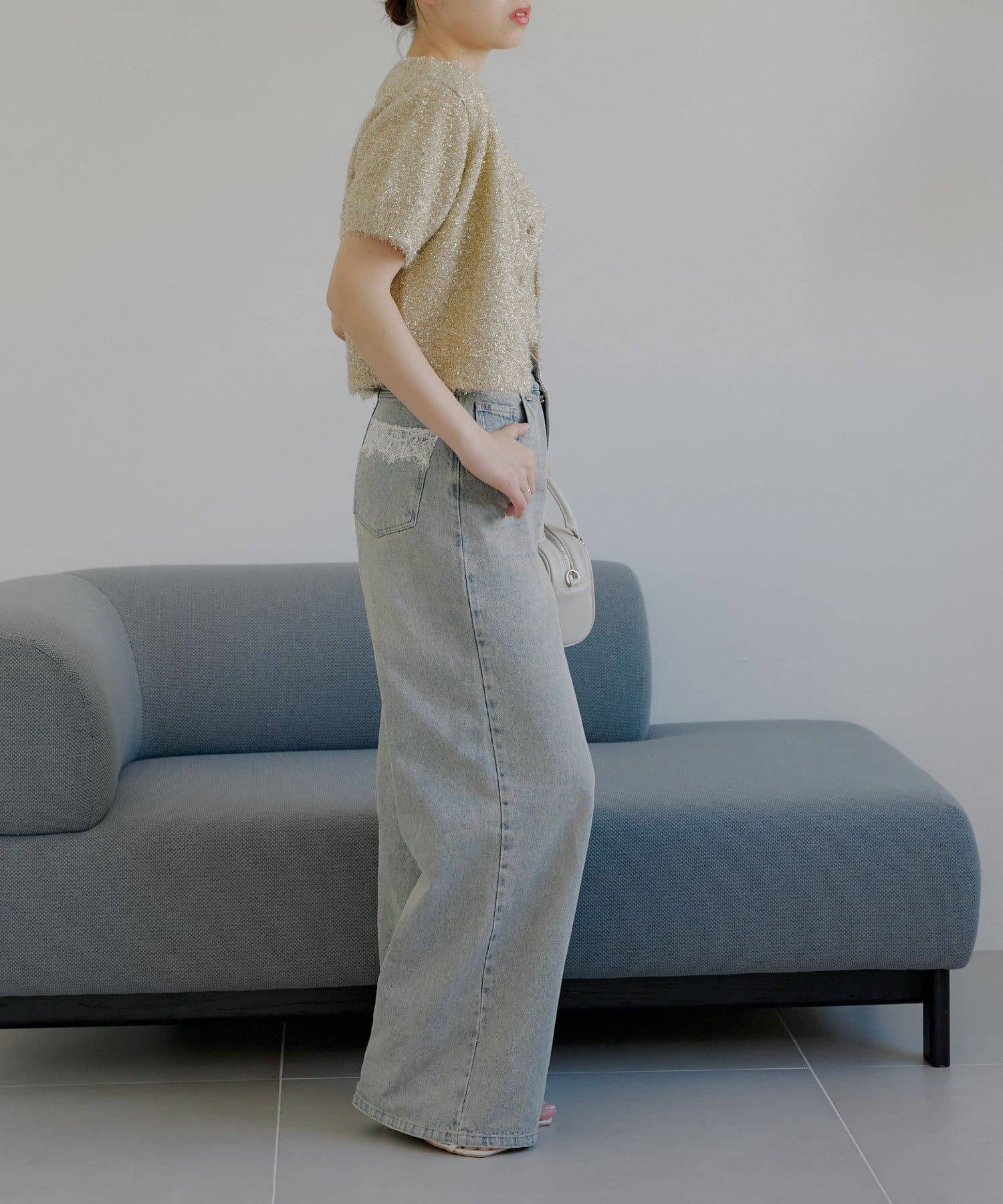 ・デニムパンツと合わせると、程よくカジュアルダウンした大人可愛いスタイルにも。