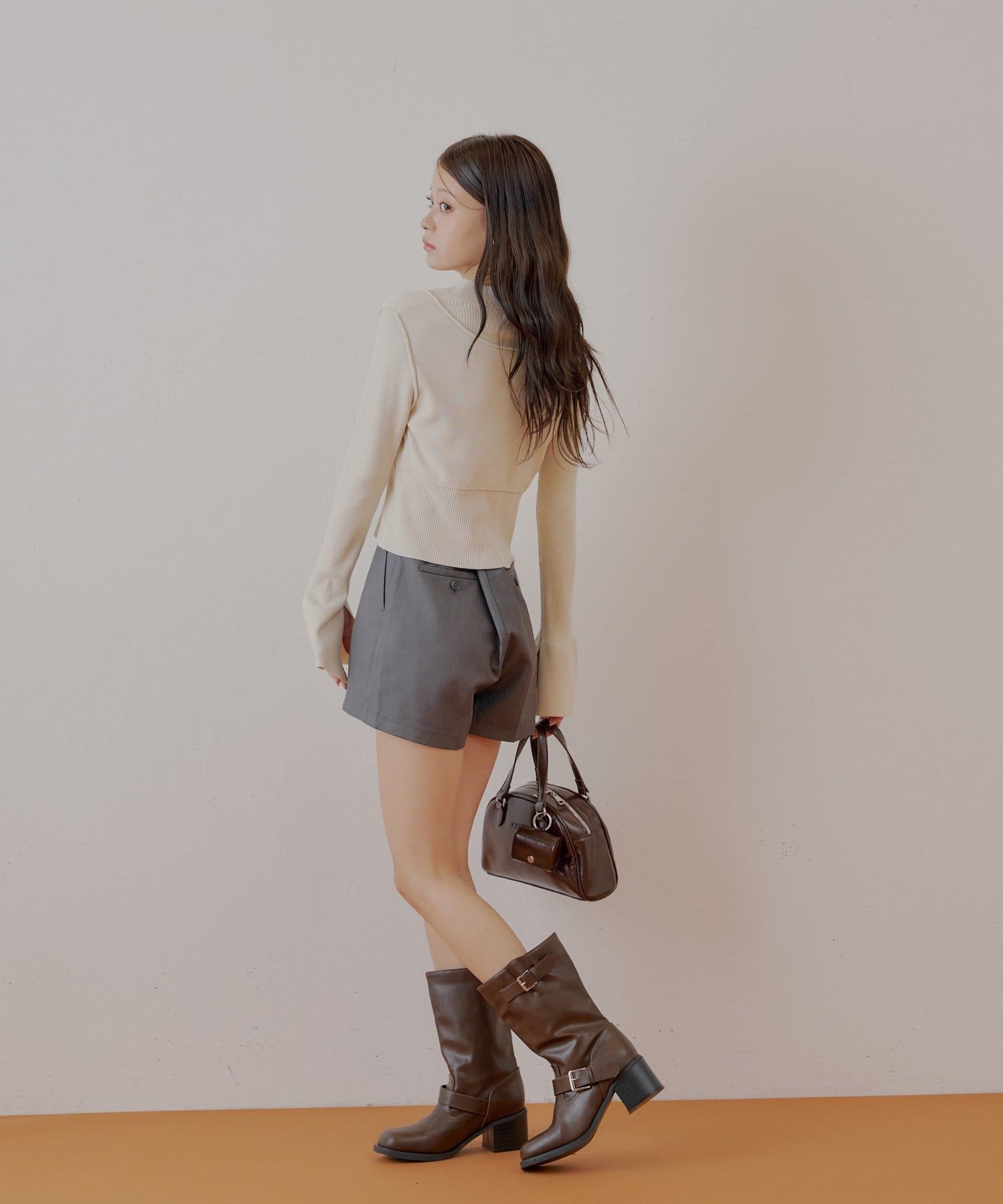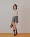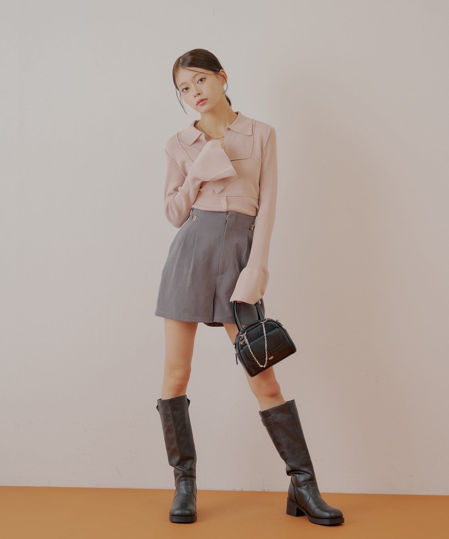 ・ミニボトムと合わせると、フェミニンなスタイルにも。