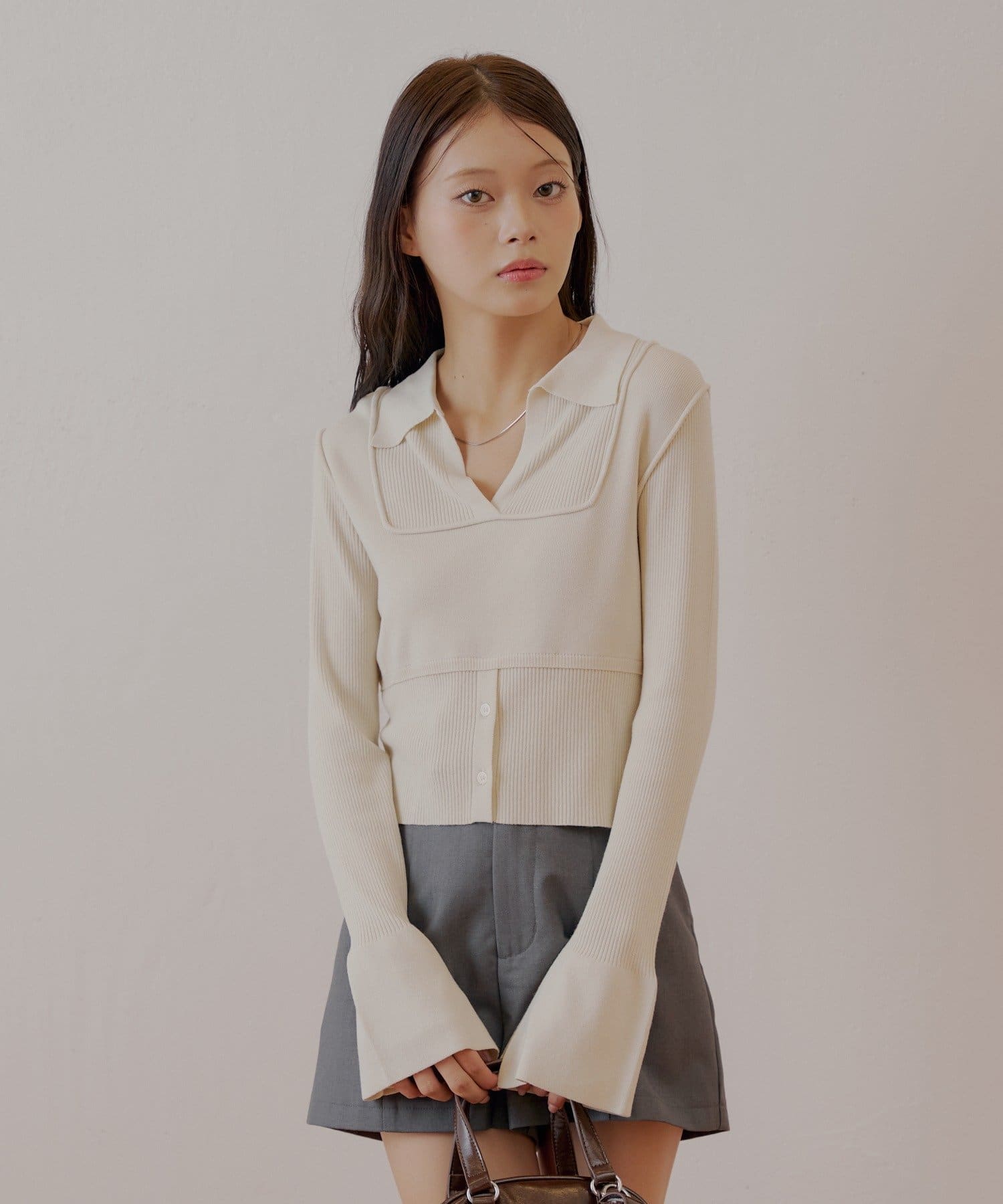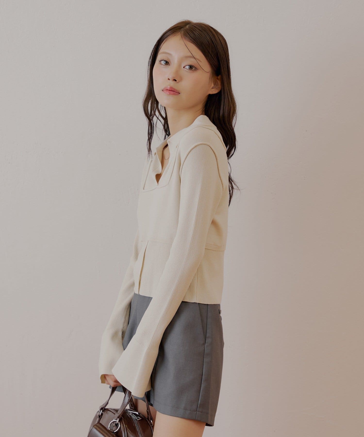 一枚で旬顔コーデが叶うベストレイヤードスキッパーフレア袖ニット登場!