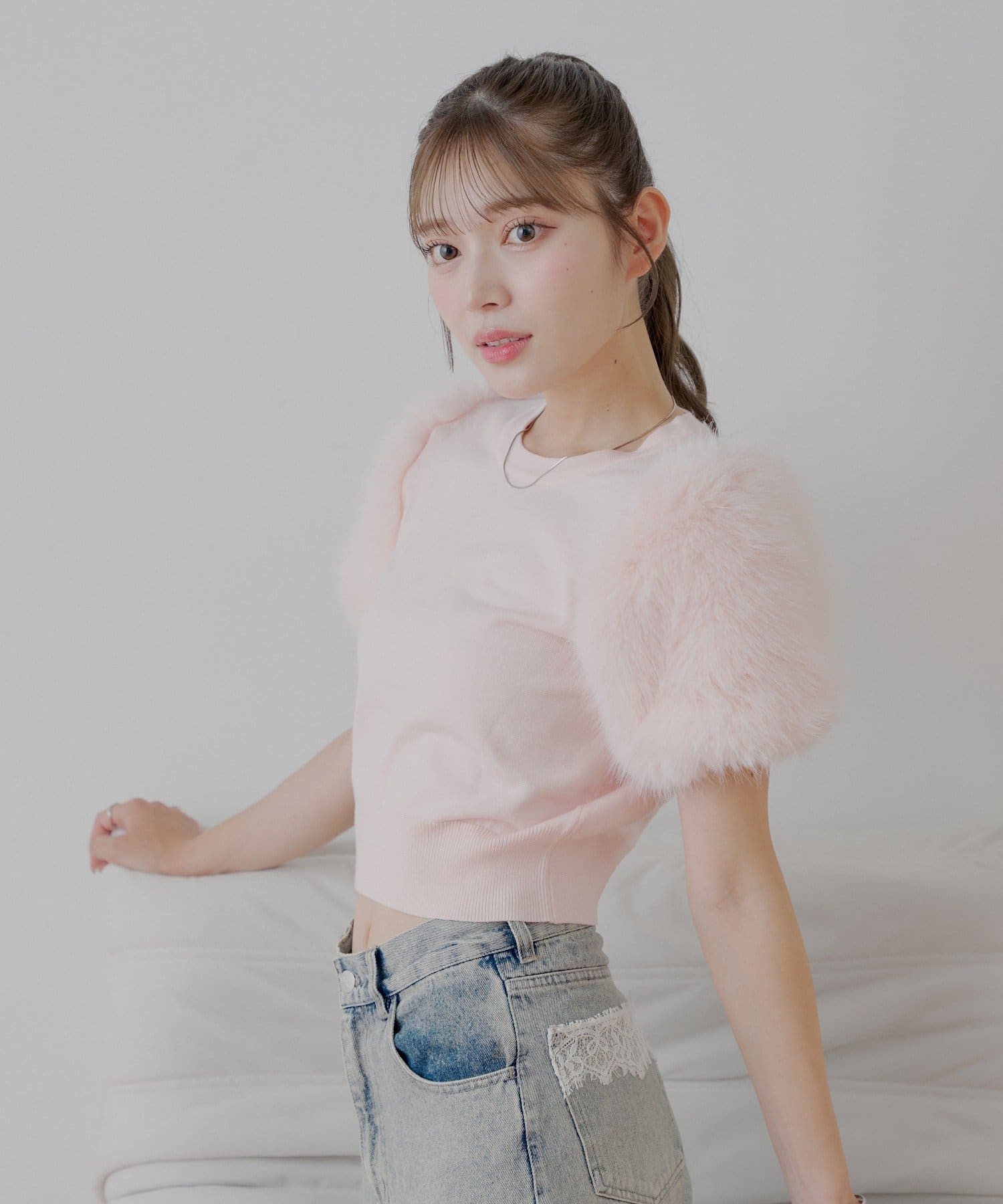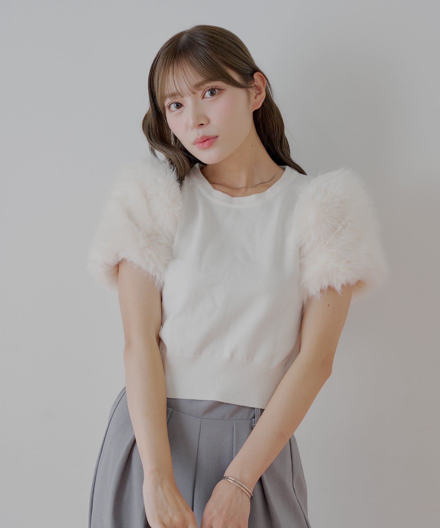 ふんわりとした袖ファーが目を惹くパフニット登場!