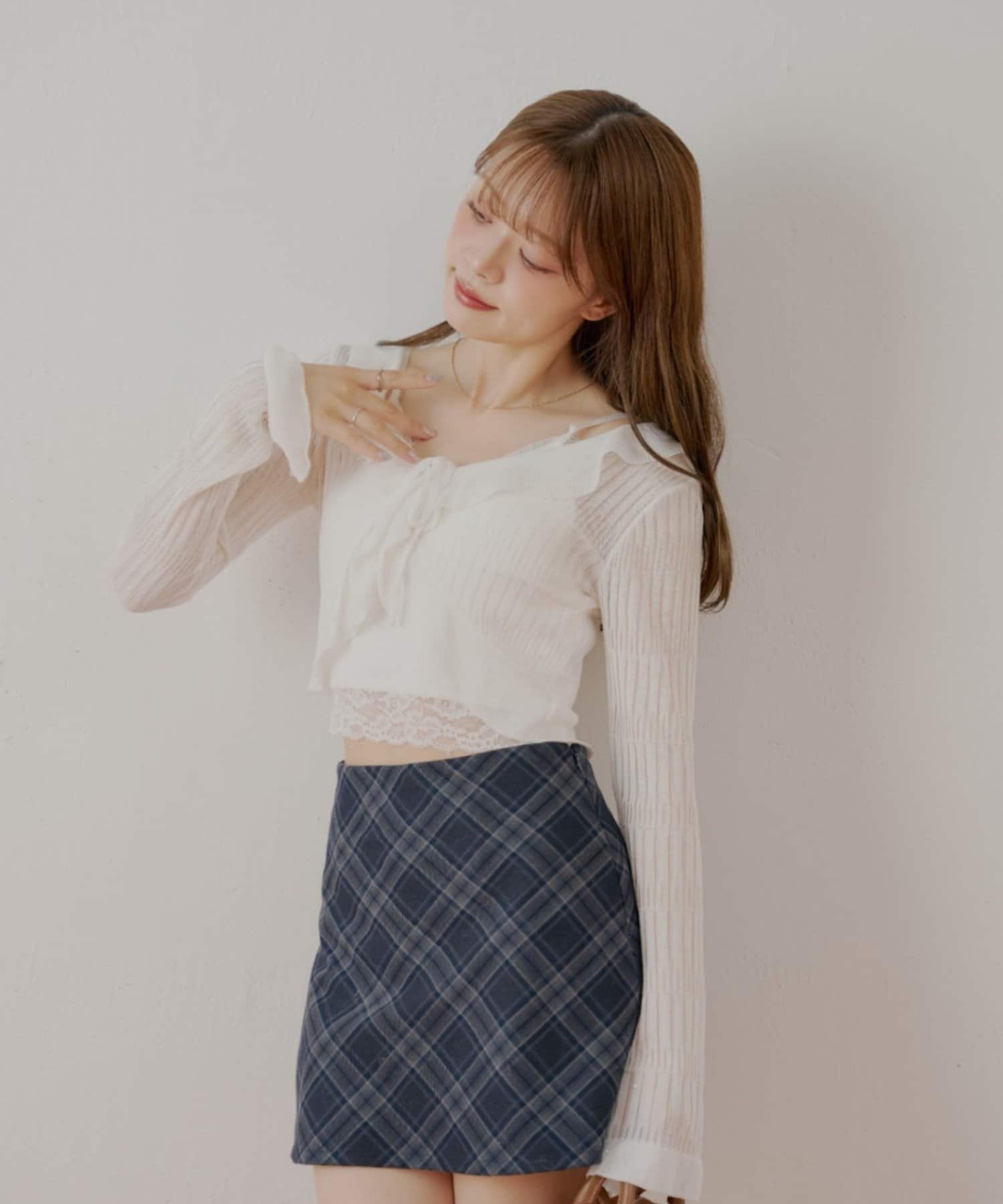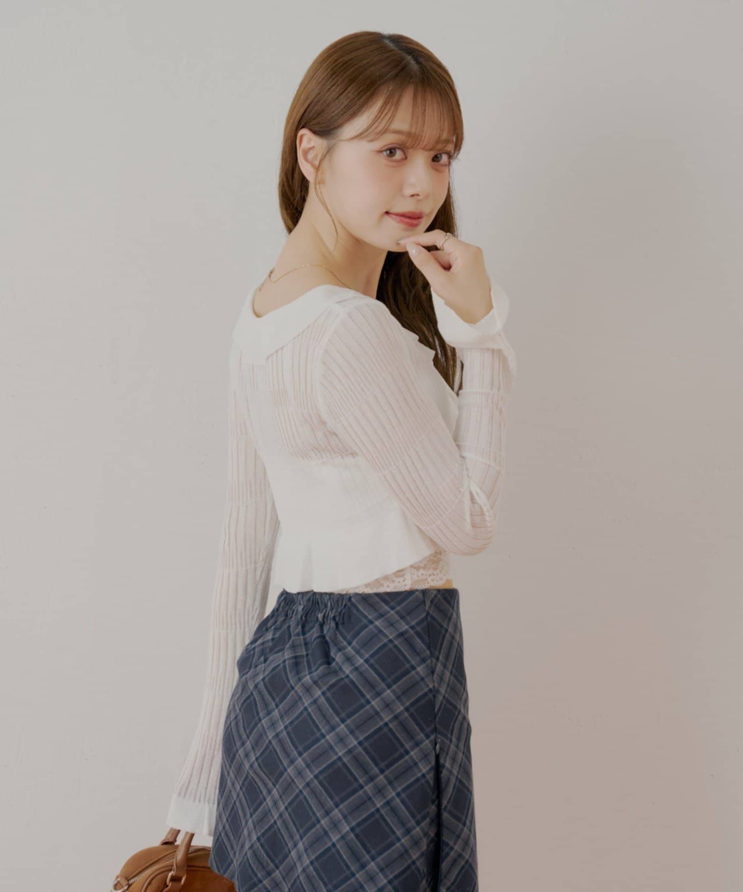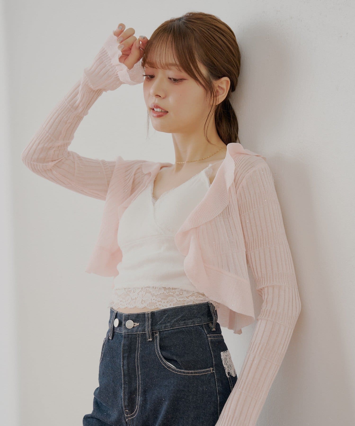 ・さらっと羽織れるシアーカーディガンなので、温度調節が難しいこの時期にも◎