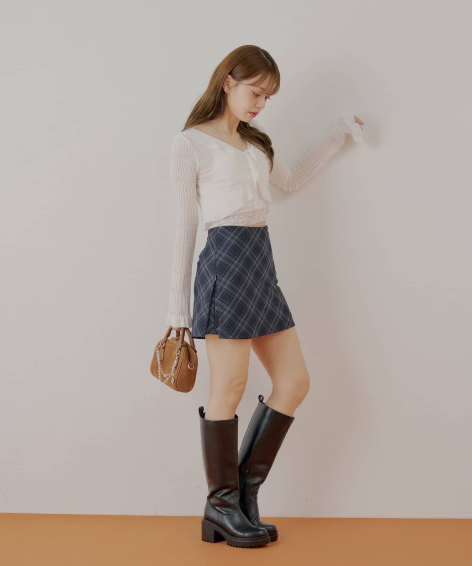 ・ショート丈なためハイウエストボトムスとの相性抜群で、スタイルアップ効果も◎