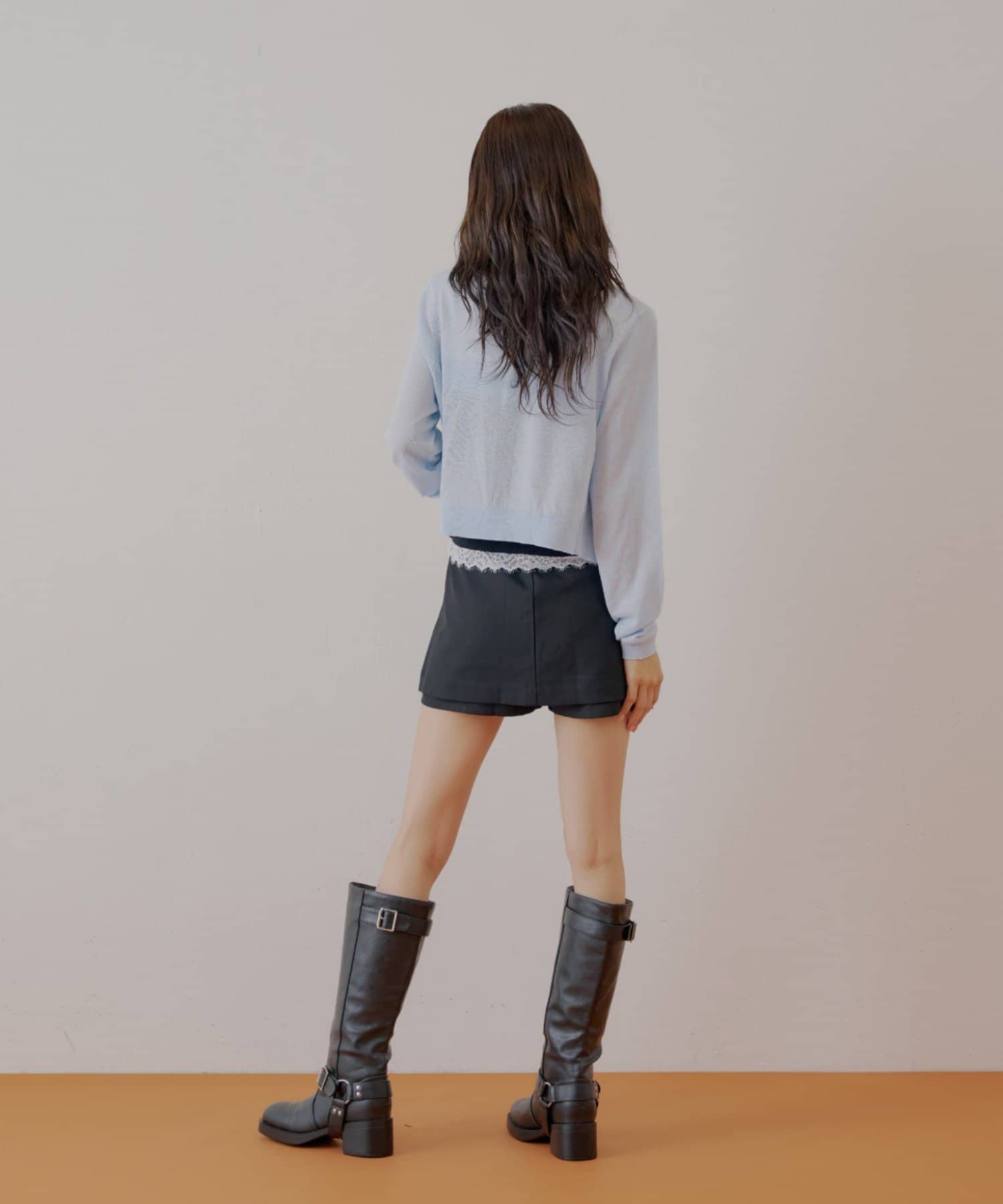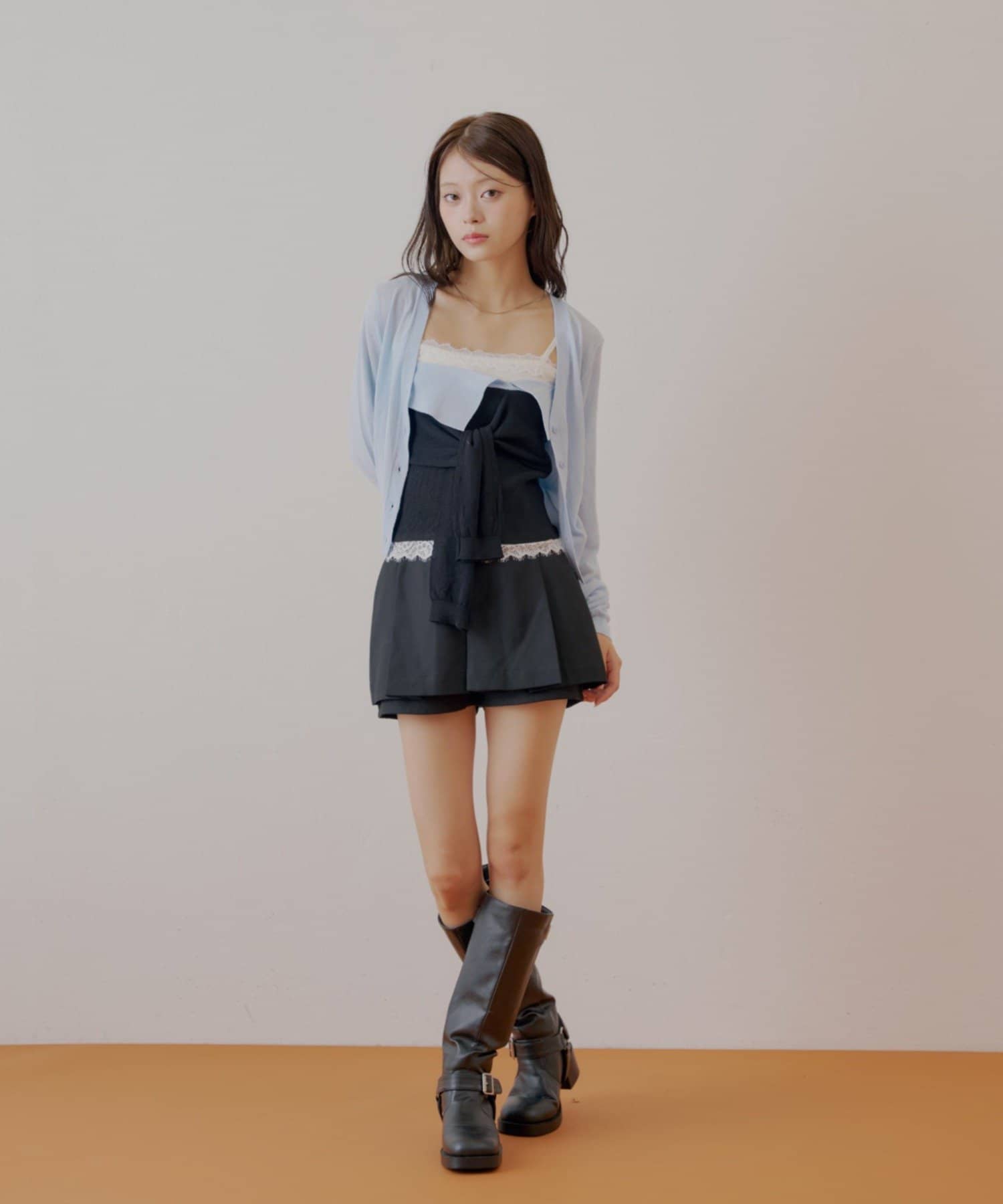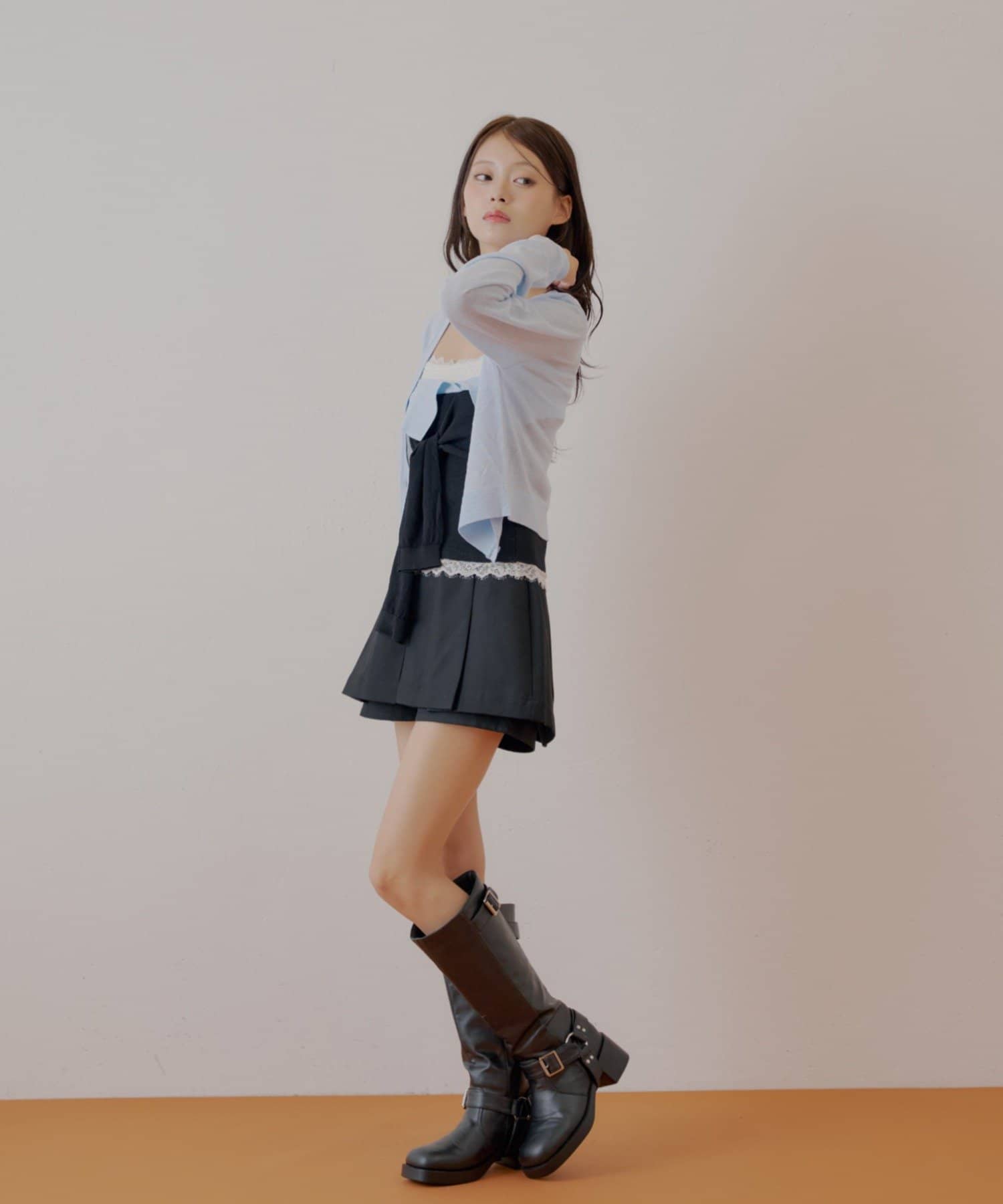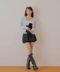 ・ミニボトムとの相性抜群で、フェミニンなスタイルに仕上がります。