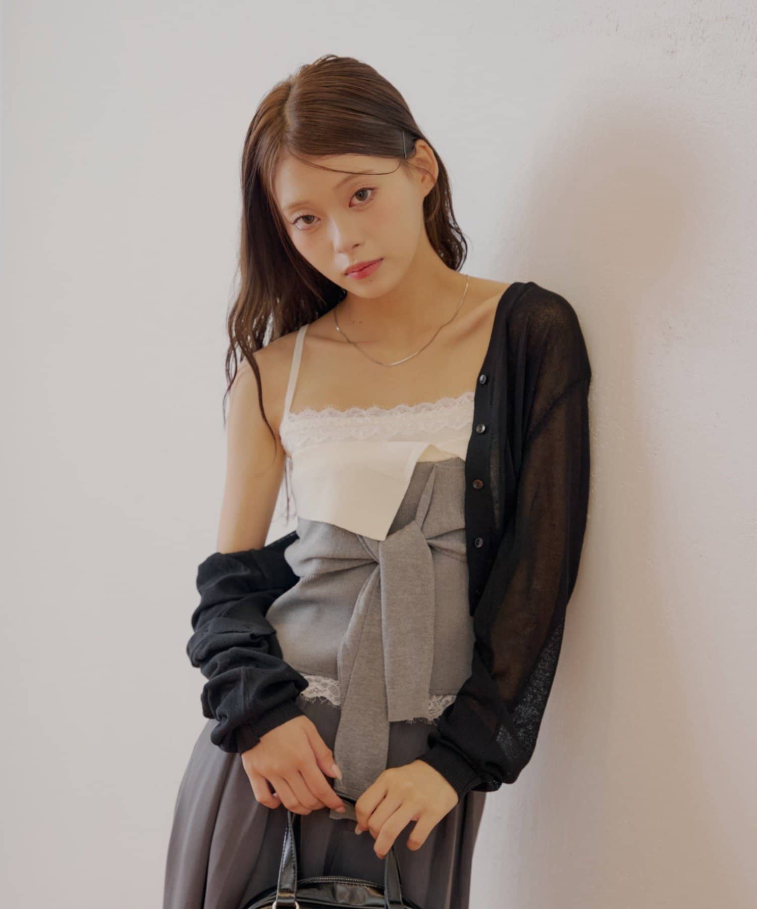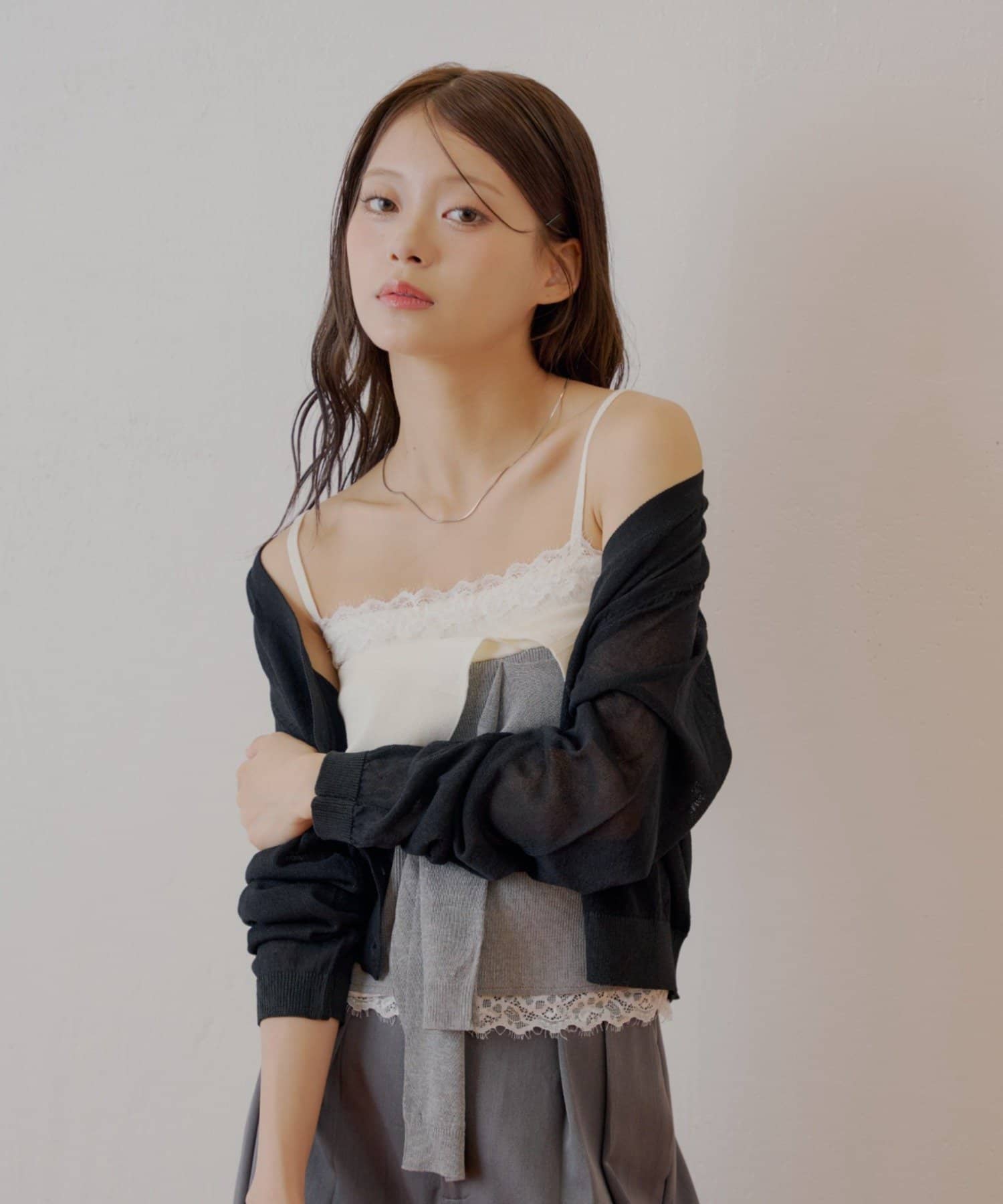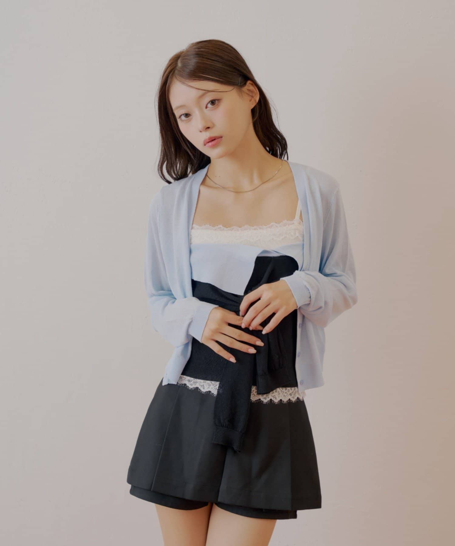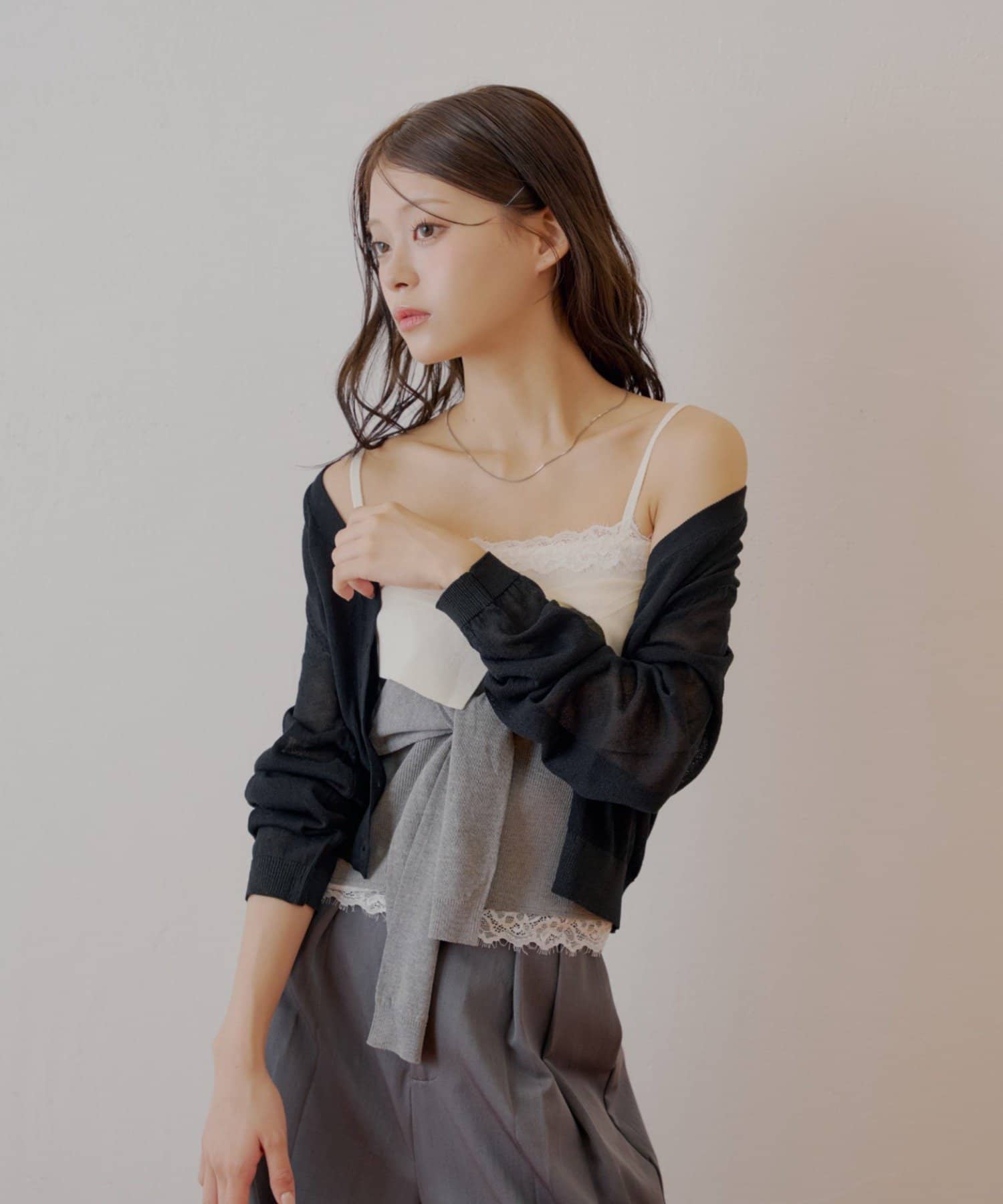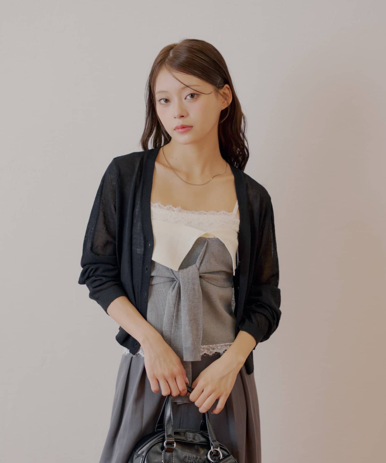 ・ふんわりと軽いシアーカーディガンは、羽織るだけで旬のスタイリングに。