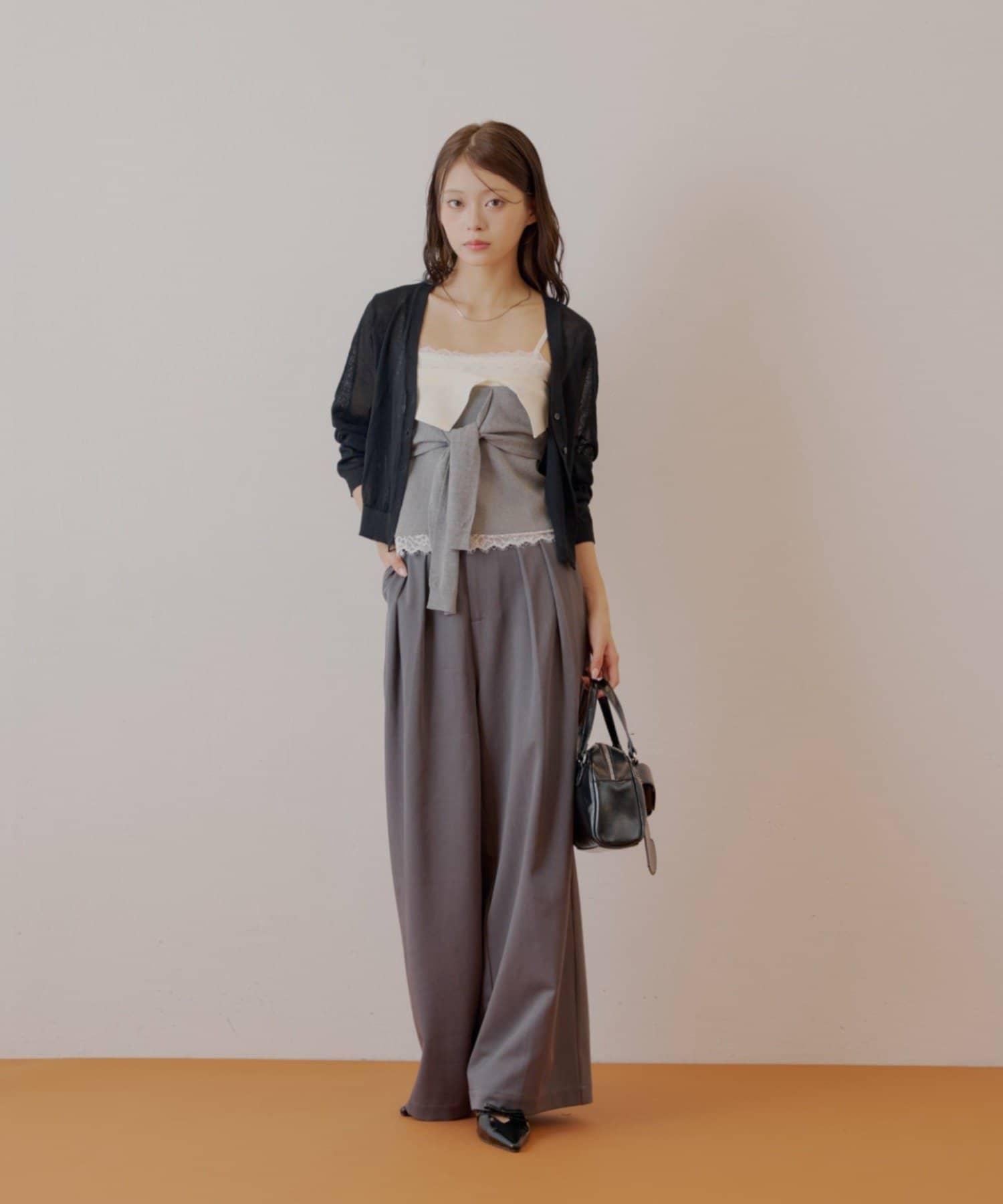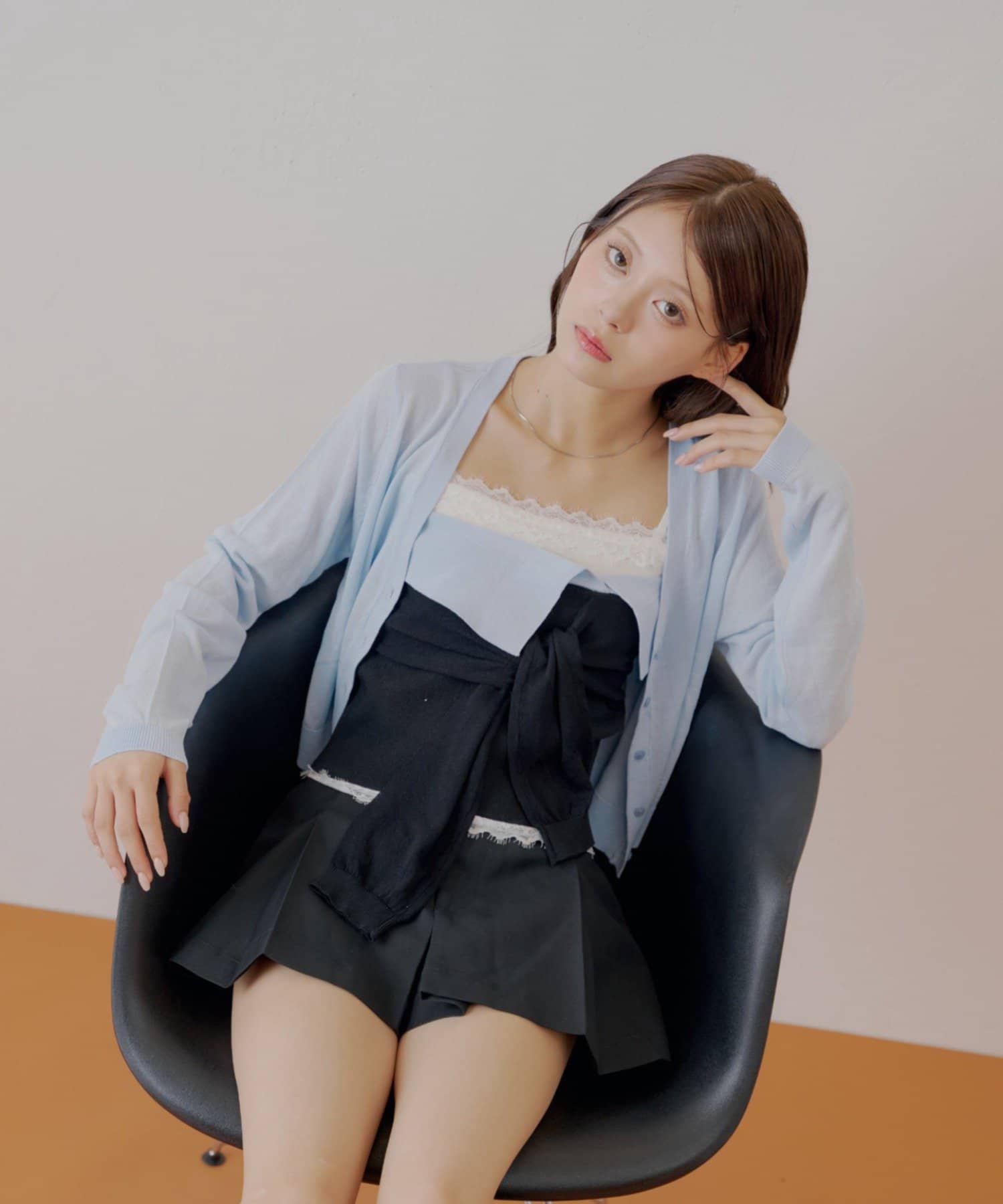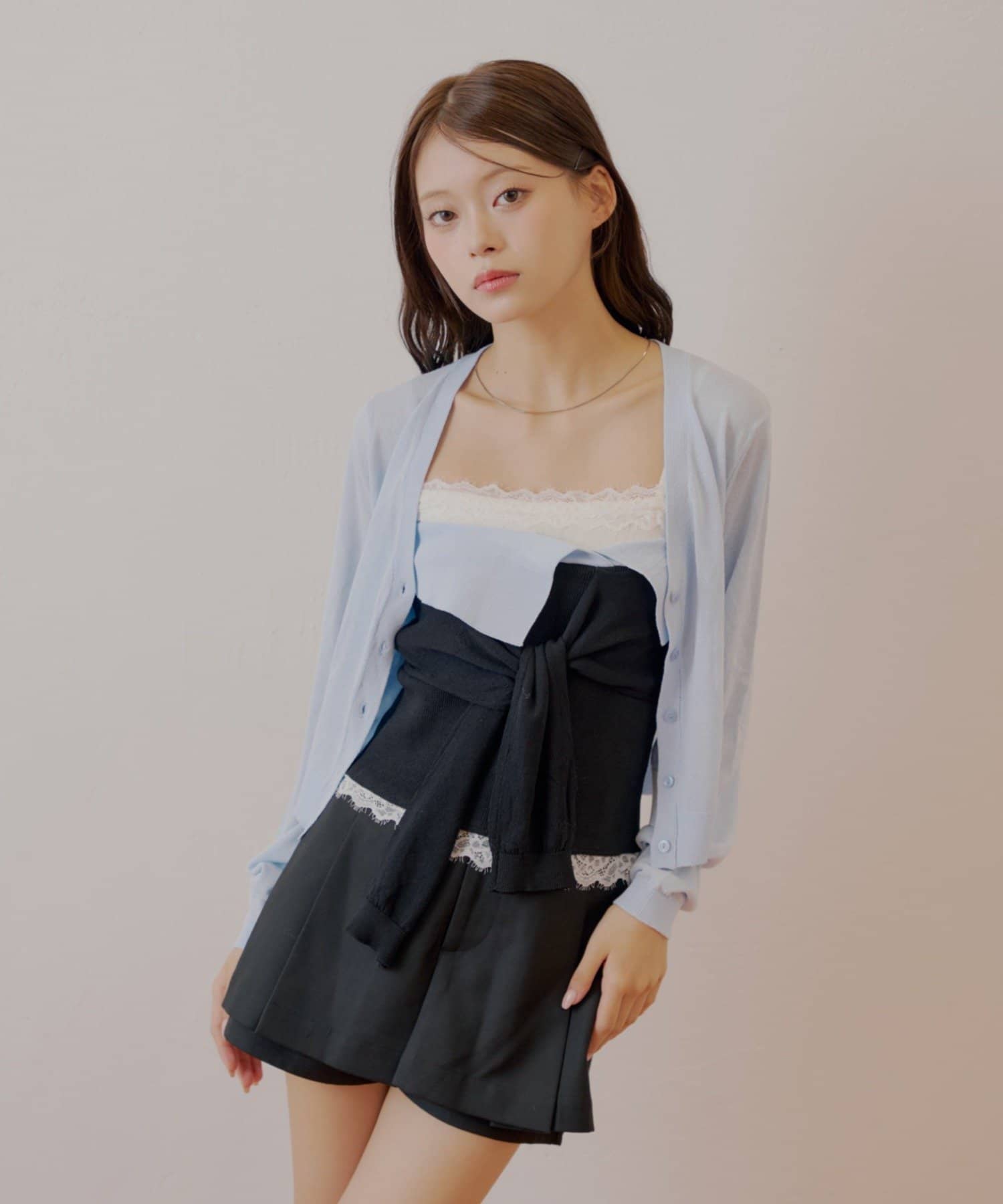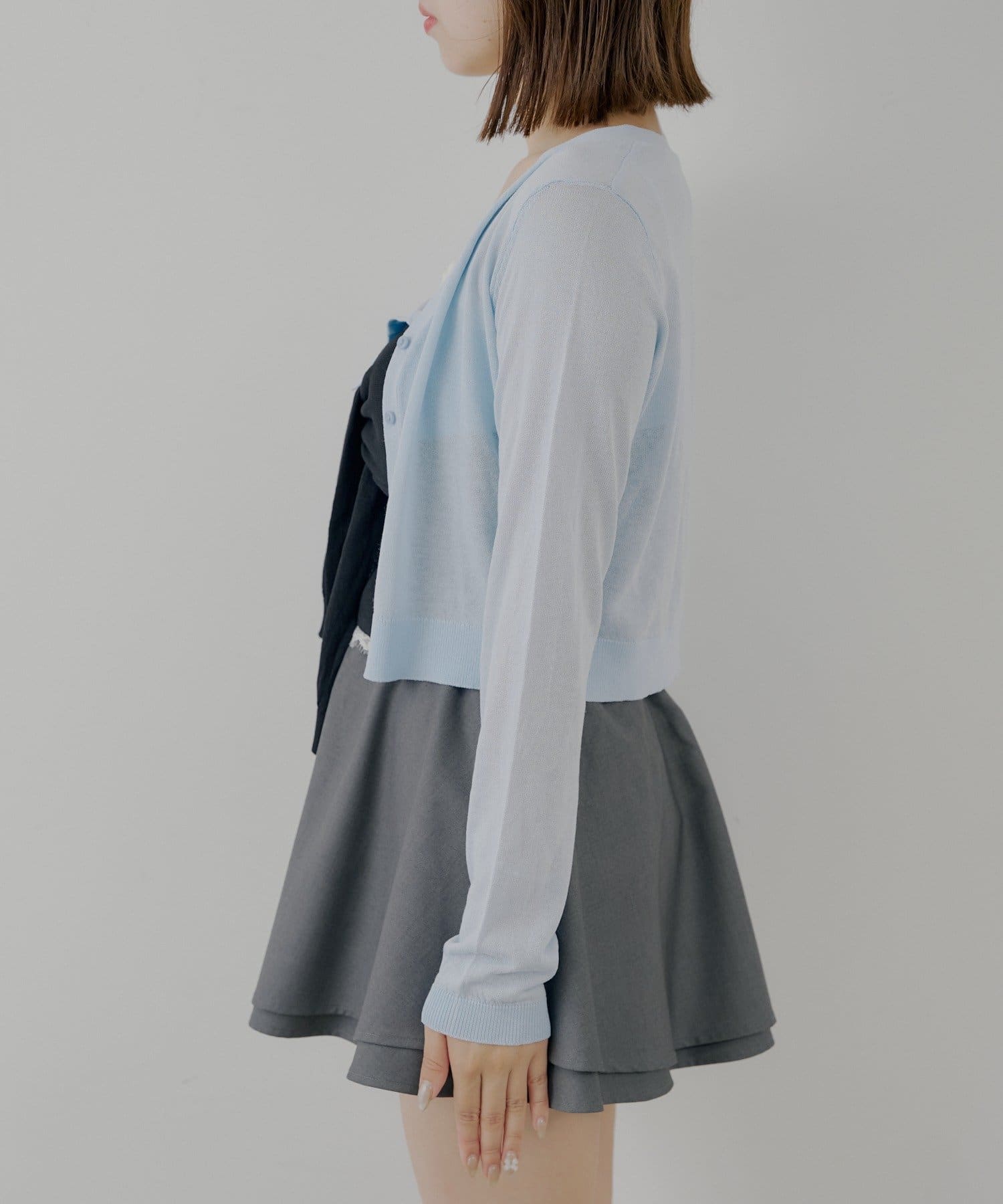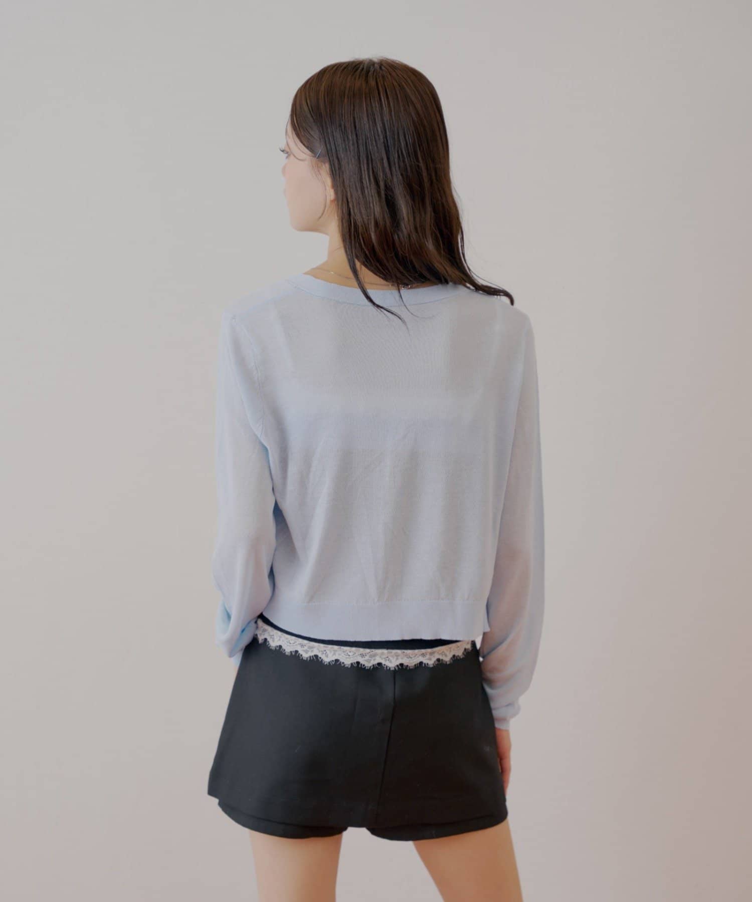 ・ふんわりと軽いシアーカーディガンは、羽織るだけで旬のスタイリングに。