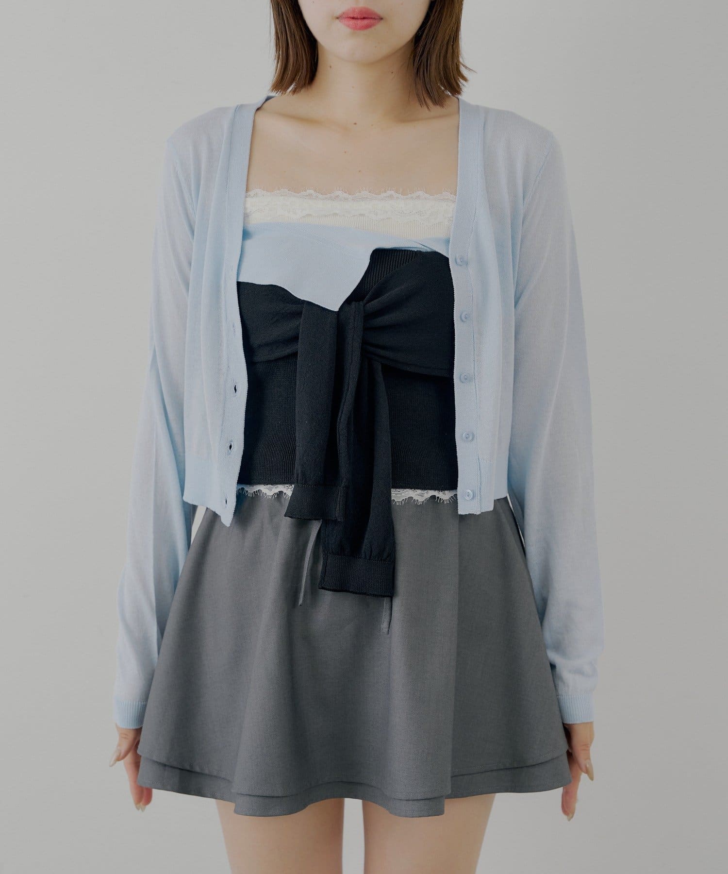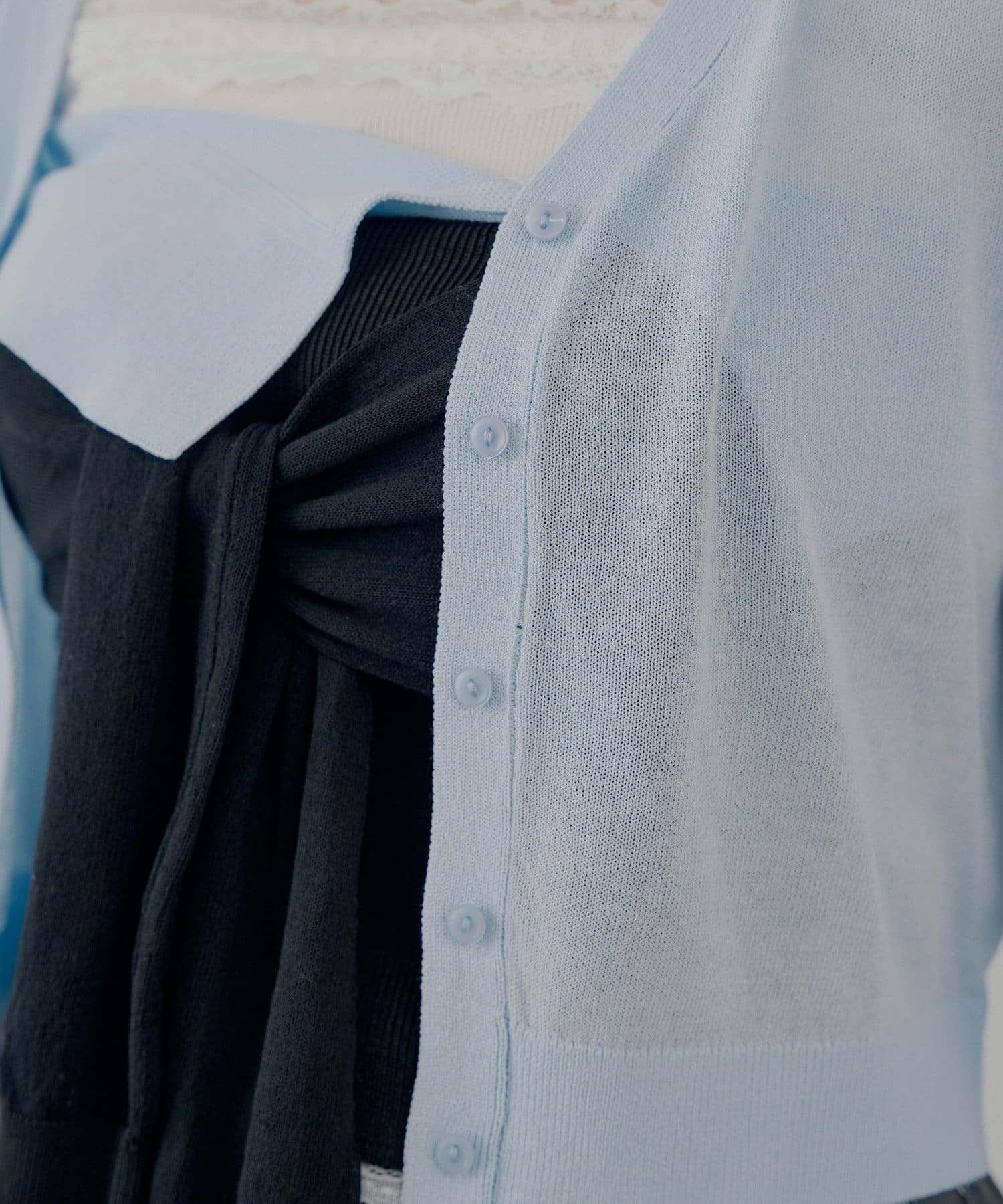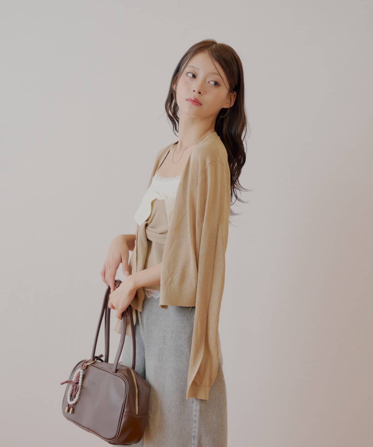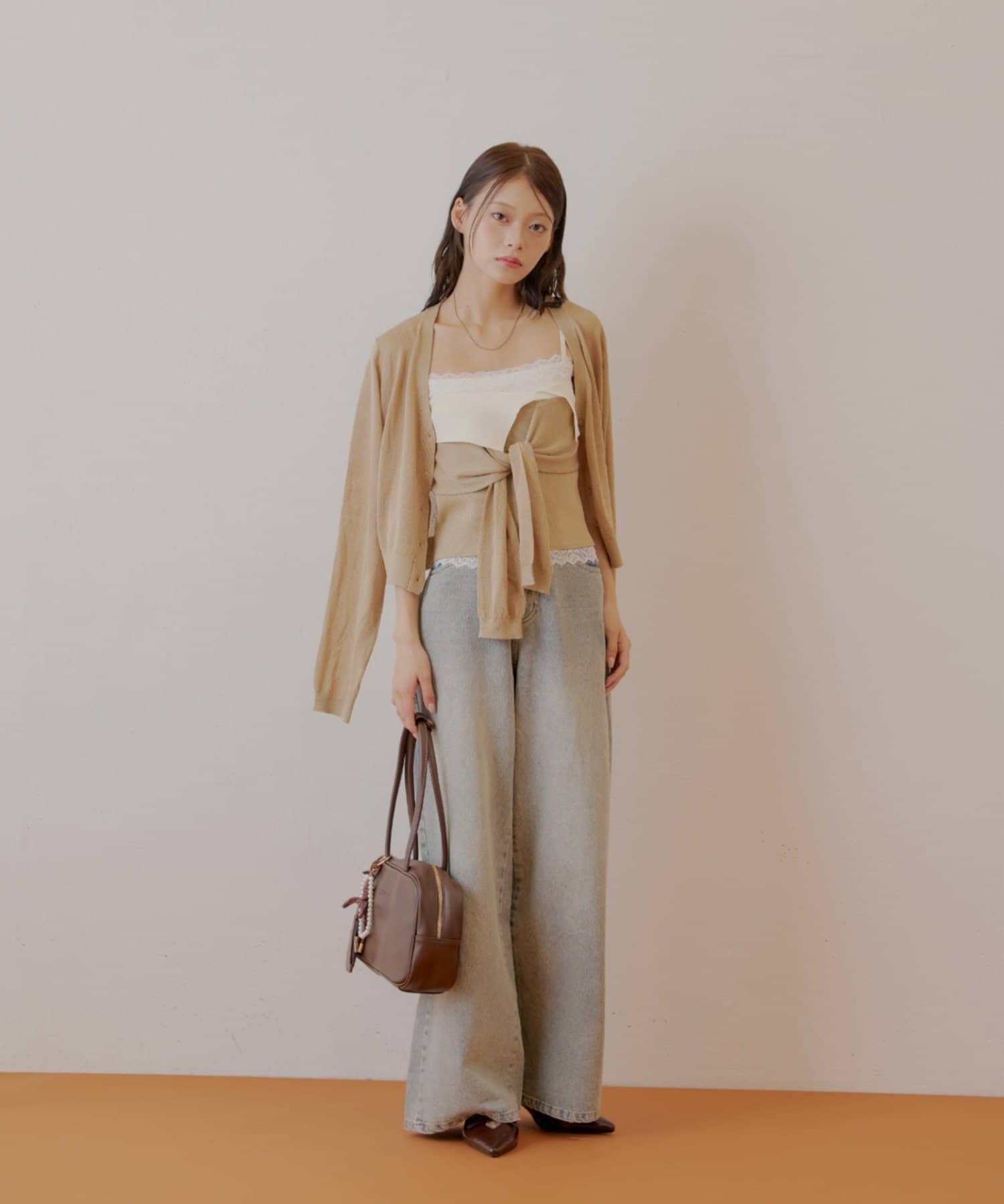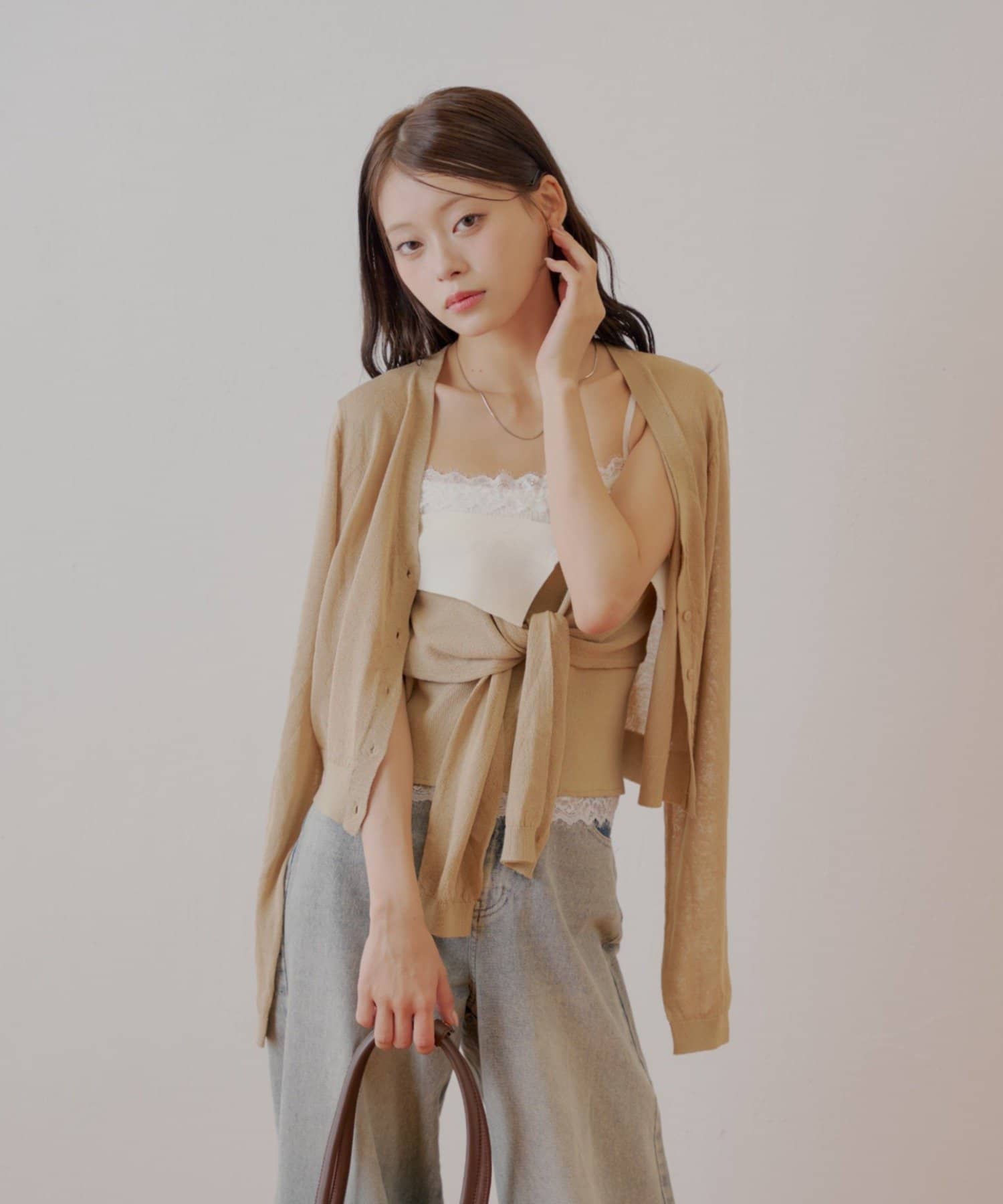 一枚でこなれ感のあるスタイリングが叶うシアーカーディガン+ねじりシャツドッキングベアセット