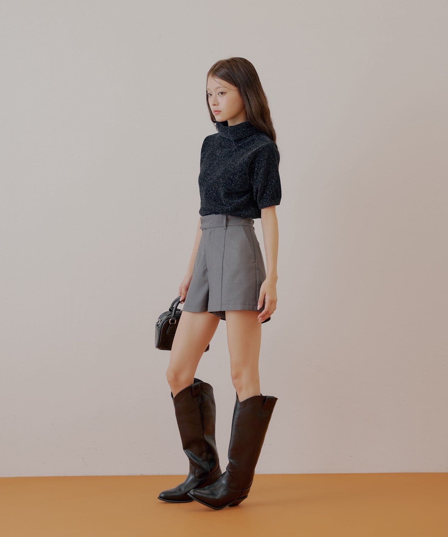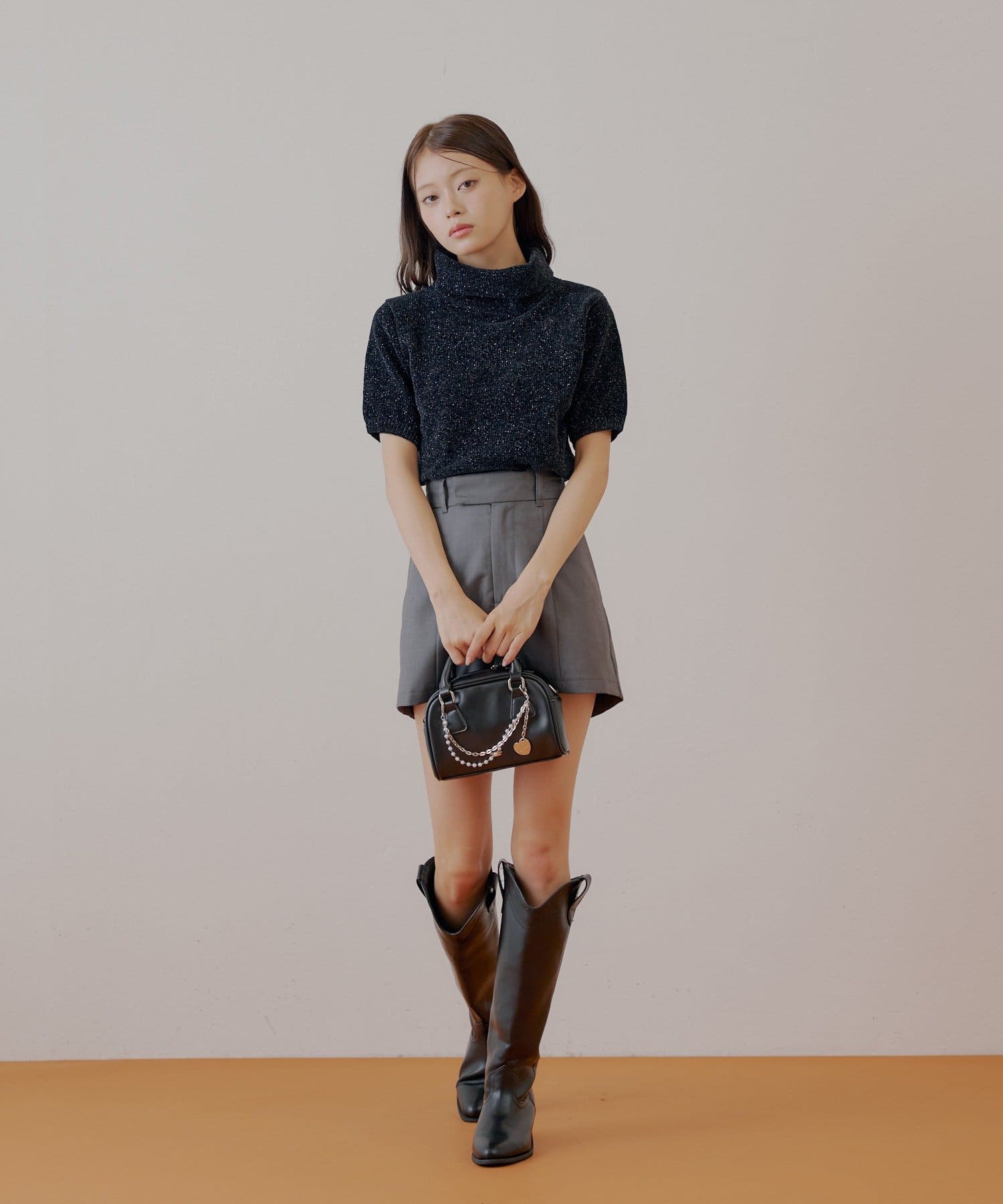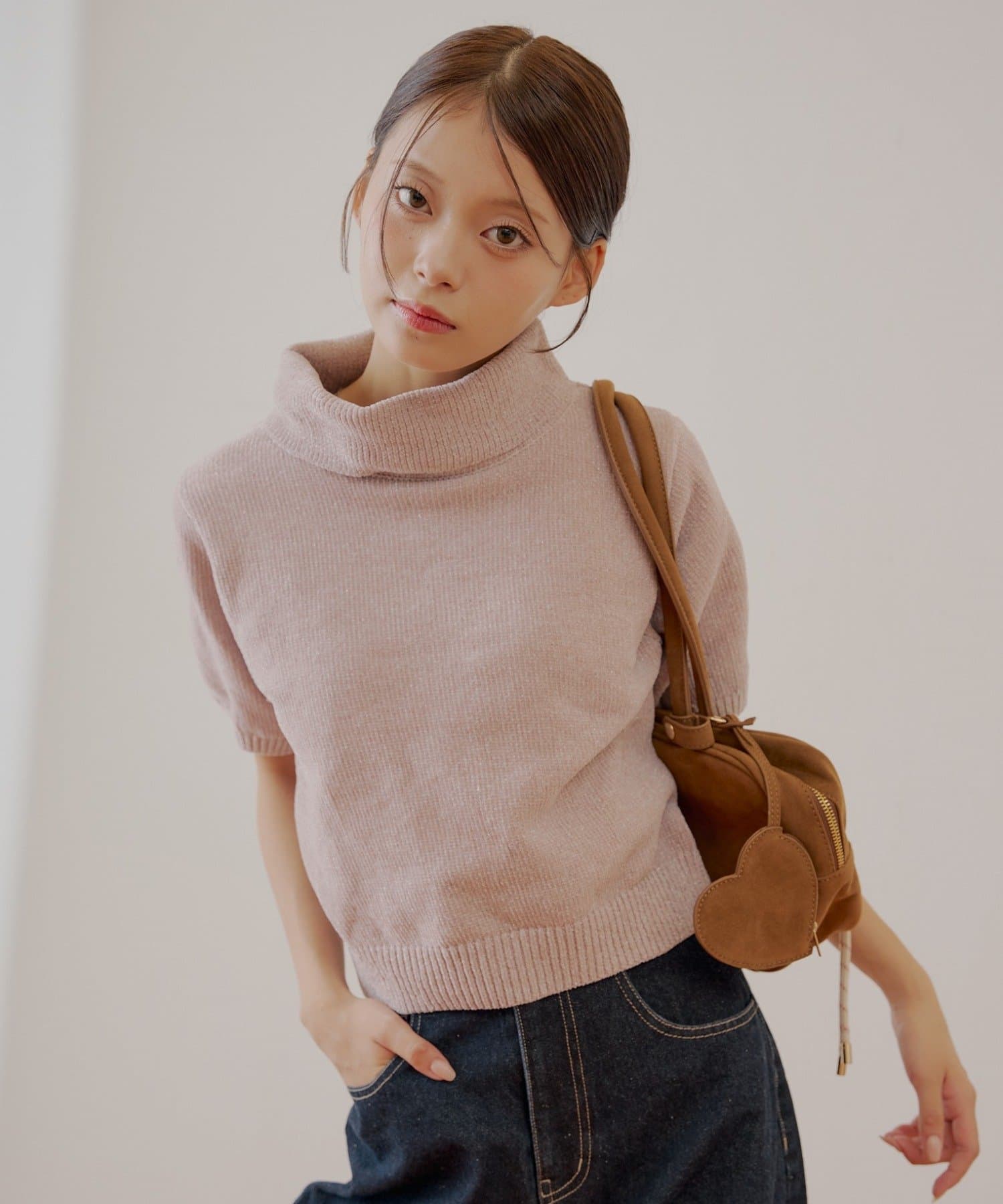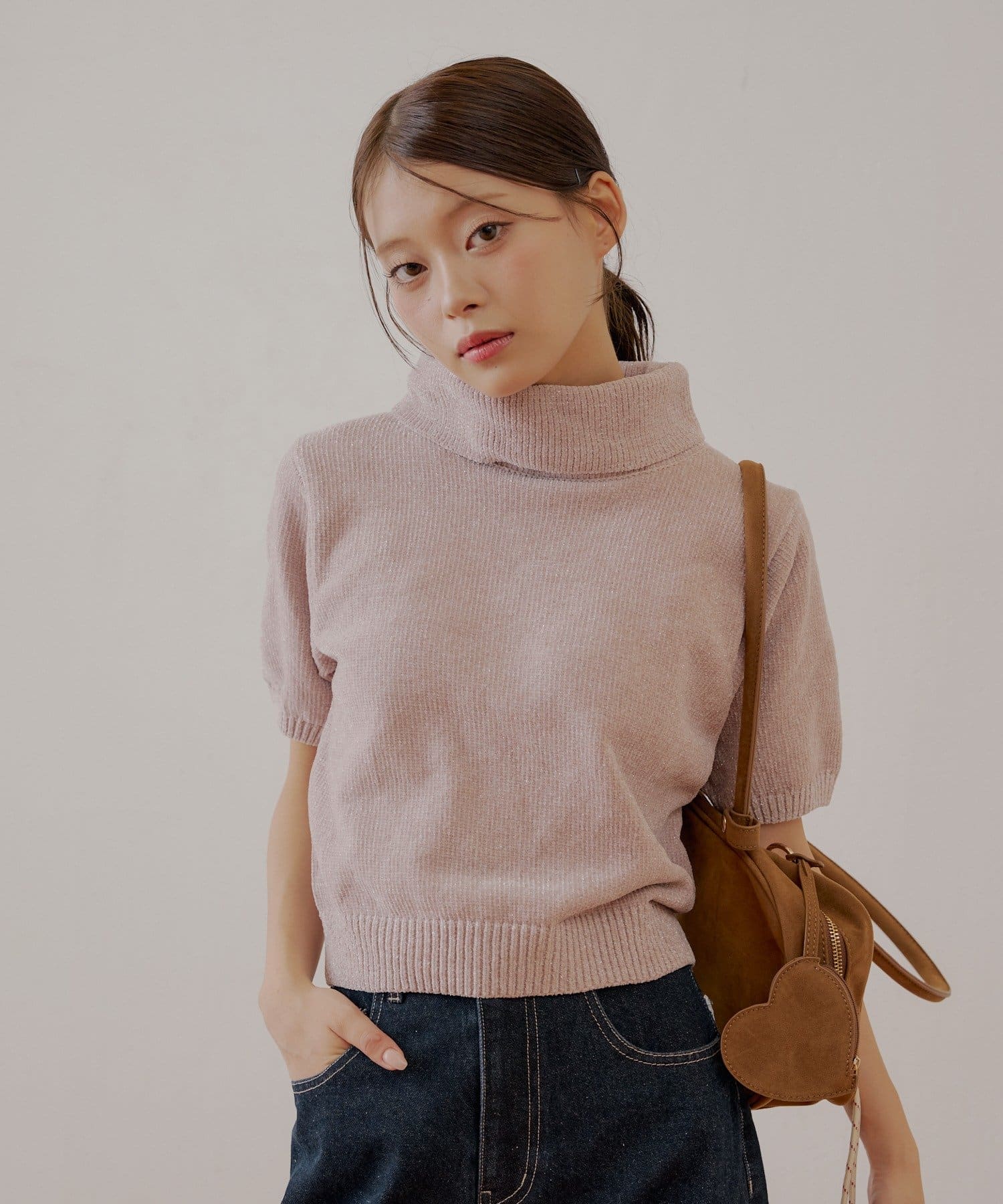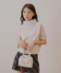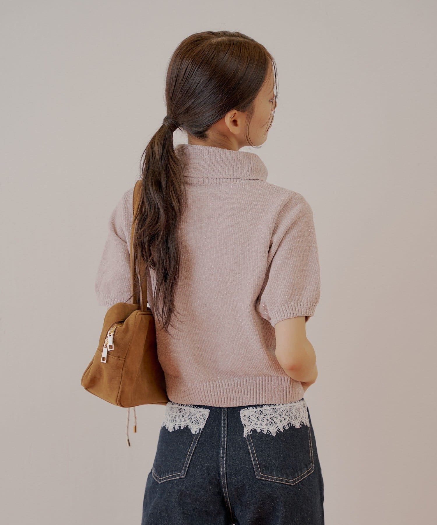 上品な光沢を放つラメベロアが魅力のタートル半袖ニット登場!