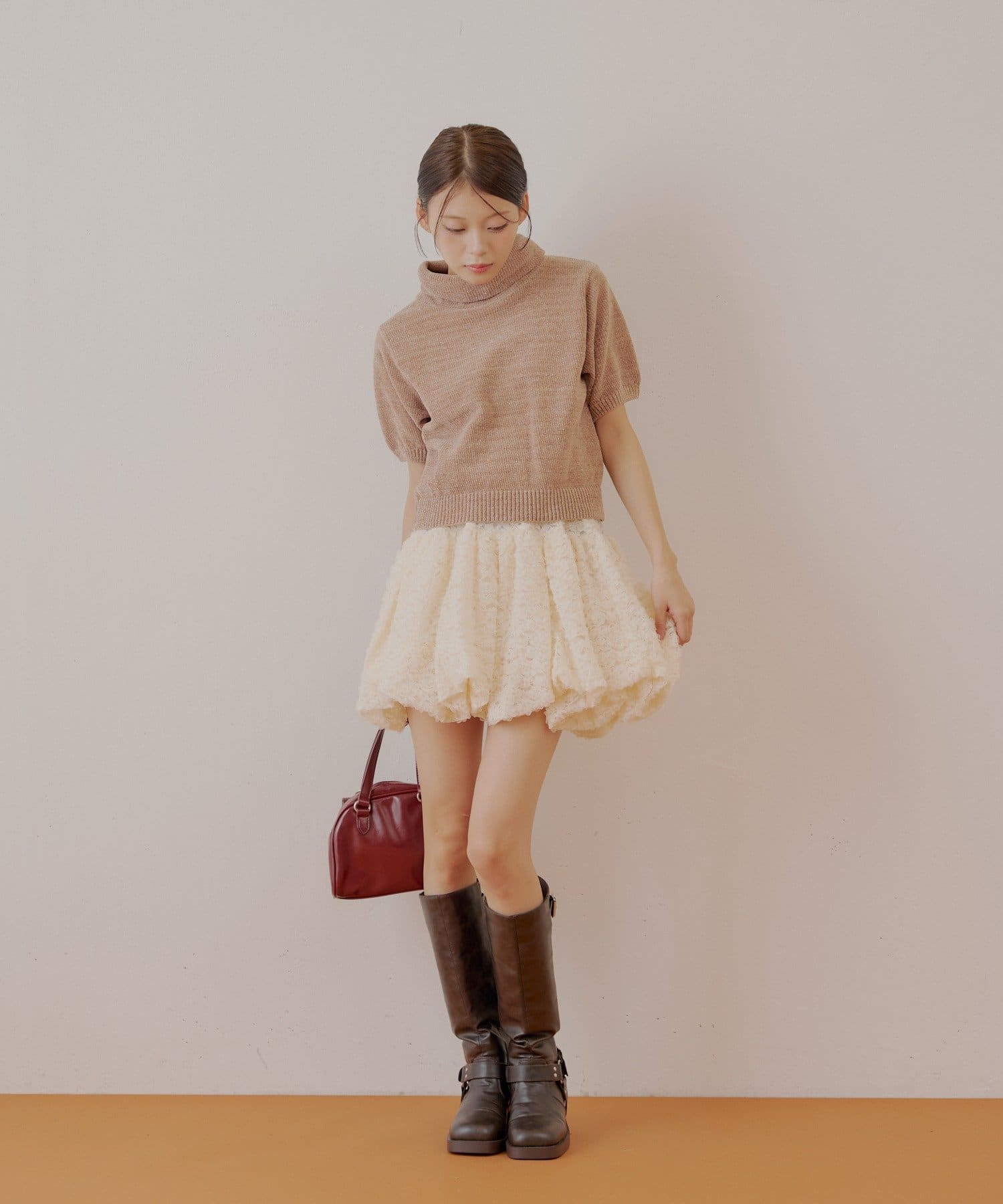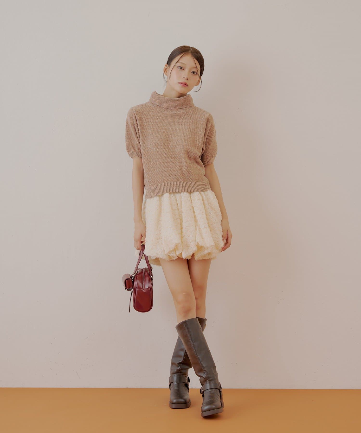・ミニボトムと相性抜群でフェミニンなスタイルに仕上がります。