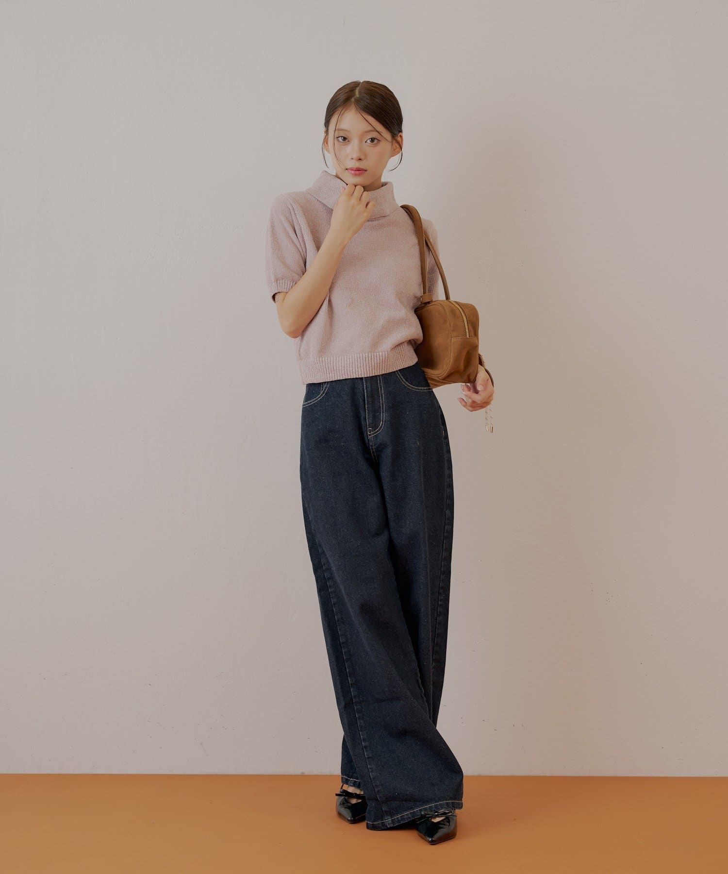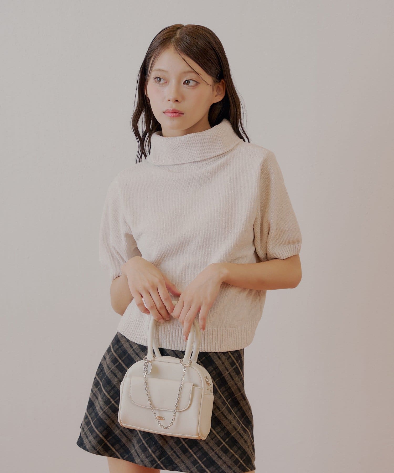 ・タートルネックが首元を優しく包み込み、上品な印象を与えます。