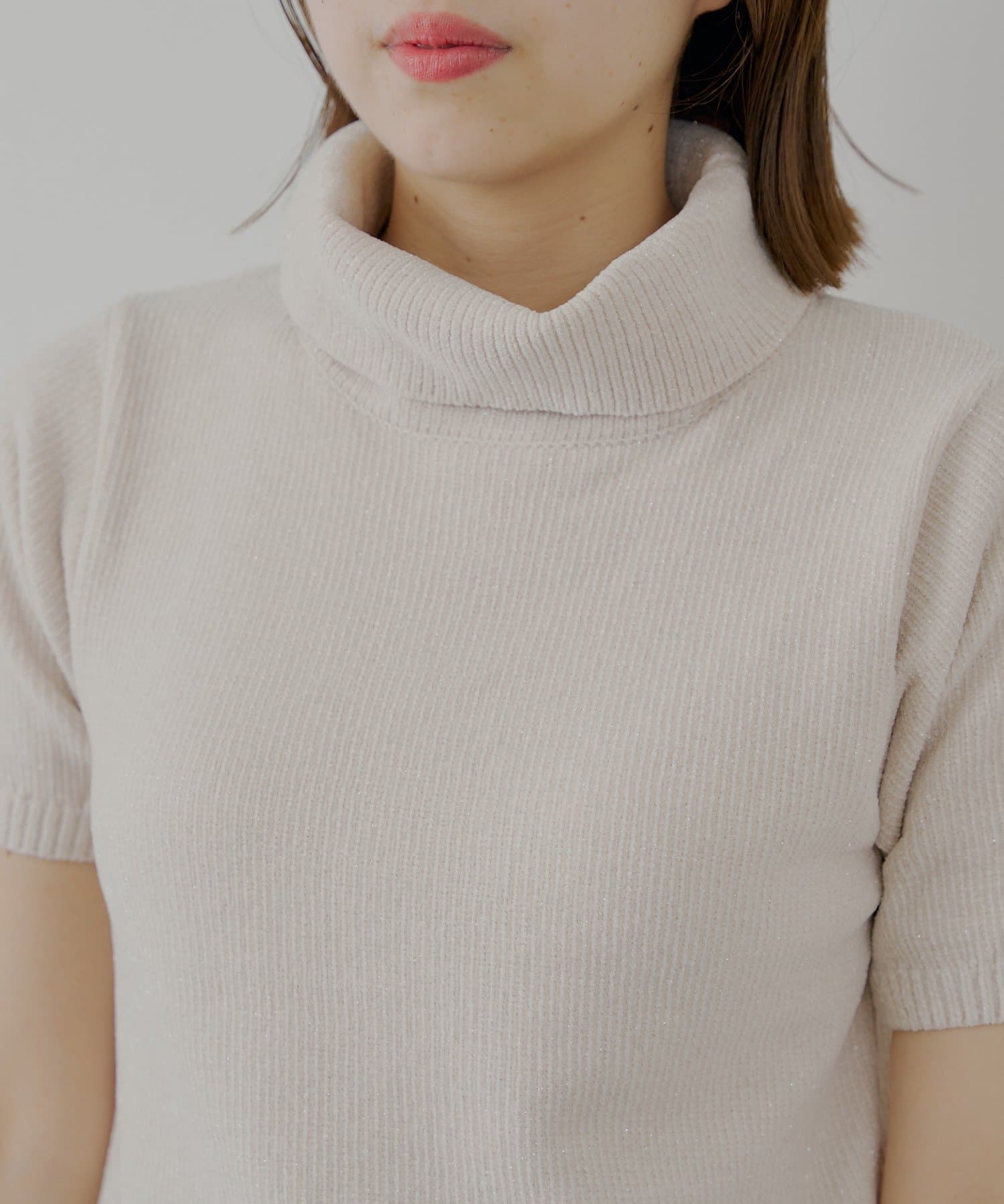 【Chico】ラメベロアタートル半袖ニット