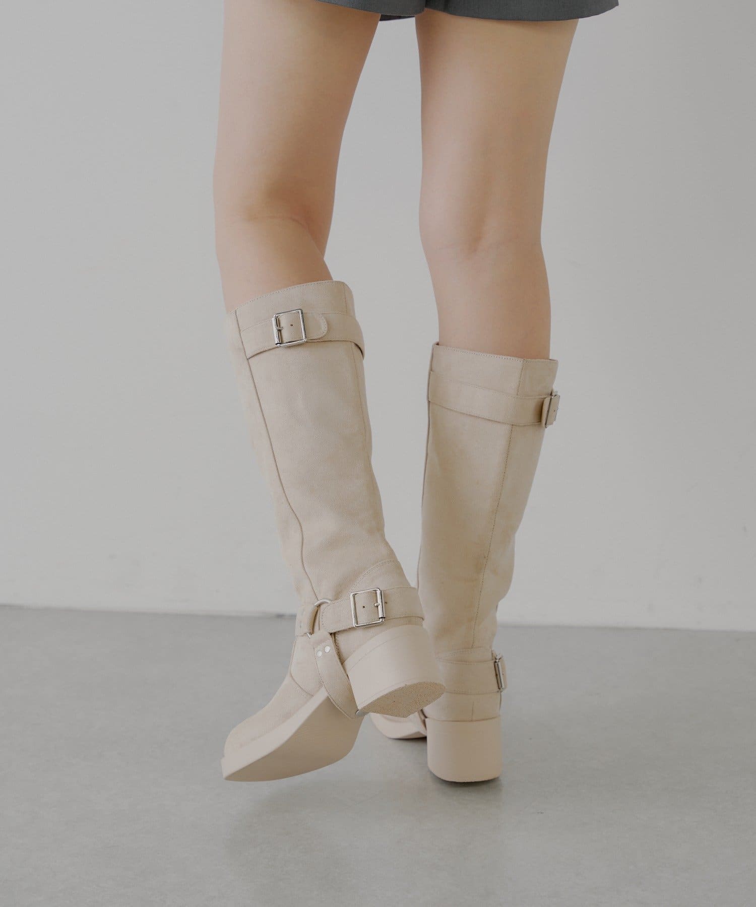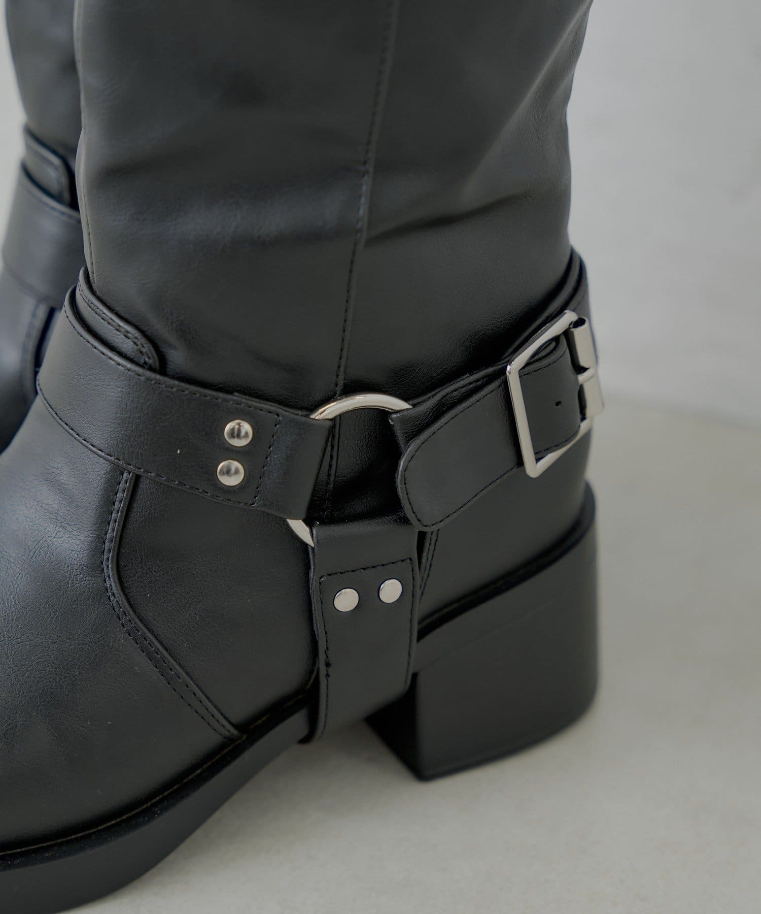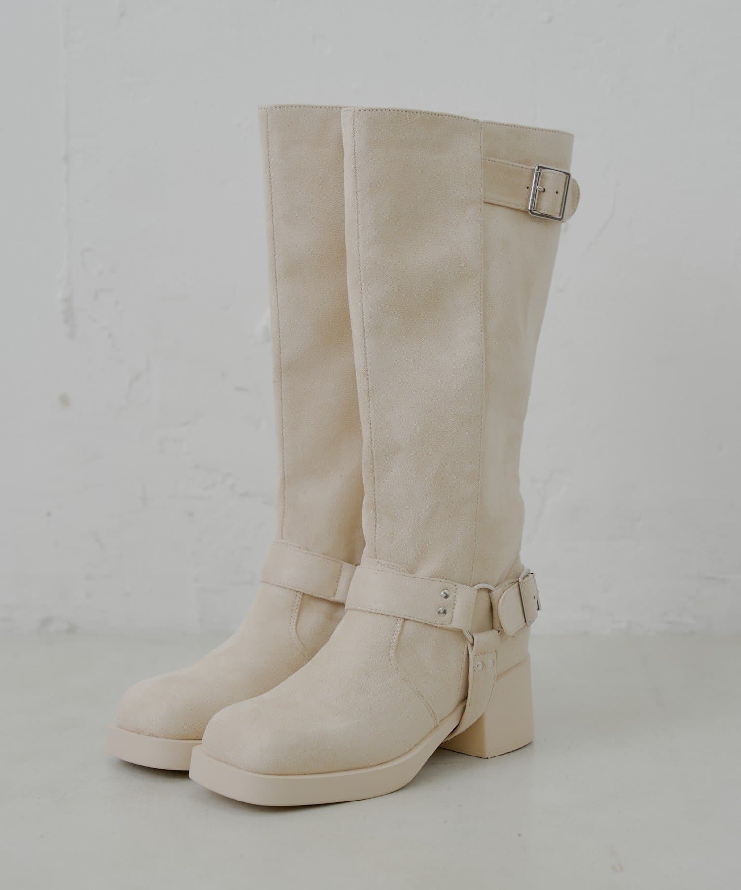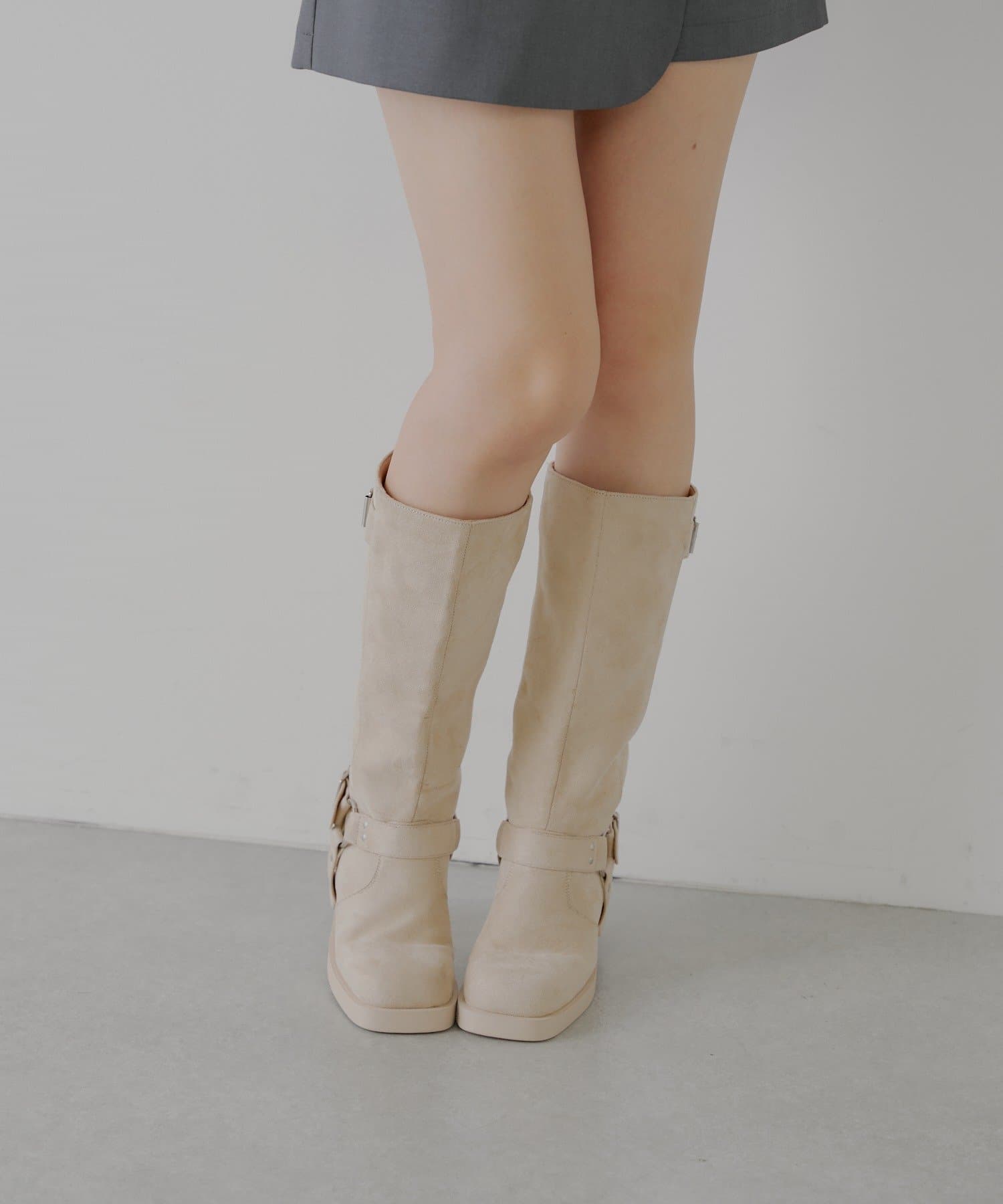 ・べルトデザインが目を惹くロング丈エンジニアブーツ。