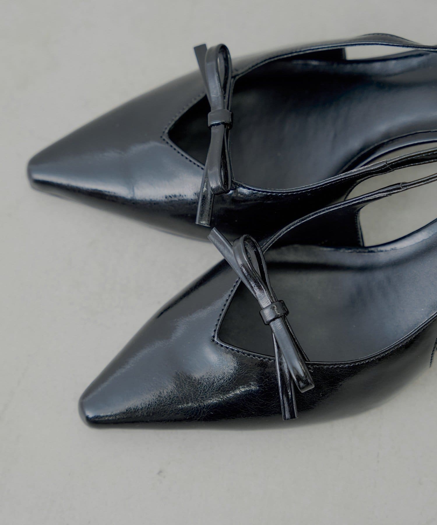 ・リボンがシンプルなデザインにフェミニンなアクセントを添えるミュール。
