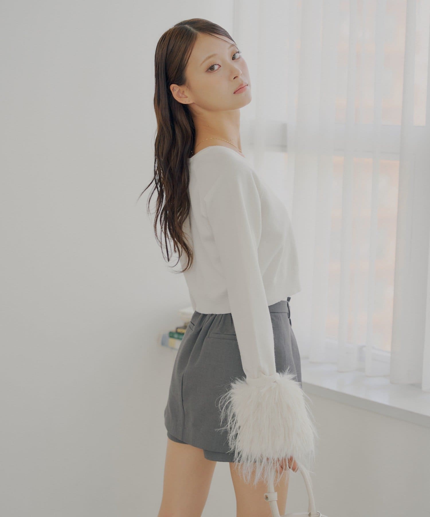 ・ショート丈なのでハイウエストのボトムスと好相性です。