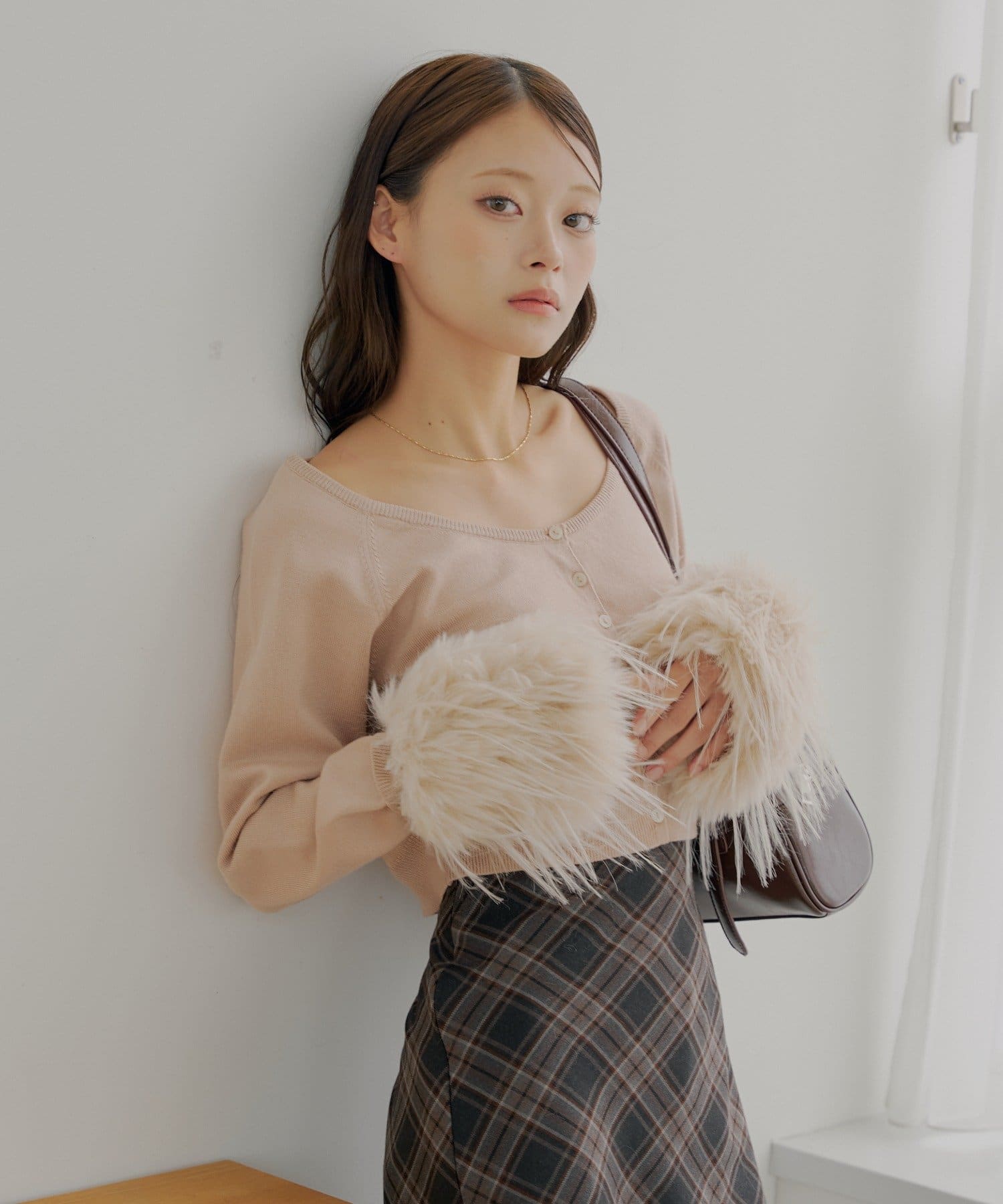 ふわふわの袖ファーが目を惹くカーディガン登場!