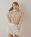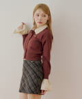 襟と袖のフリルが目を惹く襟取り外しフロントボタンニット