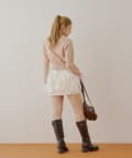 ・ミニボトムを合わせるとフェミニンなスタイルにも。