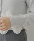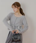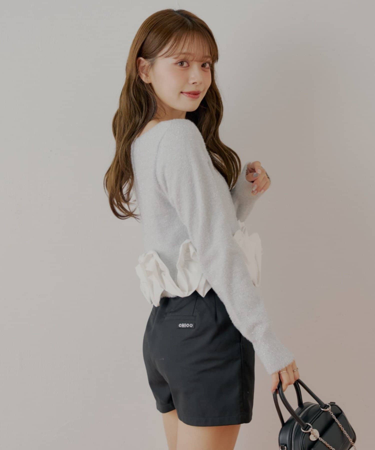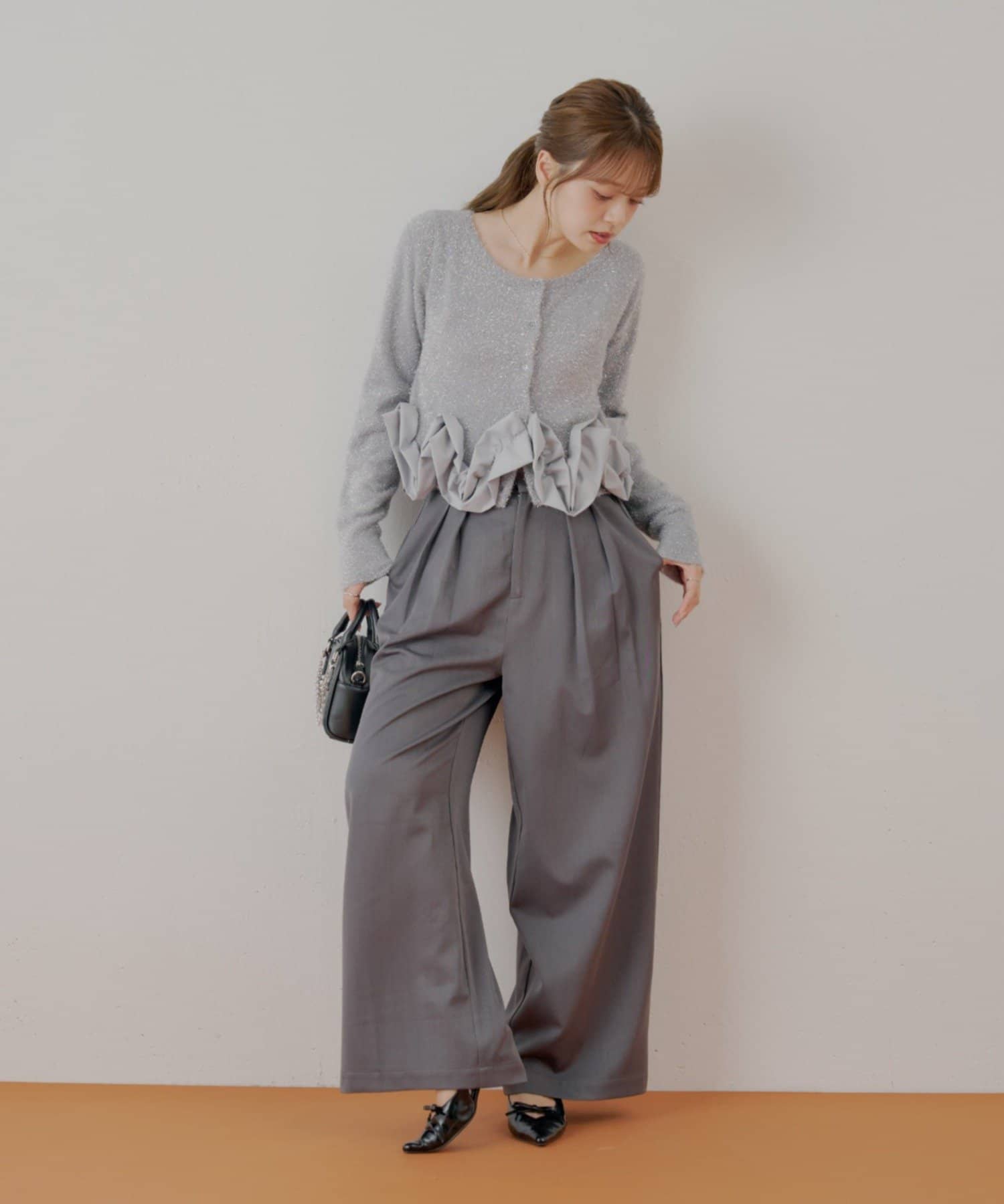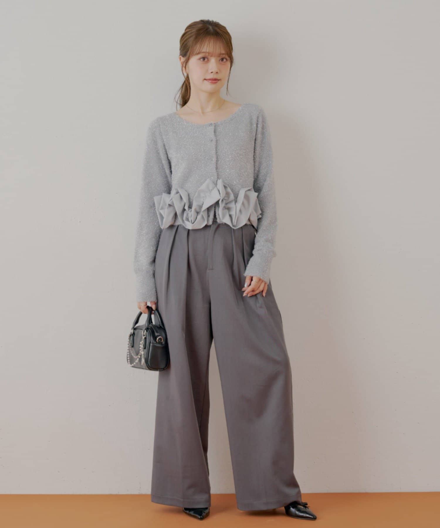 ニットとシャツのドッキングがポイントのラメカーディガン