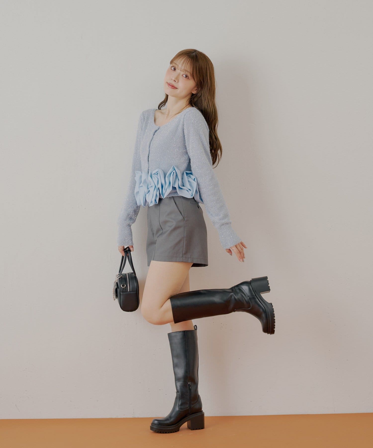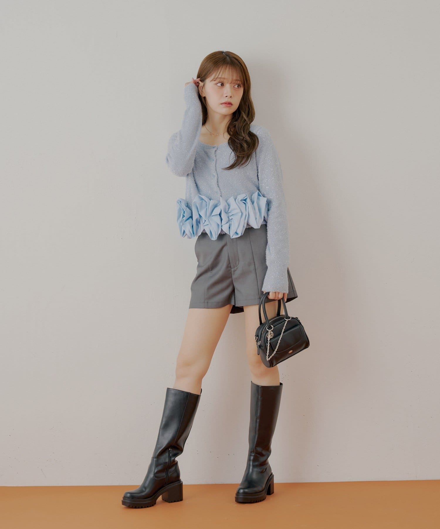・ミニボトム合わせでフェミニンなスタイルに仕上がります。