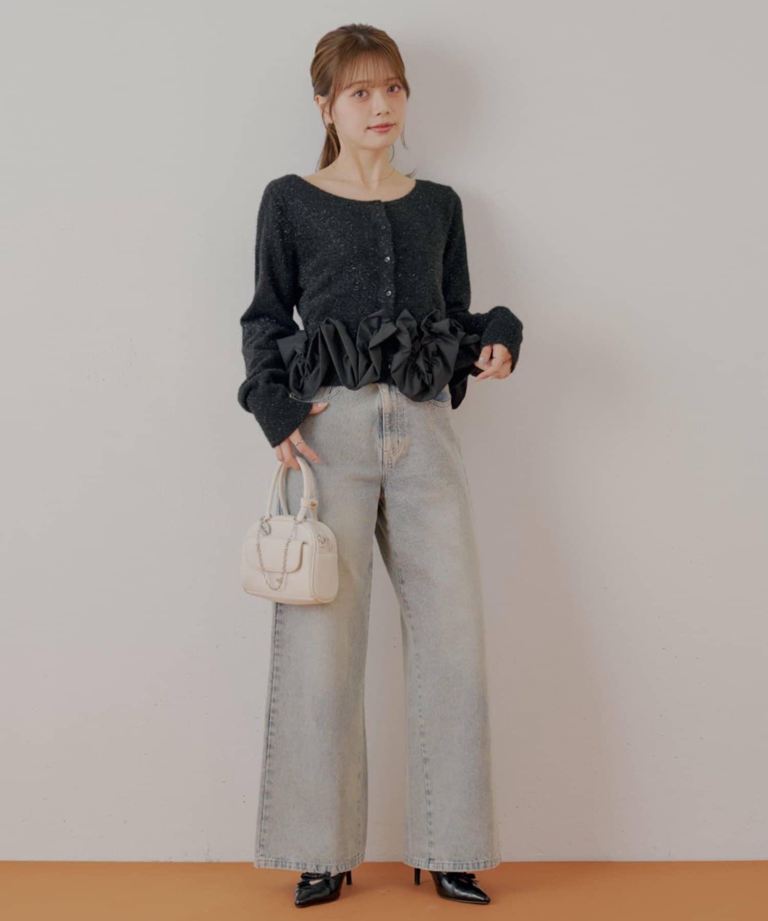 ・デニムパンツと合わせると、程よくカジュアルダウンした大人可愛いスタイルも◎