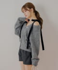 肩のベロアリボンが目を惹くカーディガン♡