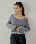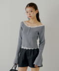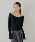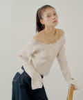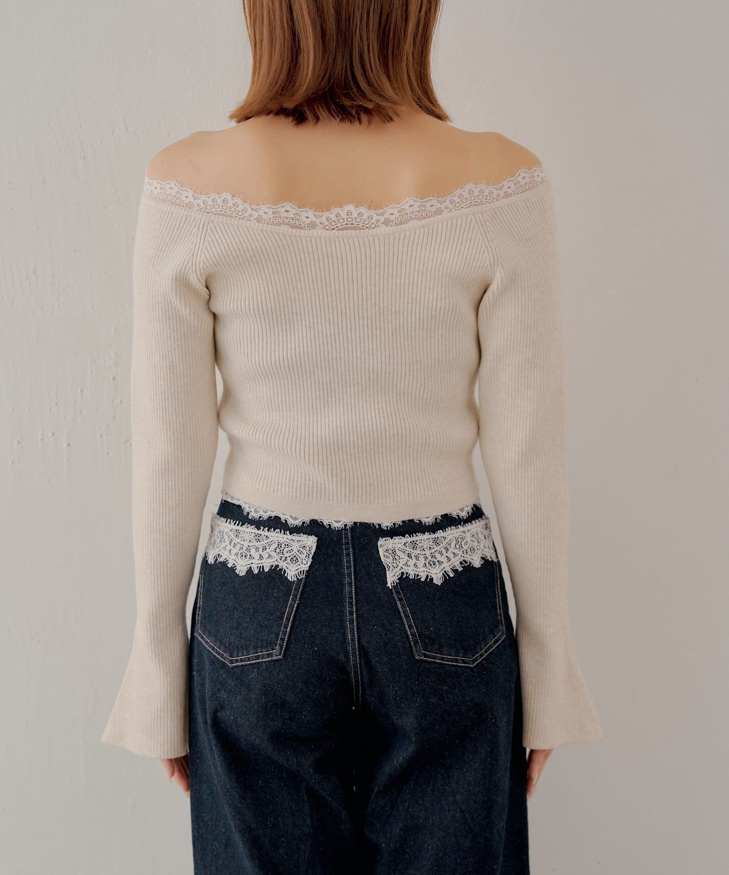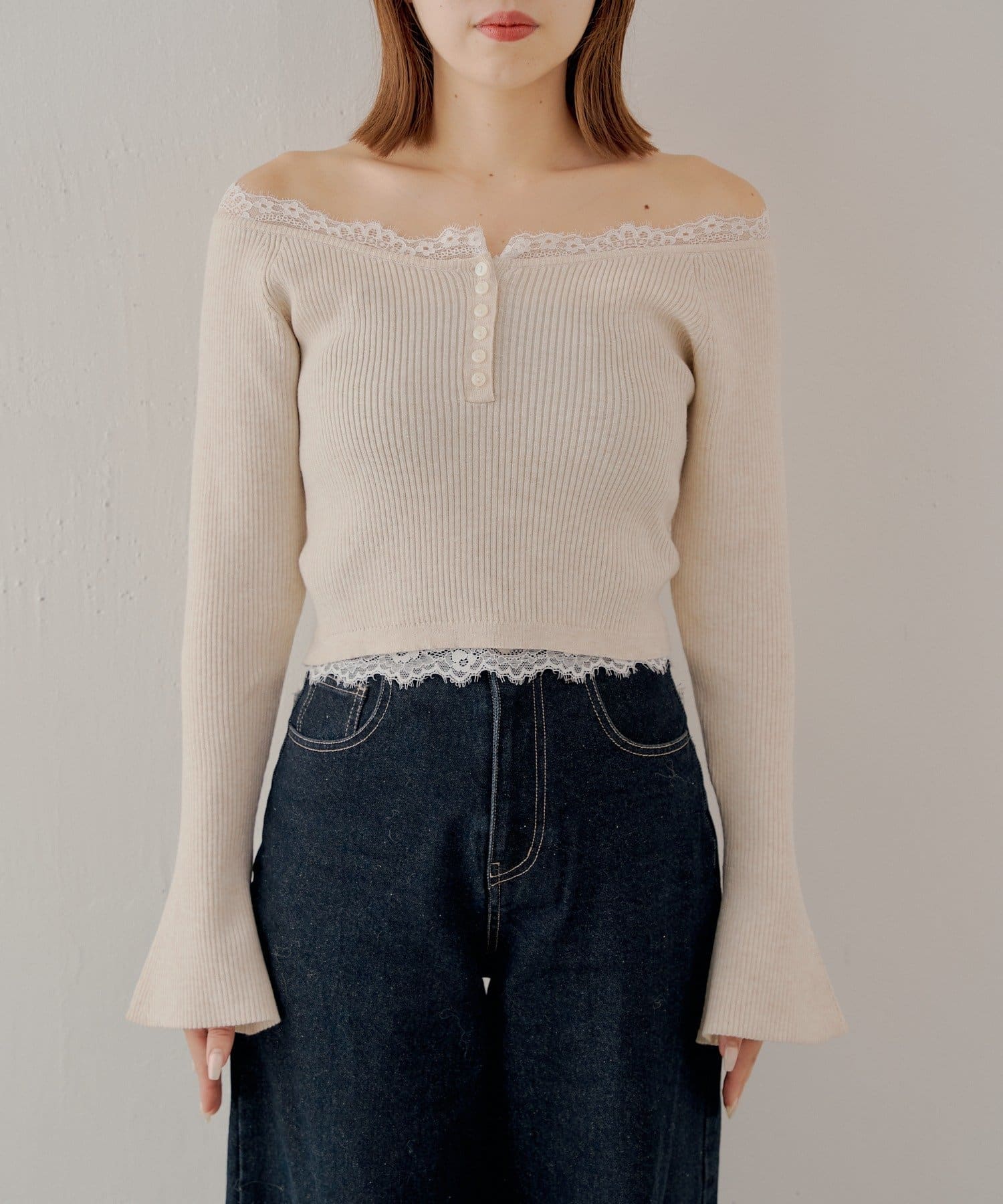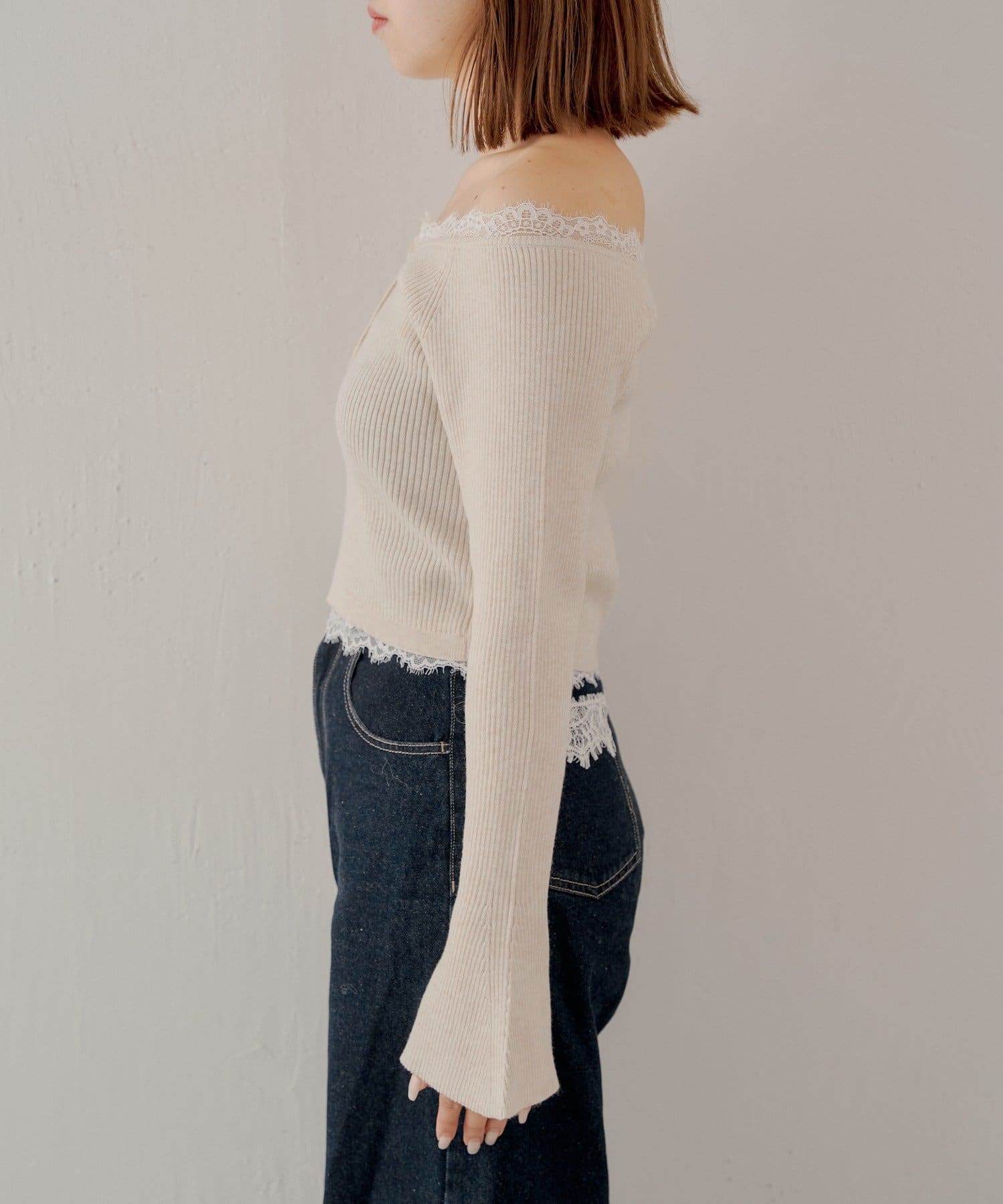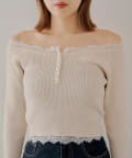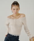 オフショルレースヘンリーニット