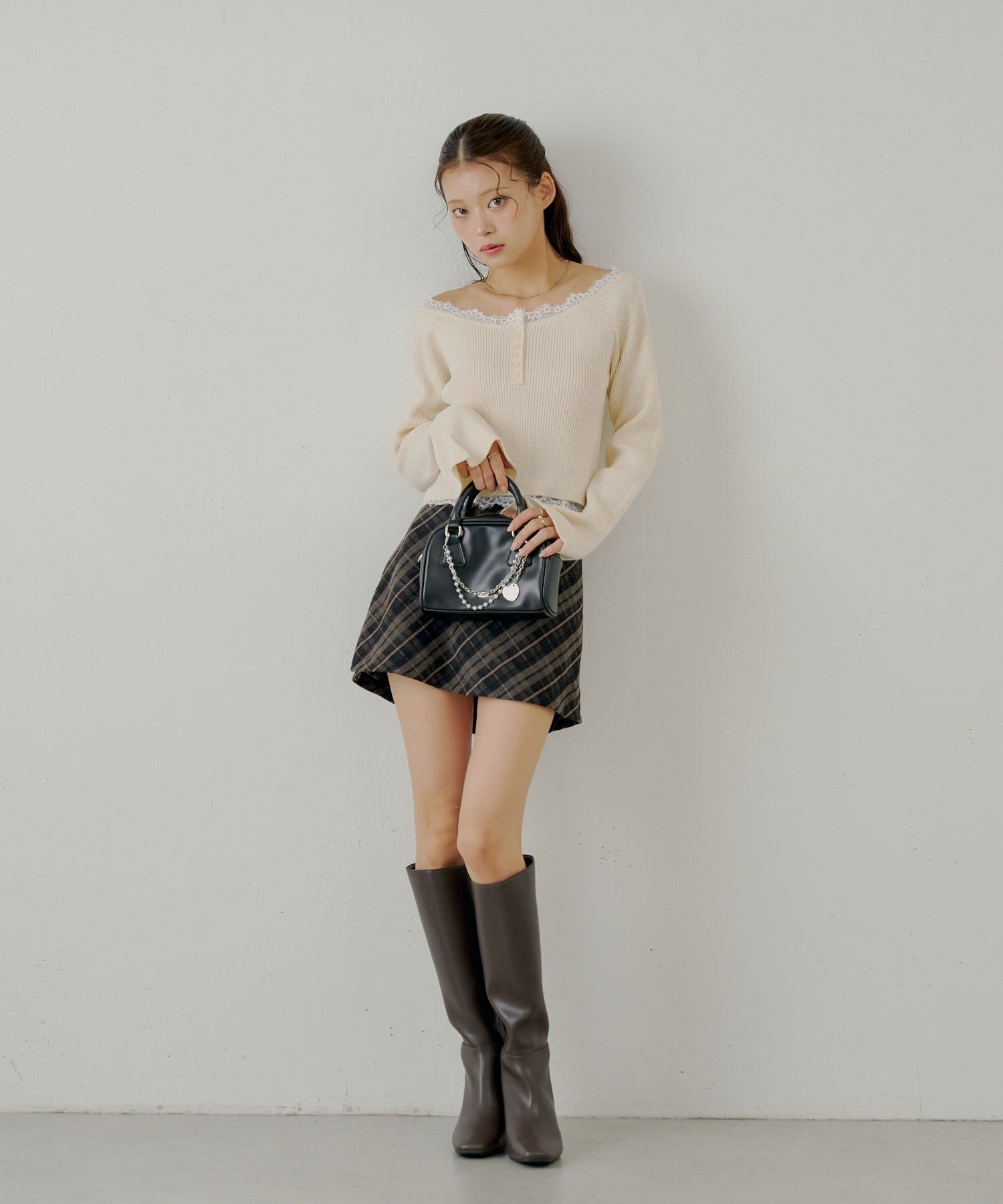 ・ミニボトムと相性抜群で、フェミニンなスタイルに仕上がります。
