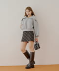・シンプルなデザインなため、チェックなどの柄物アイテムとも好相性です。