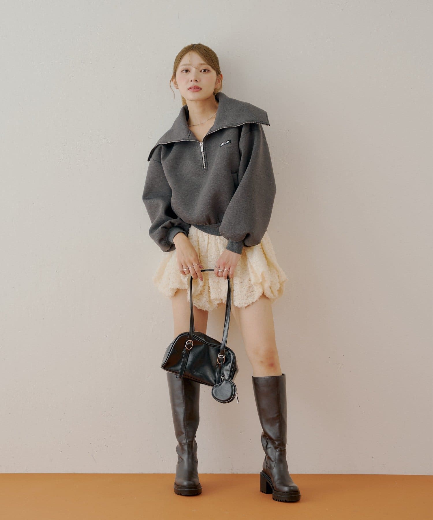 ・ジップの開け閉めで印象を変えられるので、様々なスタイリングが楽しめます。