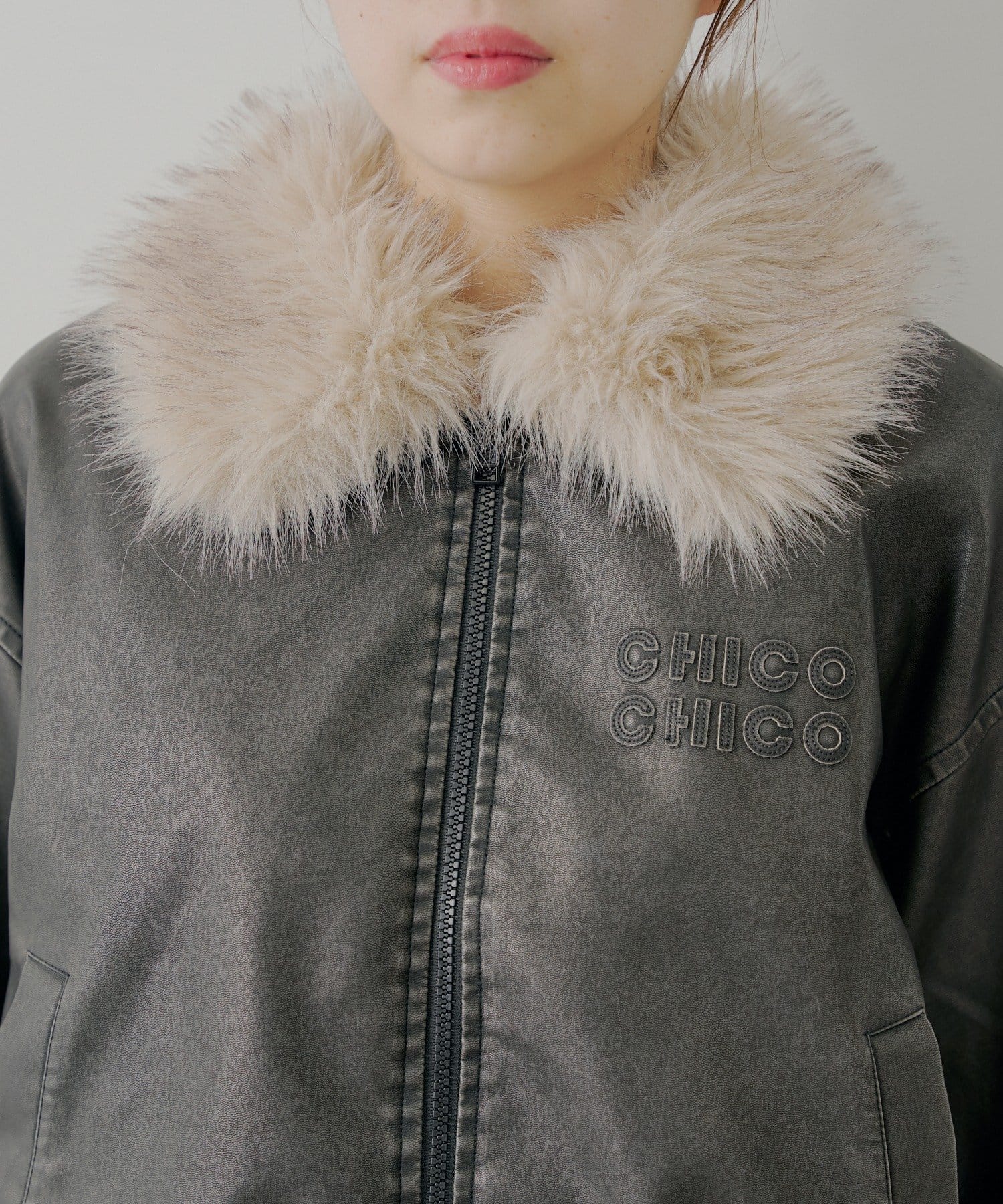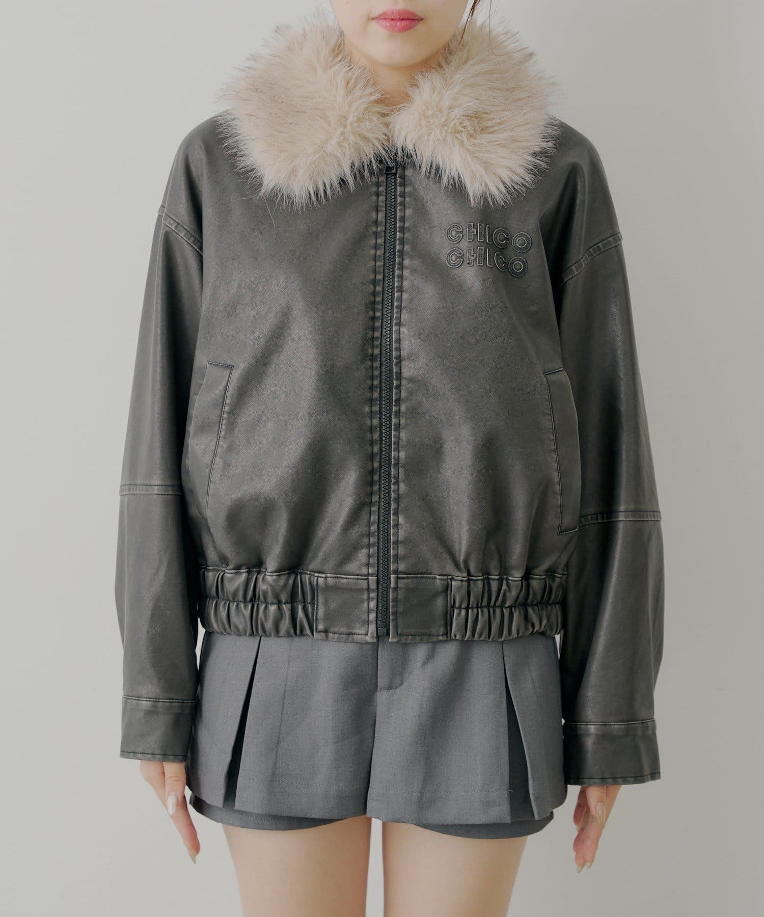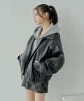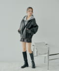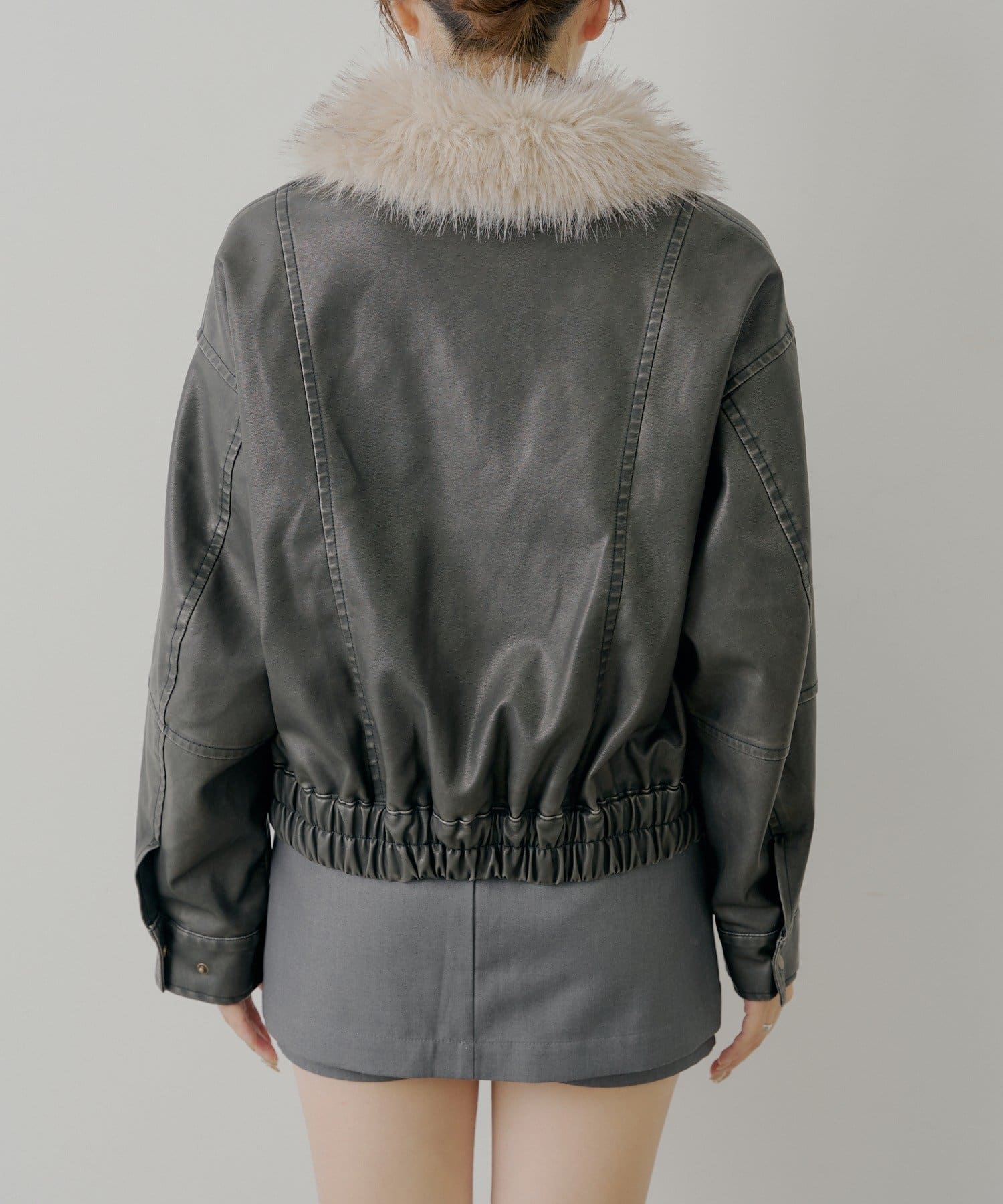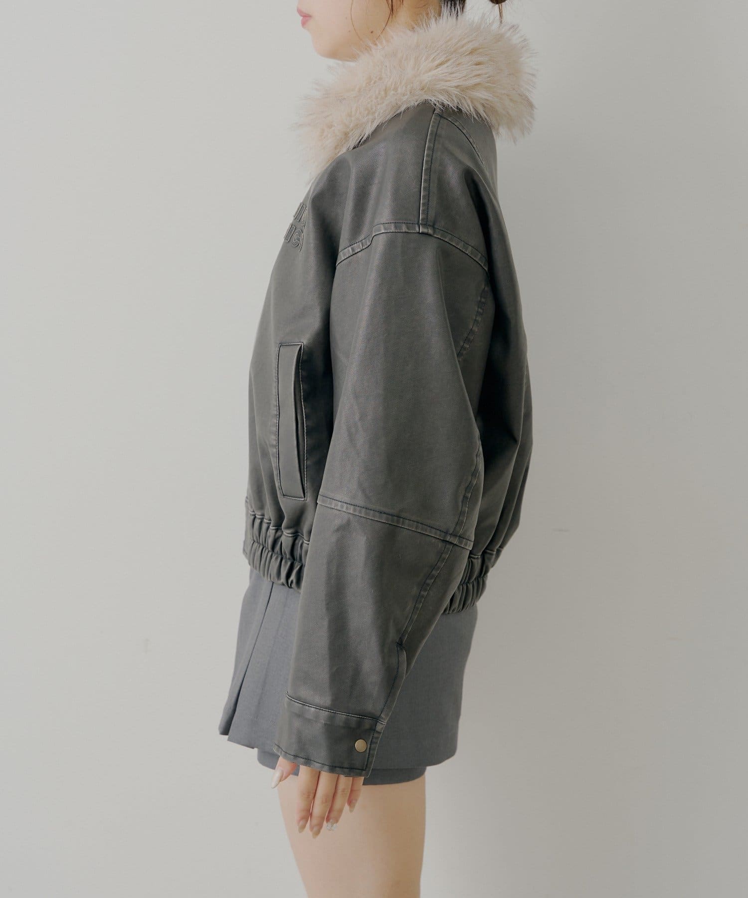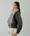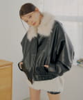 【アウターフェア_A対象】ファー取外しフェイクレザールーズジップブルゾン