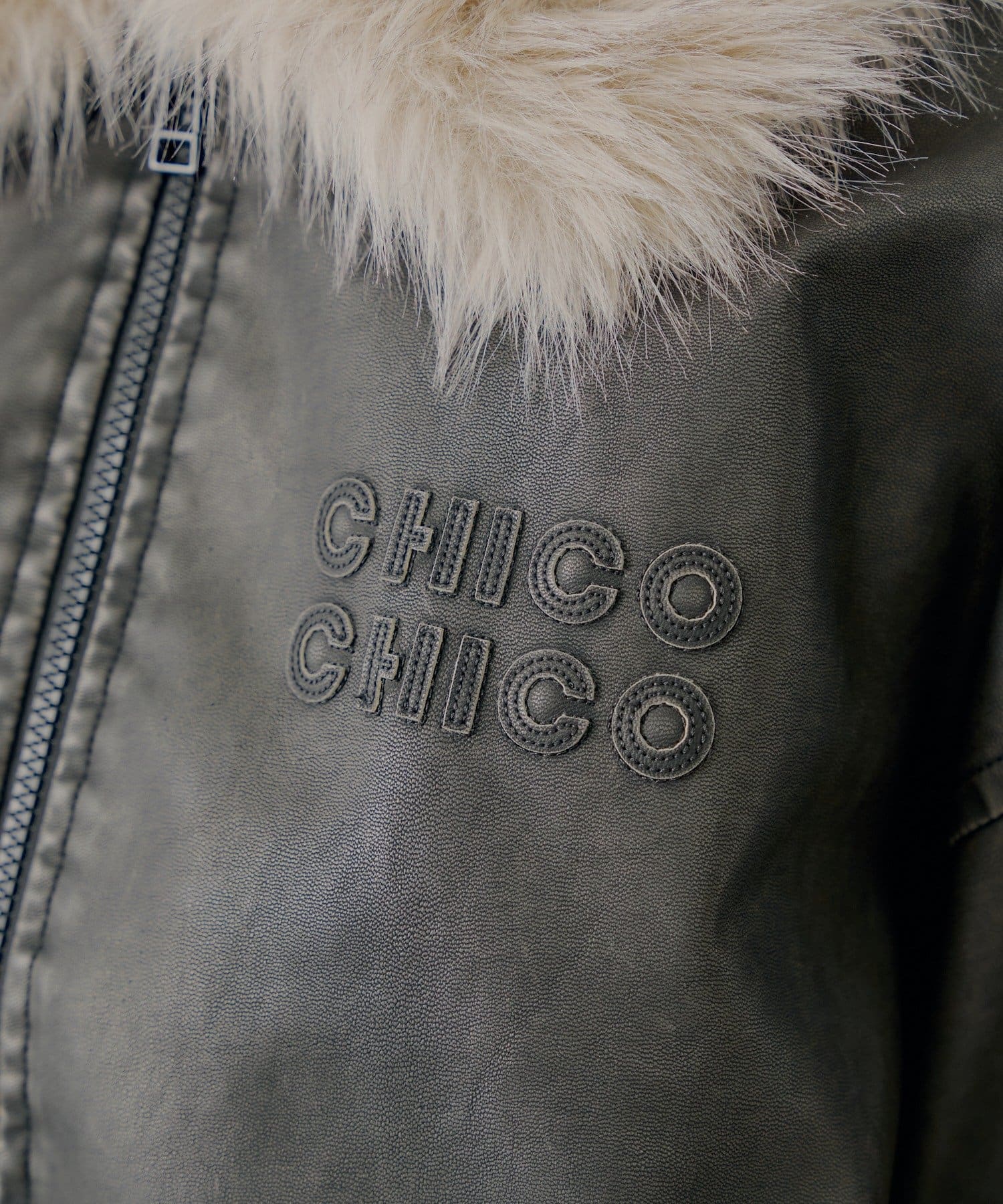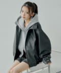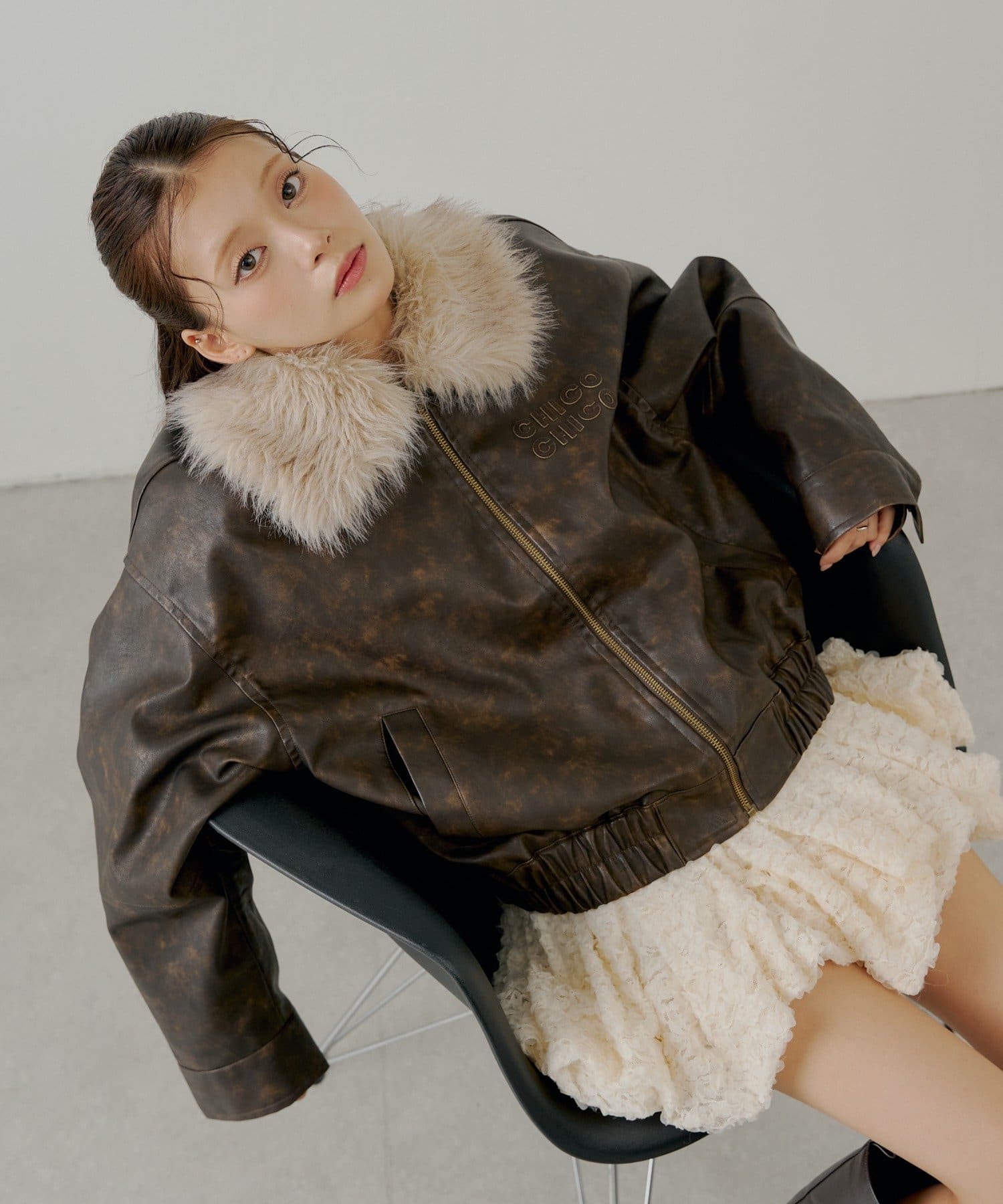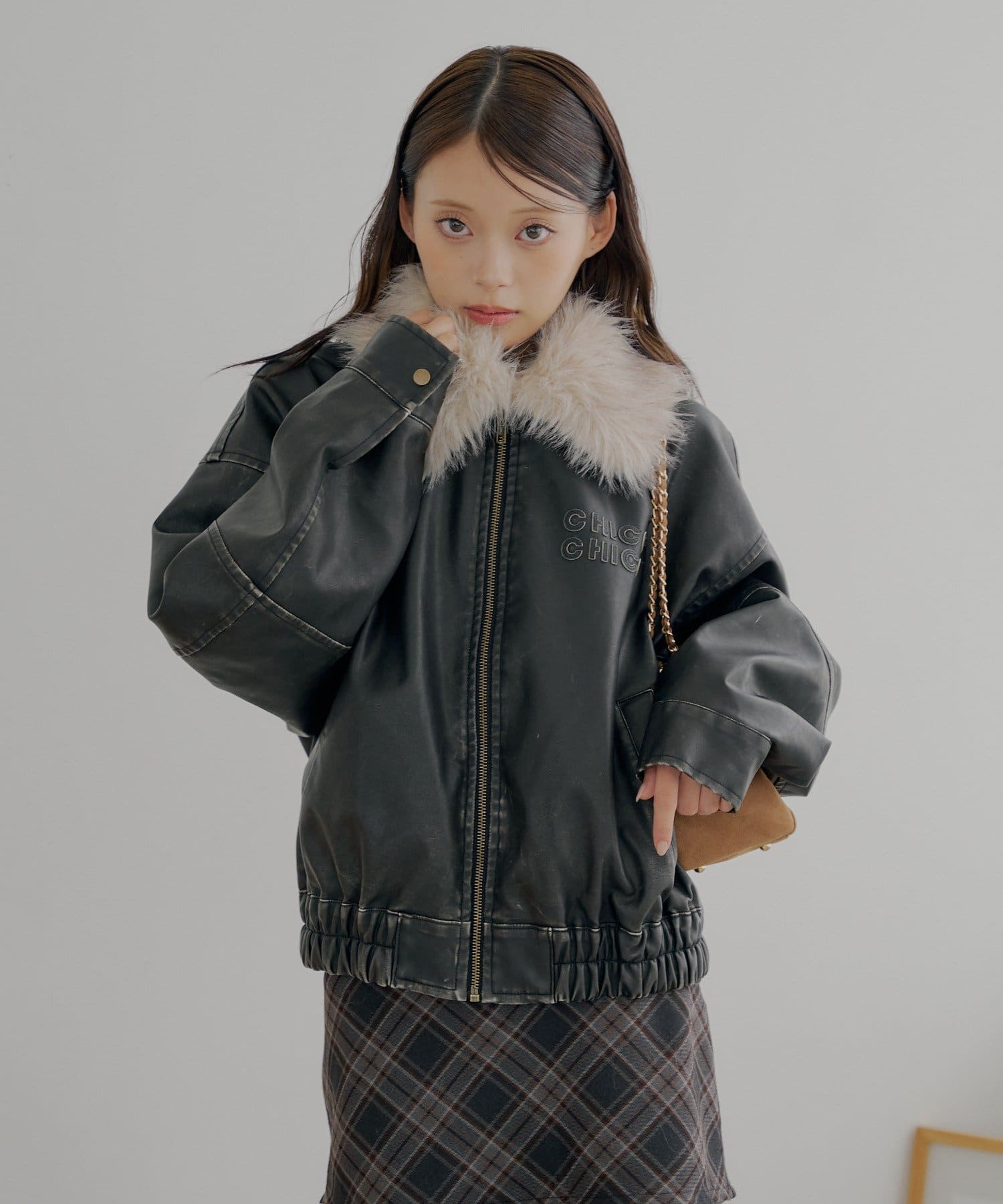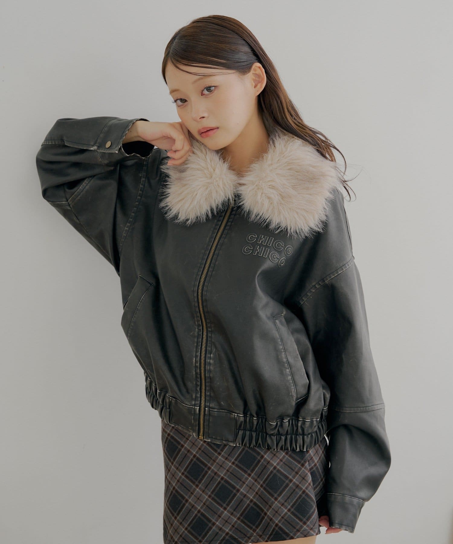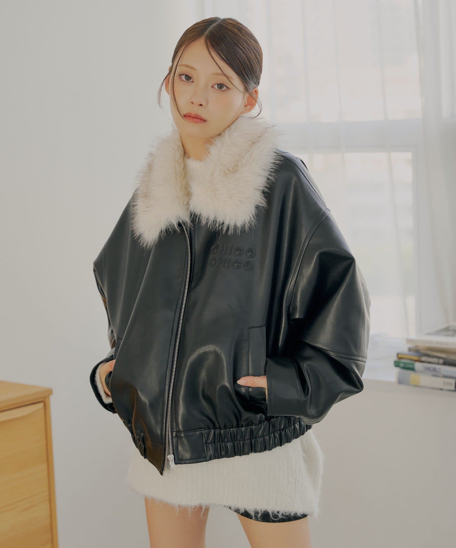 【アウターフェア_A対象】ファー取外しフェイクレザールーズジップブルゾン