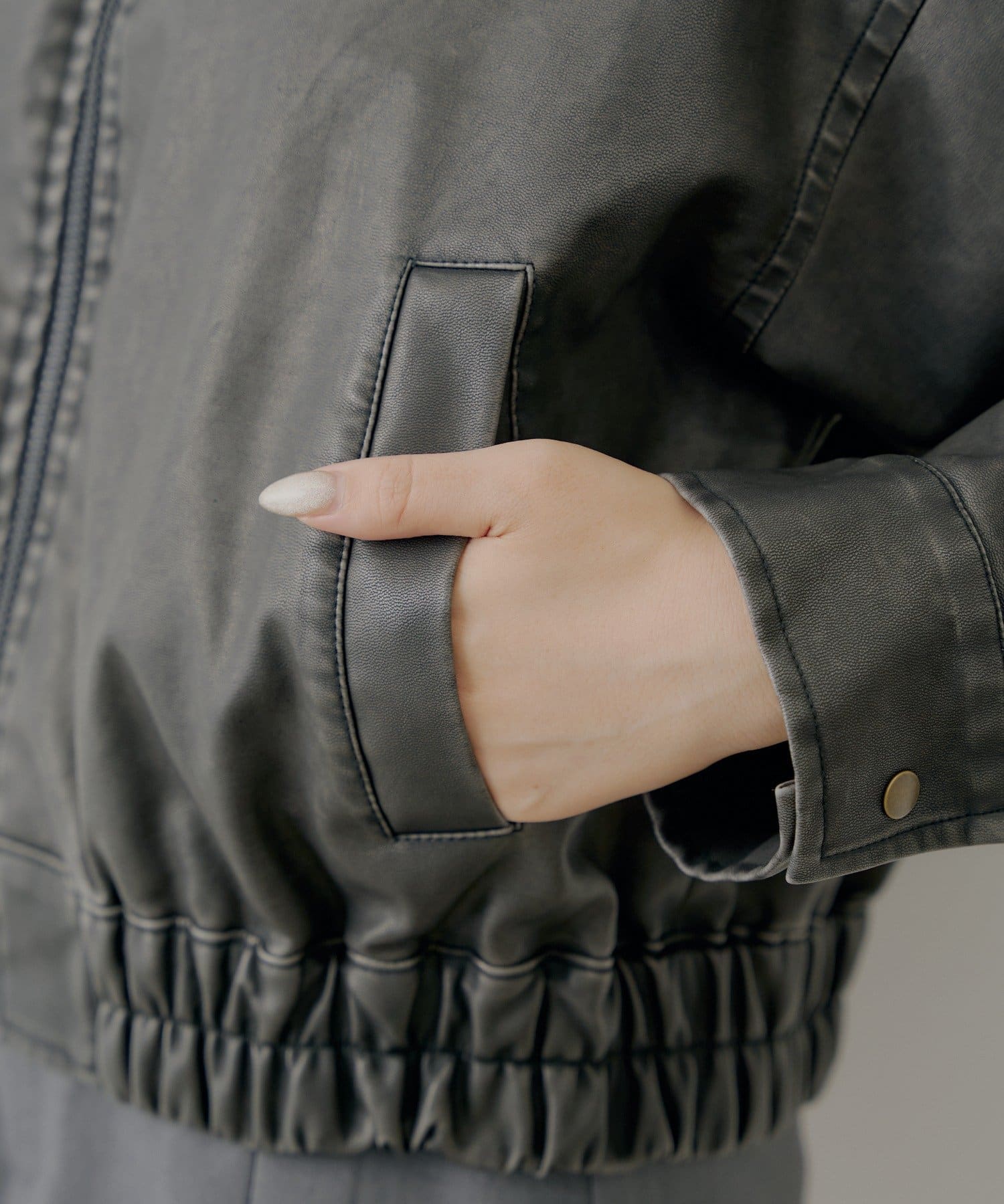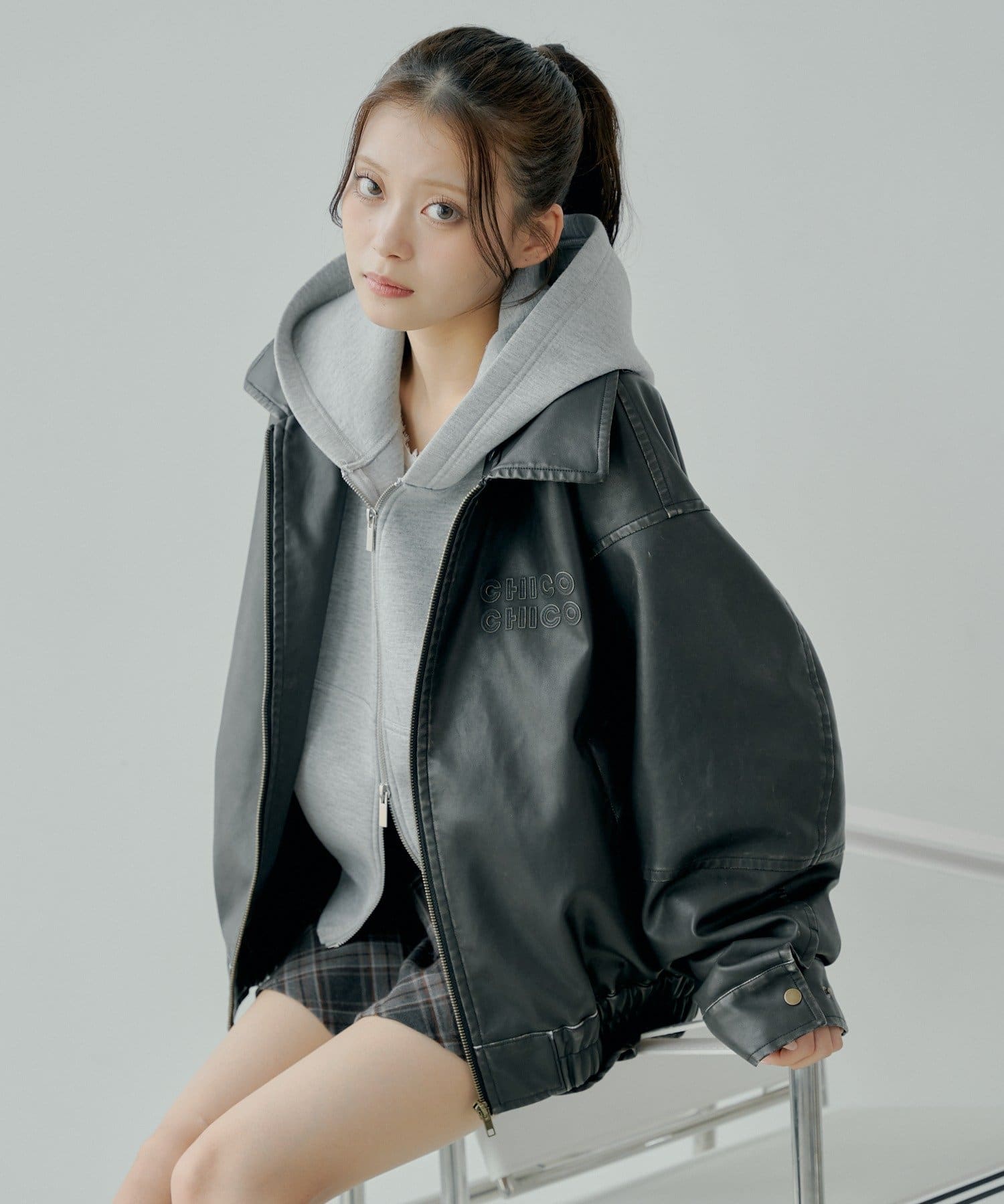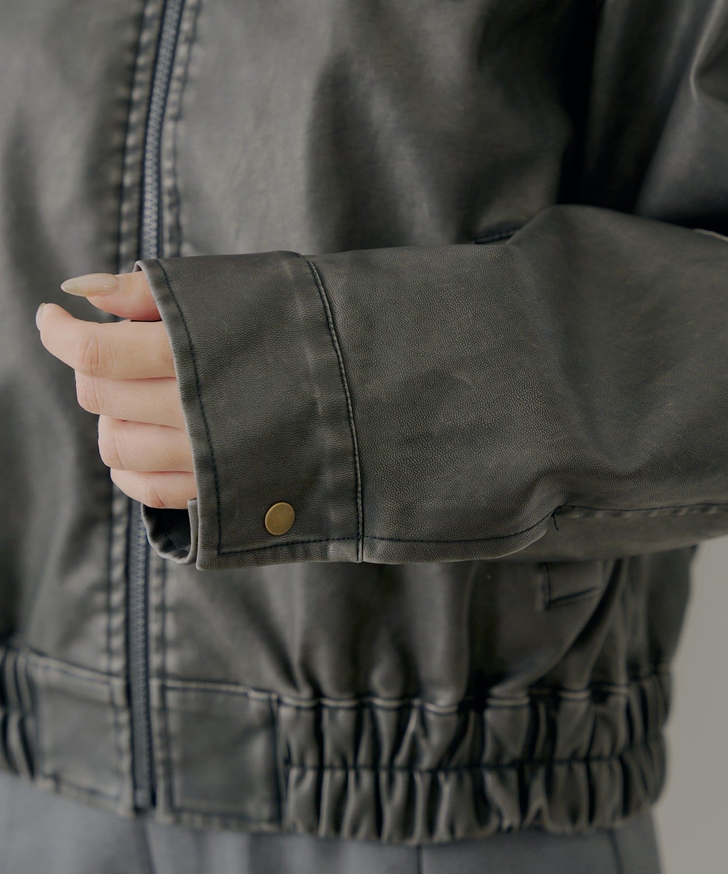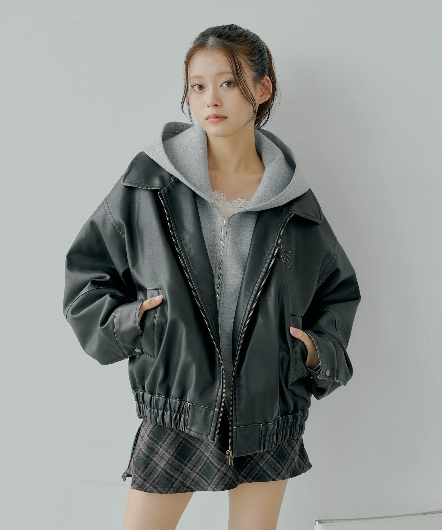 【アウターフェア_A対象】ファー取外しフェイクレザールーズジップブルゾン