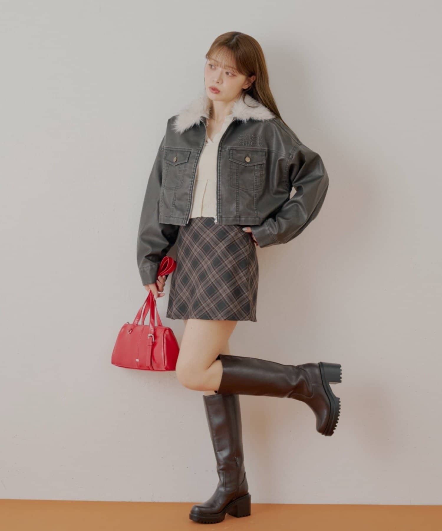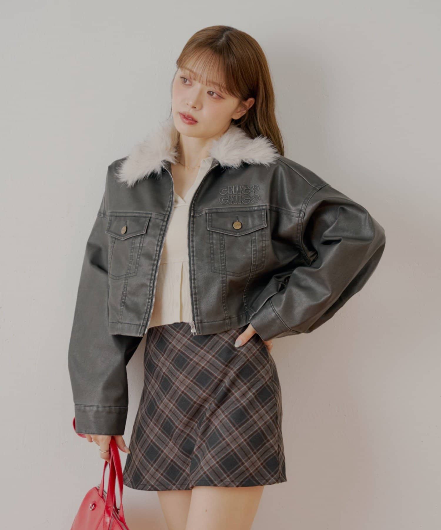 【WEB限定】ファー取り外し胸ロゴショート丈ブルゾン