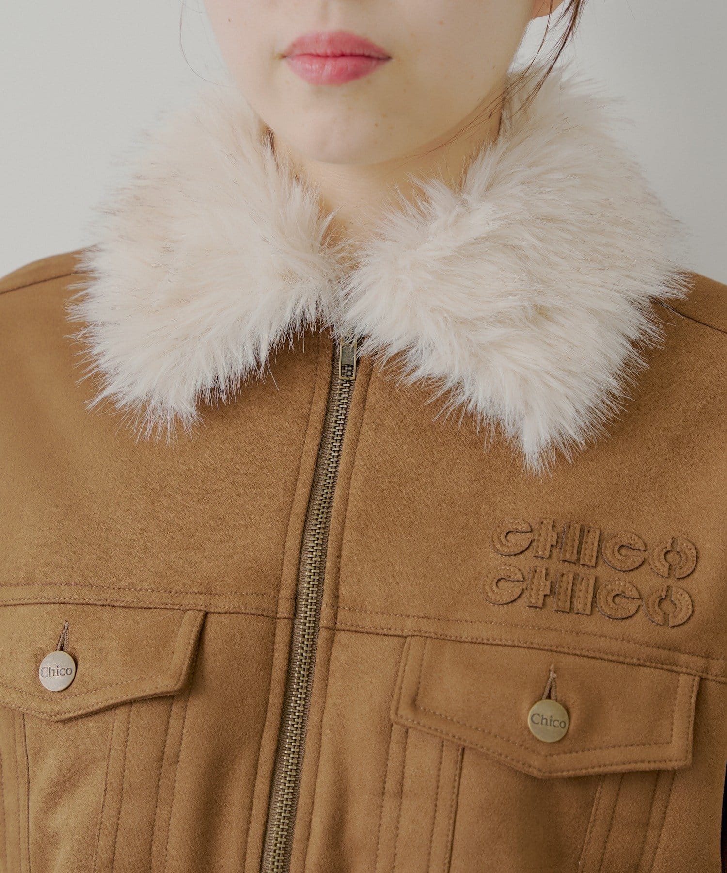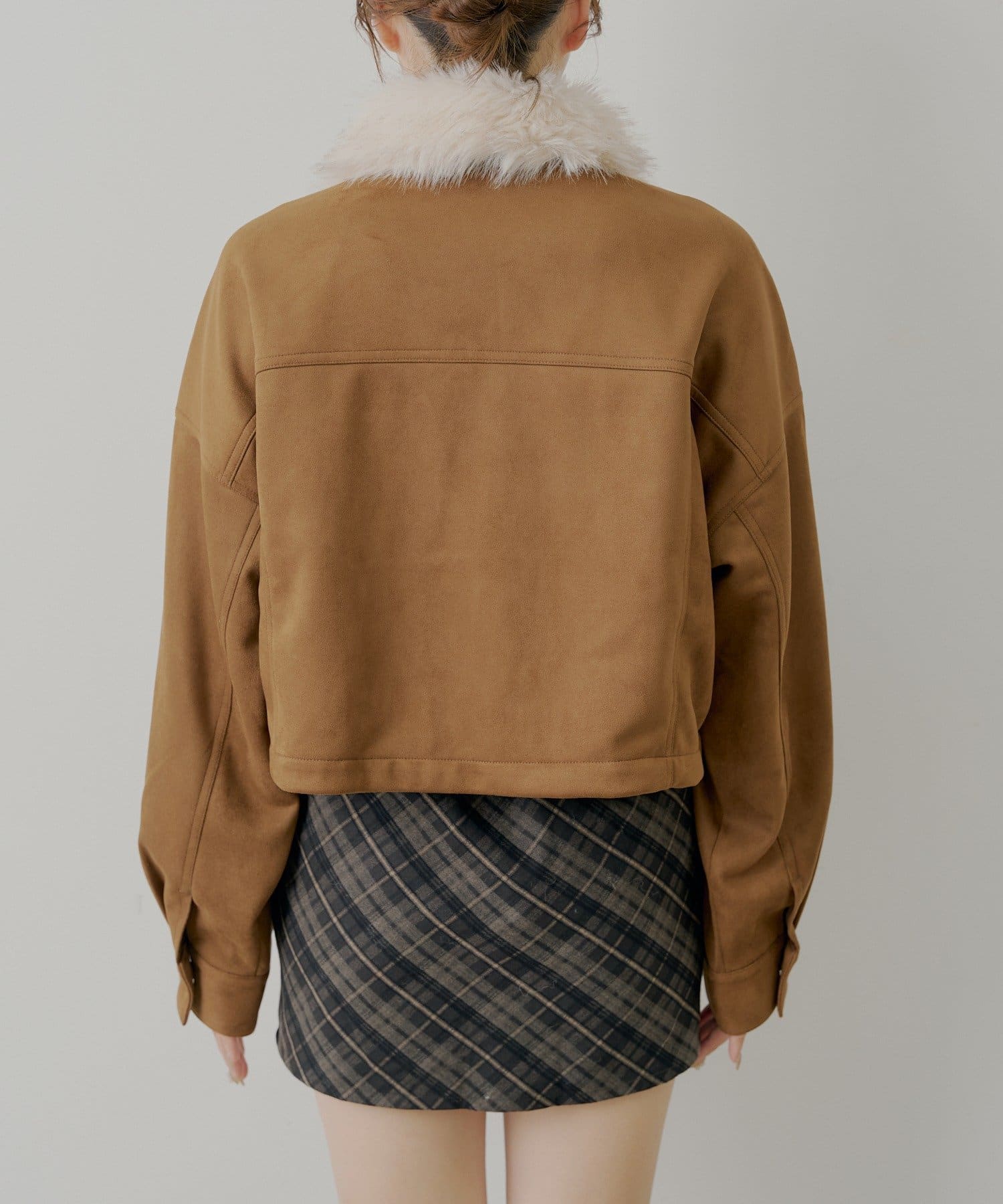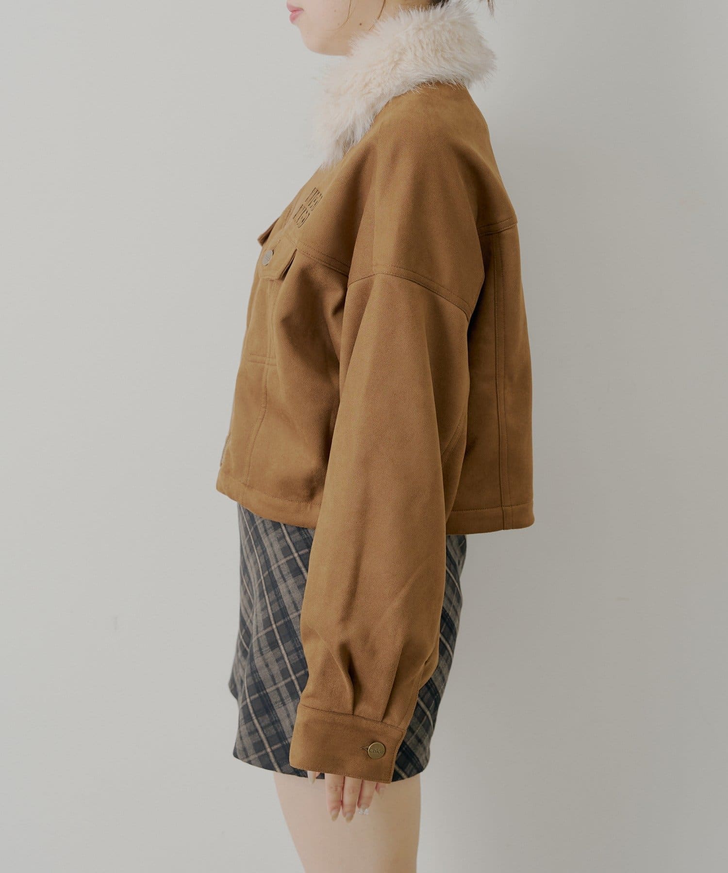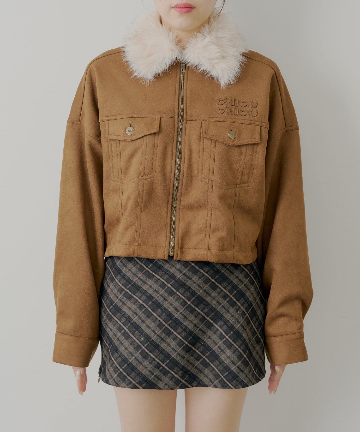 襟元のファーが今年らしく可愛いスエードブルゾン♡