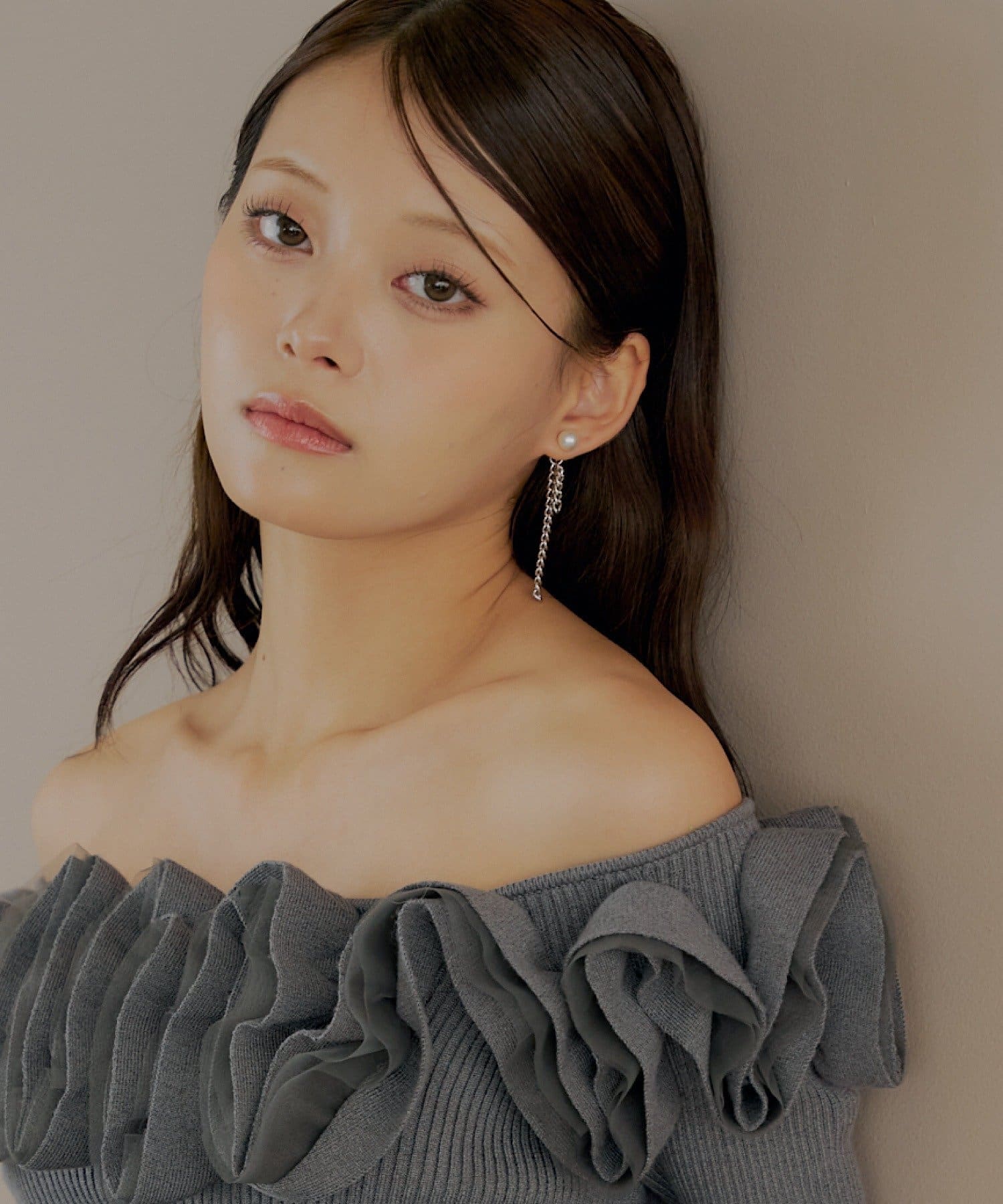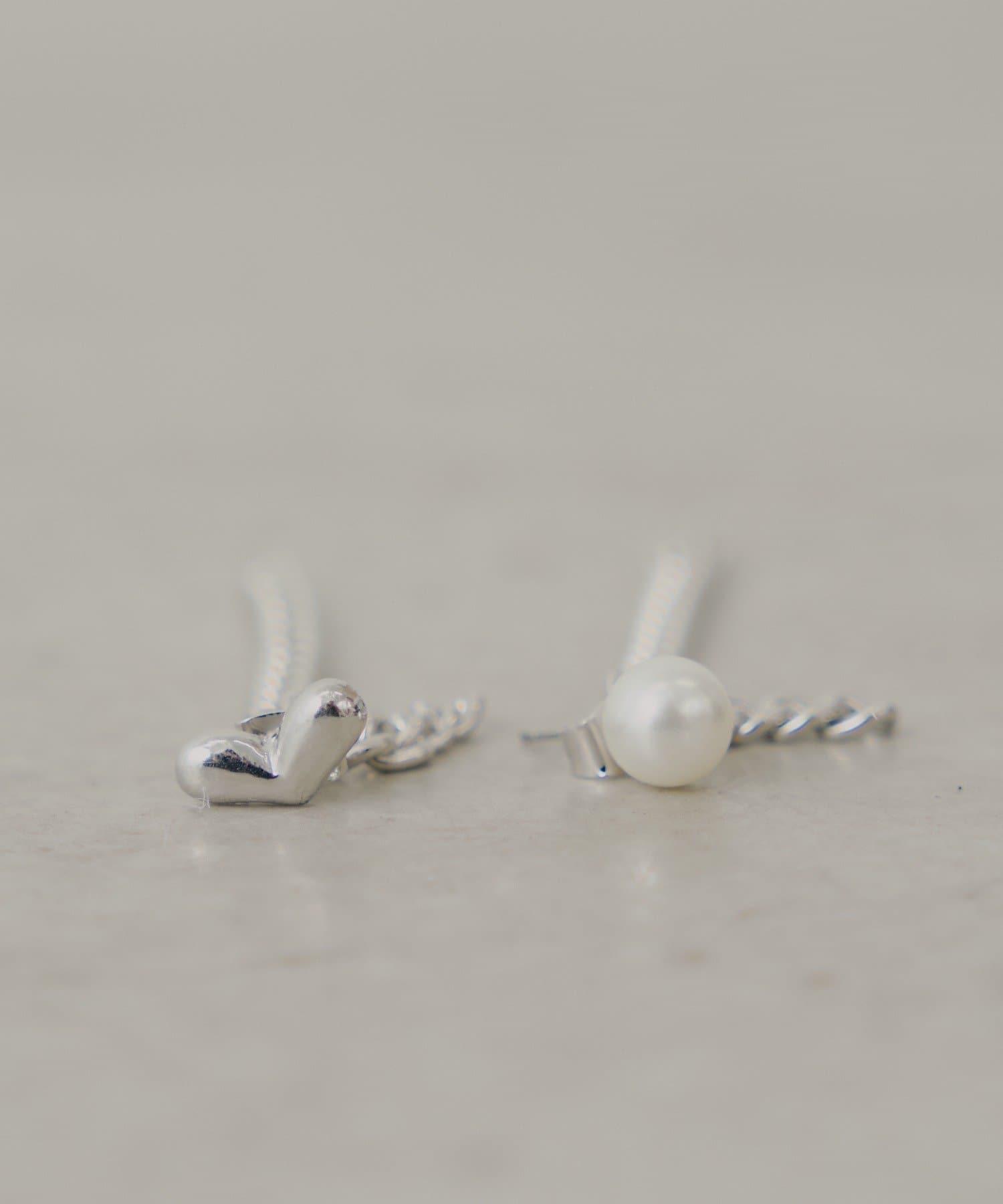 ・左右で異なるアシメデザインが目を惹くチェーンピアス。