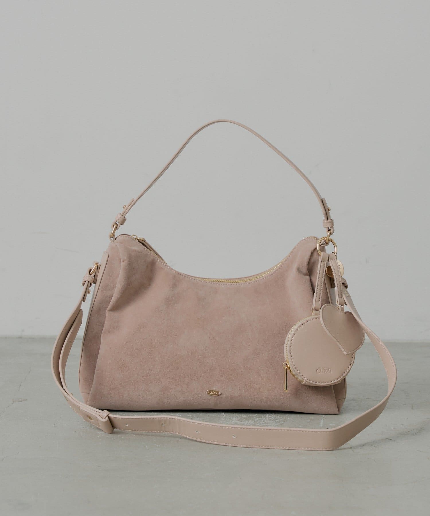 ・ポーチチャームとハートミラーがコーディネートのアクセントに。